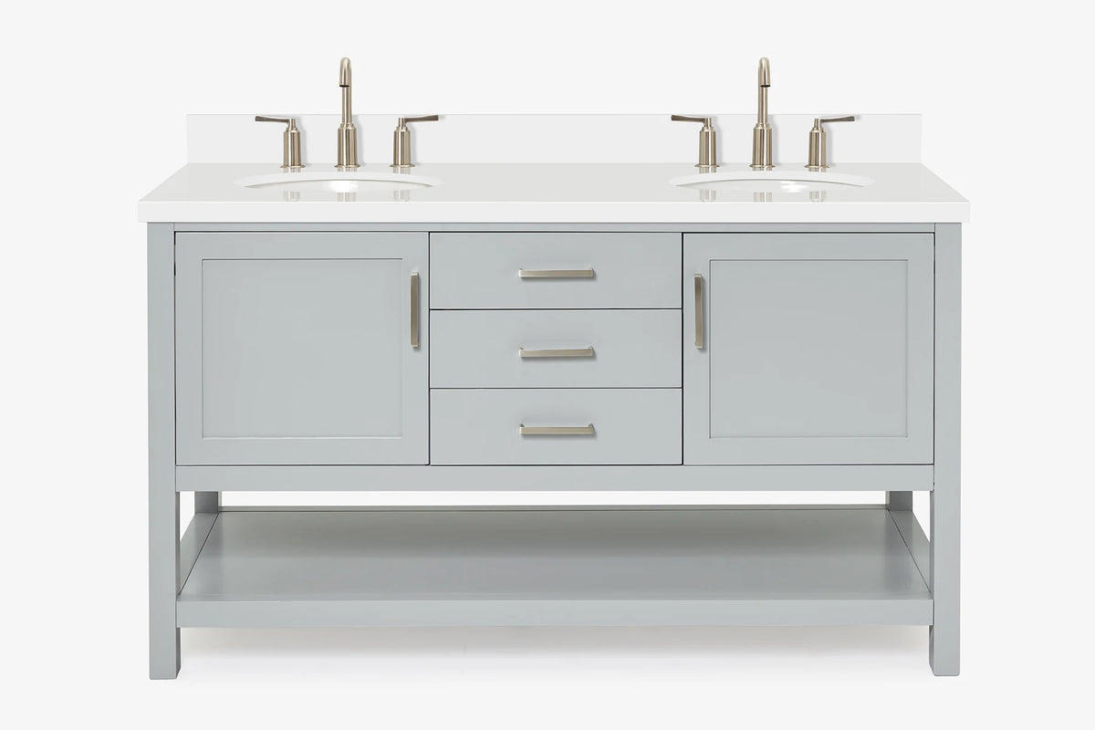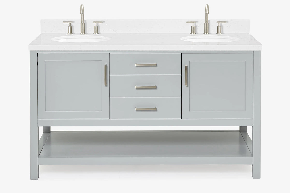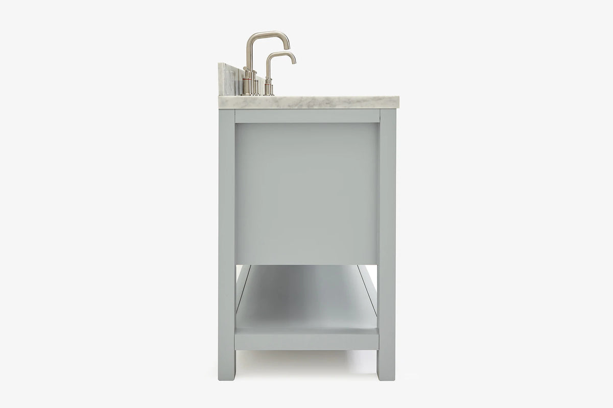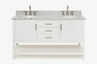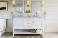 Bayhill collection from ARIEL Bath takes a farmhouse inspired open bottom shelf is ideal for stashing towels, toiletries and baskets, with hidden self-levelling feet accommodating uneven surfaces. Its beautiful design is complemented by soft-closing drawers & doors with premium Italian Carrara marble/ White quartz countertop. Easy to install and built to last, the Bayhill vanity is the easy answer to any of your bathroom remodeling.