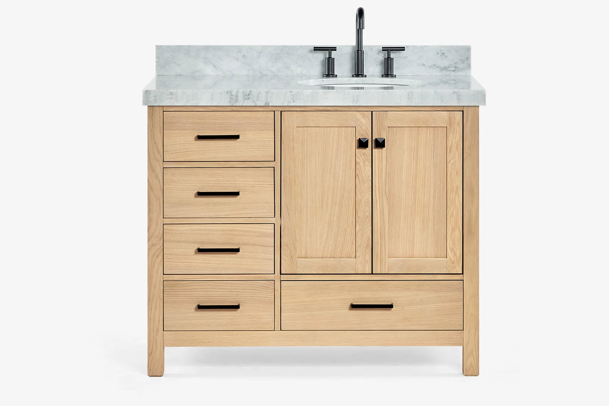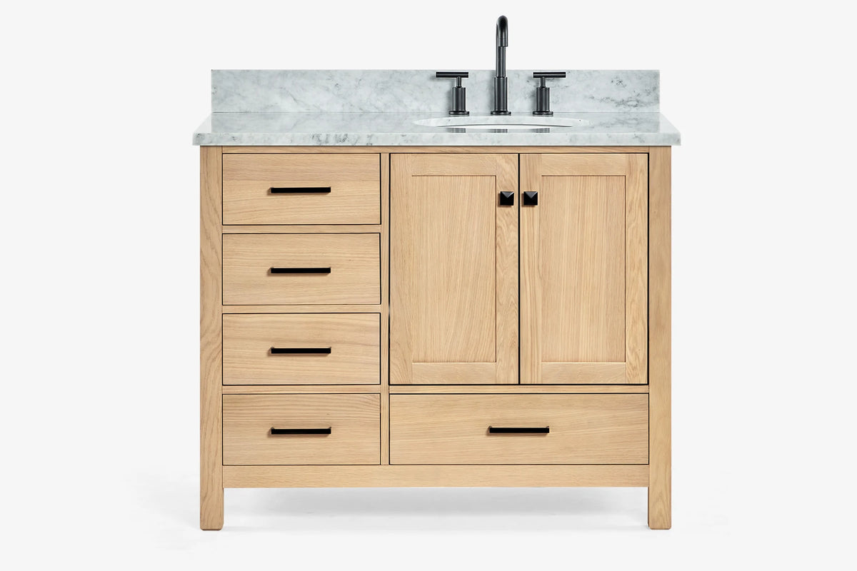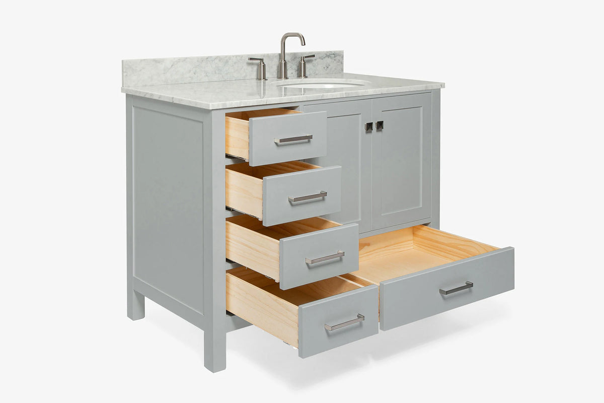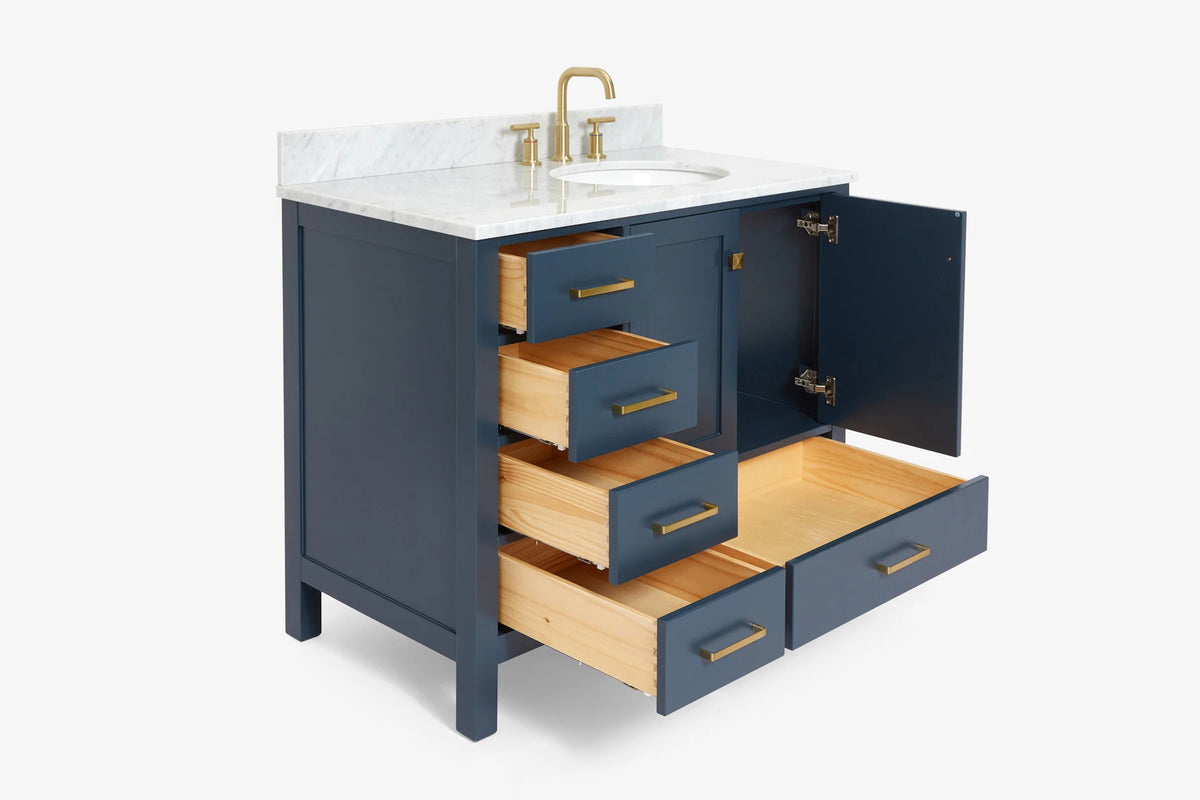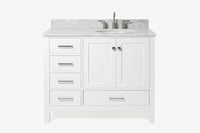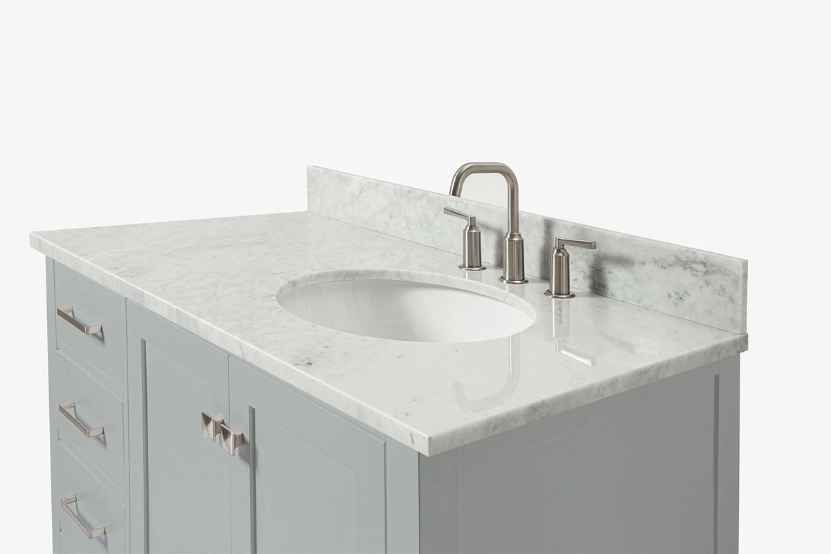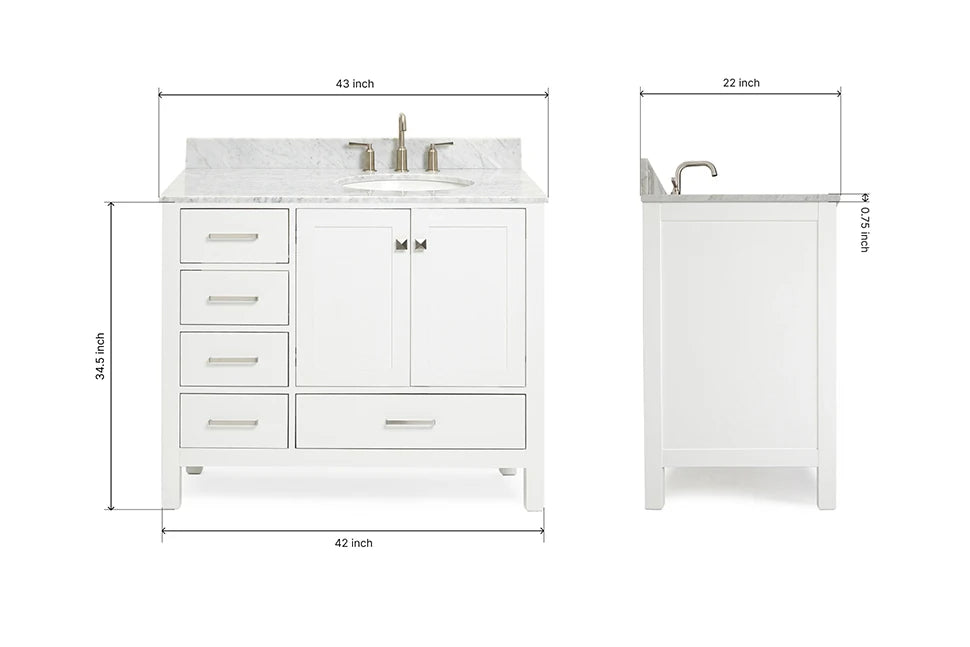Ariel cambridge (43" & 42") right offset oval single sink vanity with marble (0.75", 1.5" & 2") countertop.