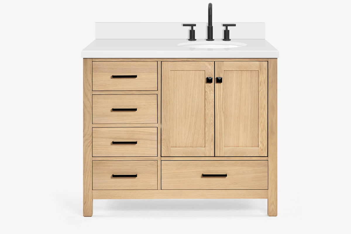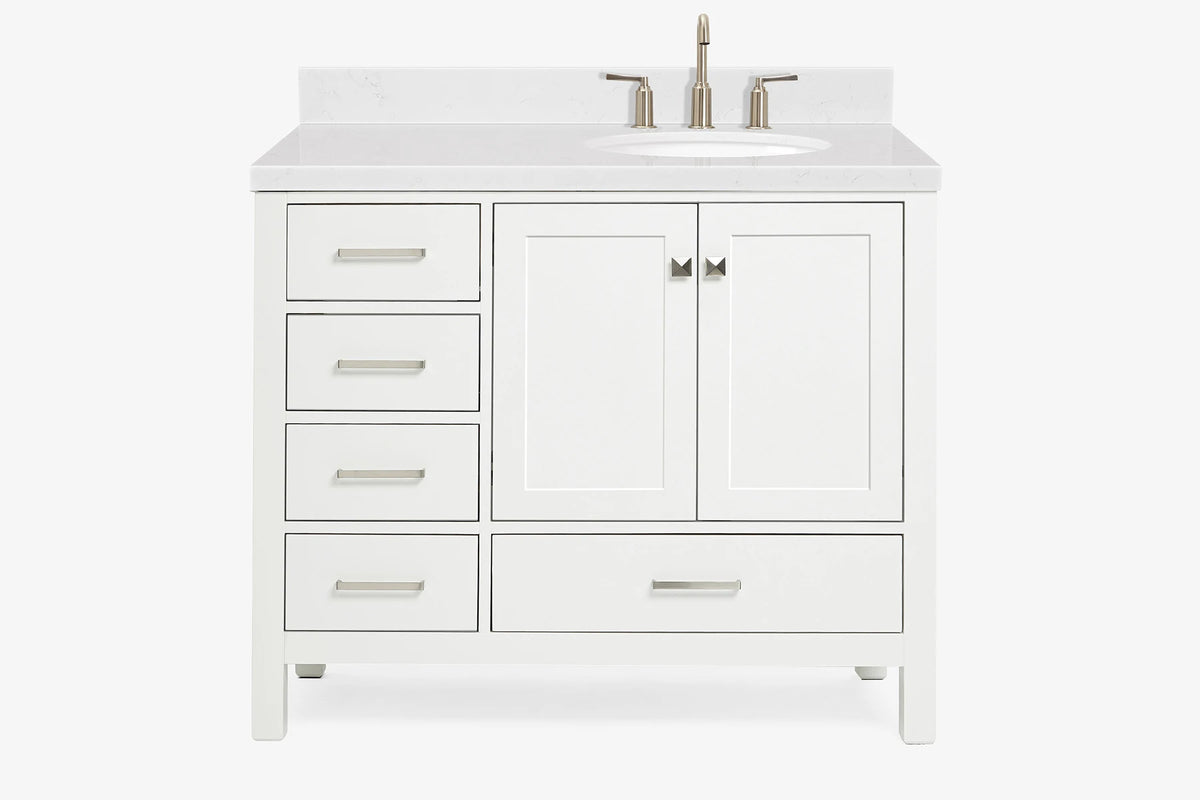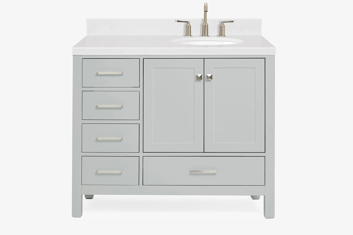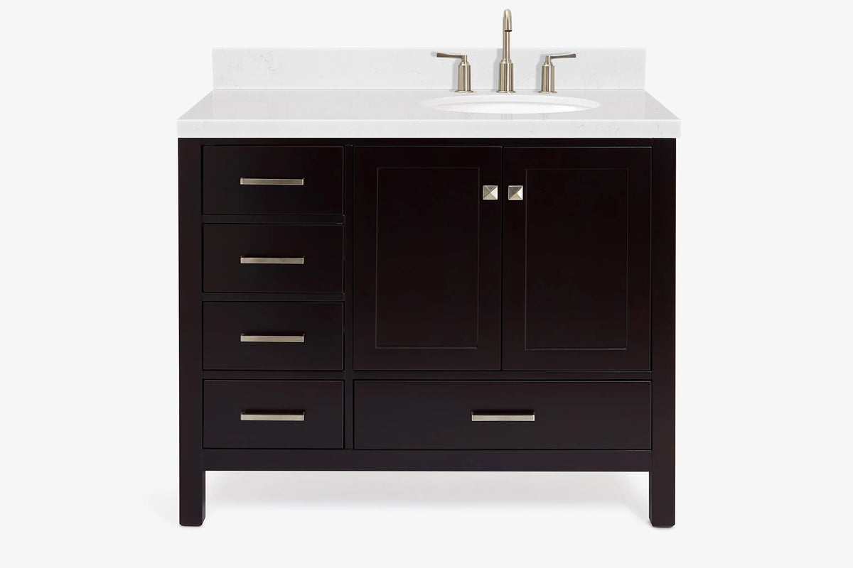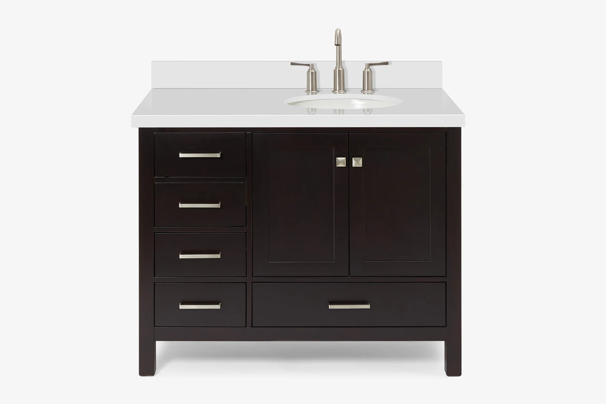 Ariel cambridge (43" & 42") right offset oval single sink vanity with marble (0.75", 1.5" & 2") countertop.