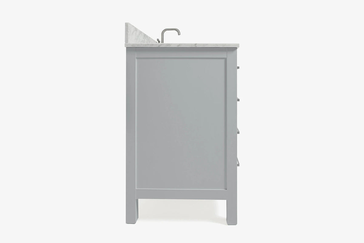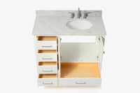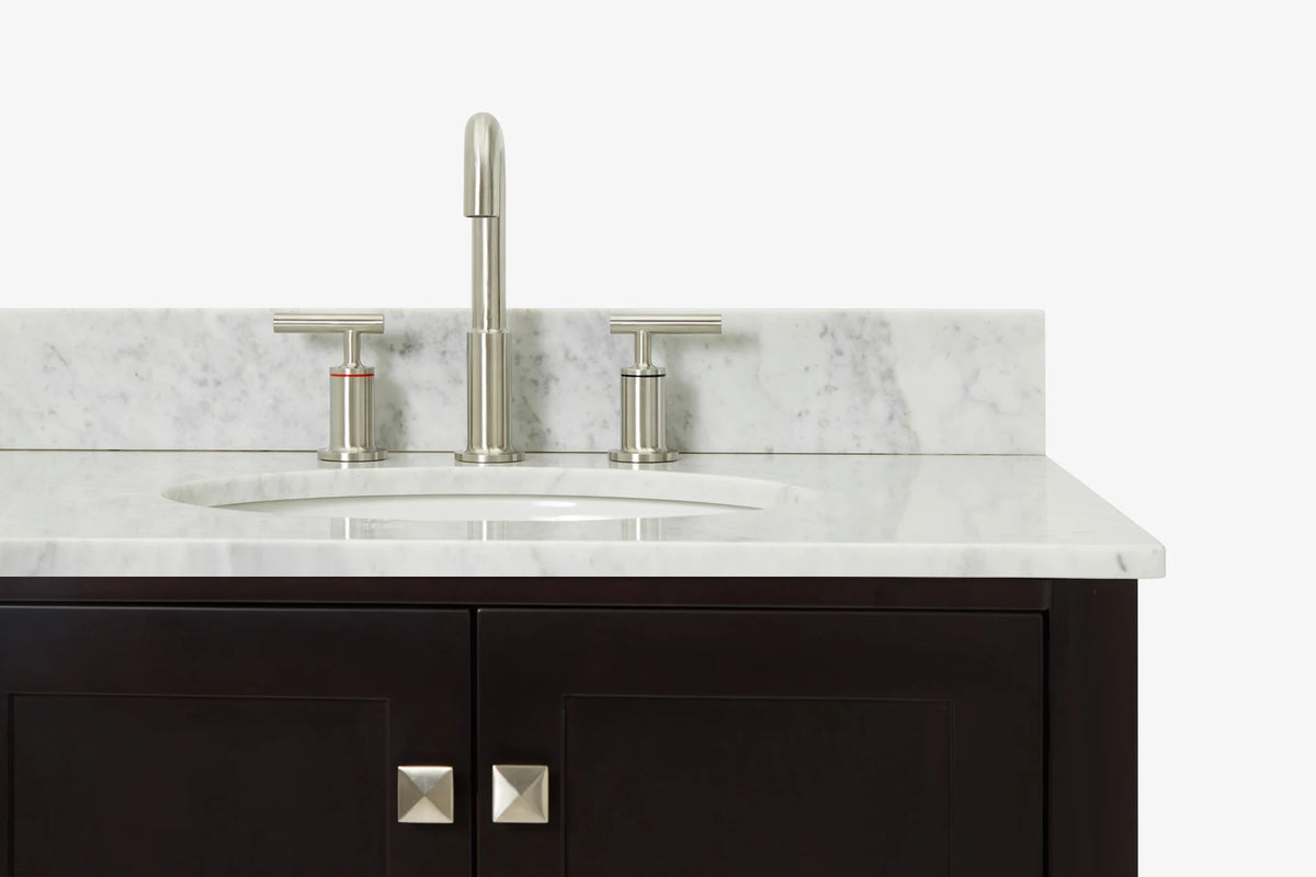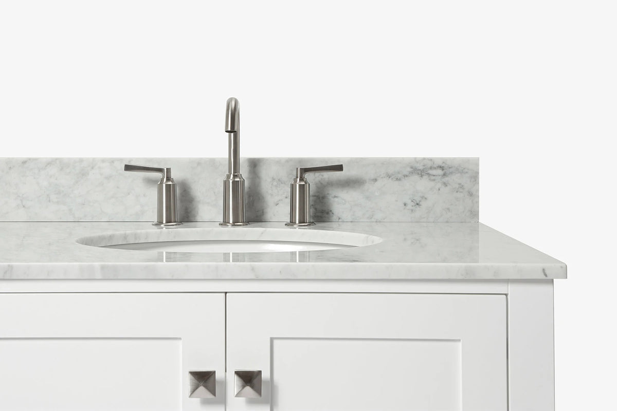 - Italian Carrara White Marble countertop with 0.75" thick miter edge. 4" backsplash included