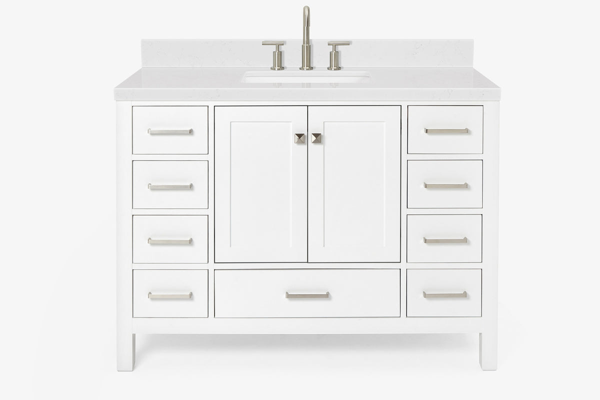 Cambridge collection from ARIEL Bath is the perfect choice for those looking for a modern bathroom vanity. Featuring shaker style doors and flat panel drawers, this Ariel bathroom vanity will be sure to highlight any bathroom environment and create a luxurious spa-like experience in your home. Various options for countertop, hardware, and cabinet color allow you to custom tailor your own bathroom remodeling.
