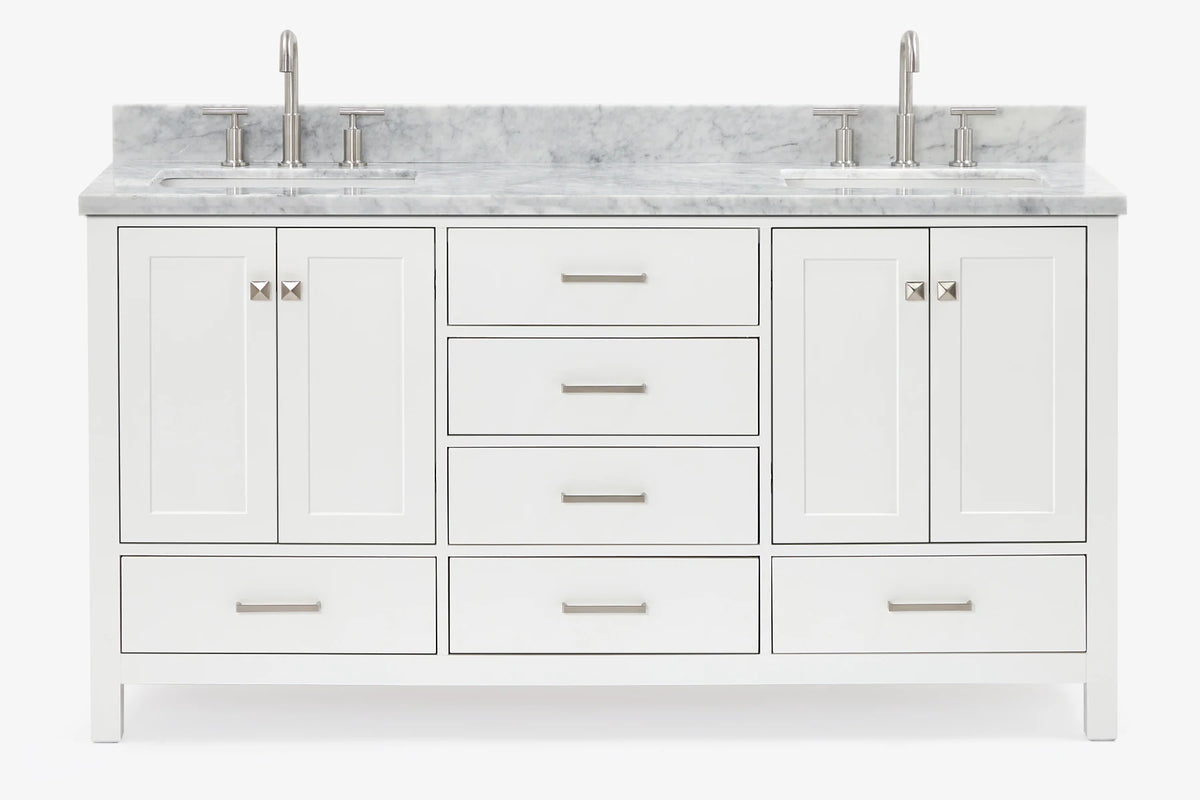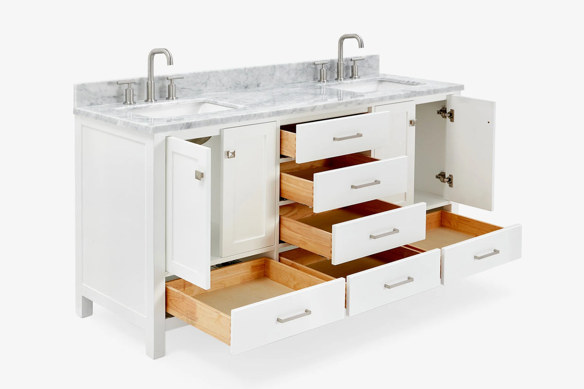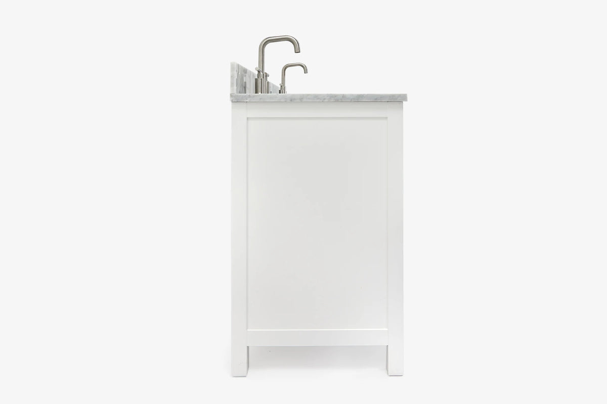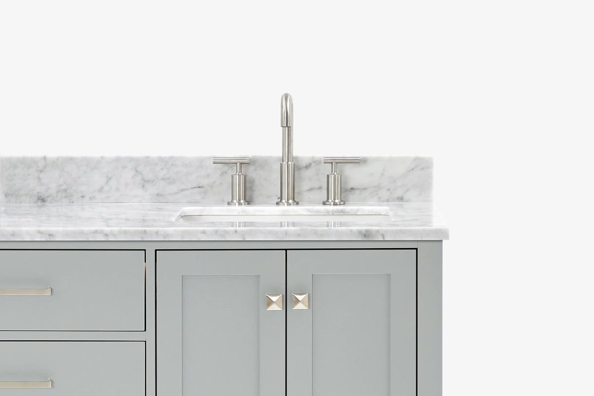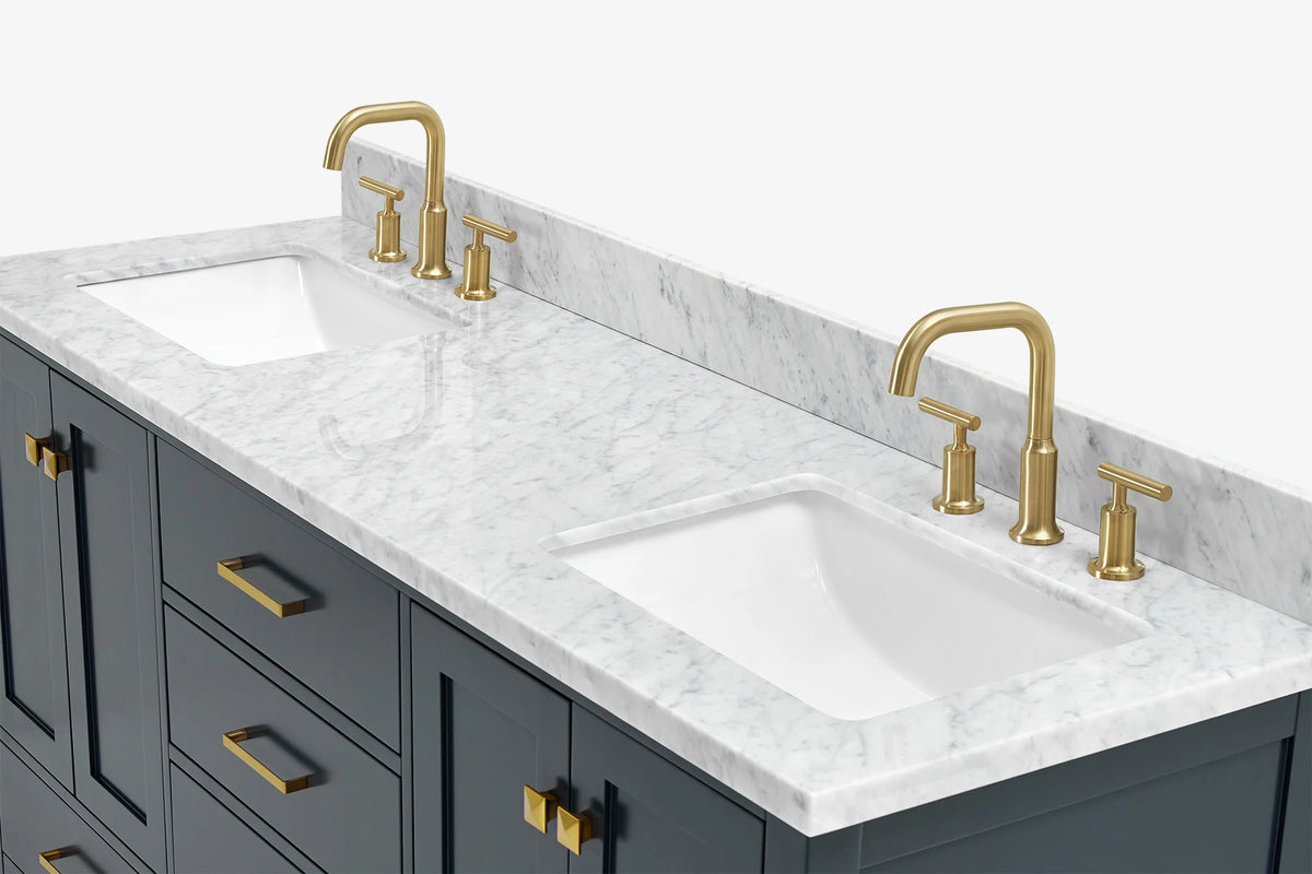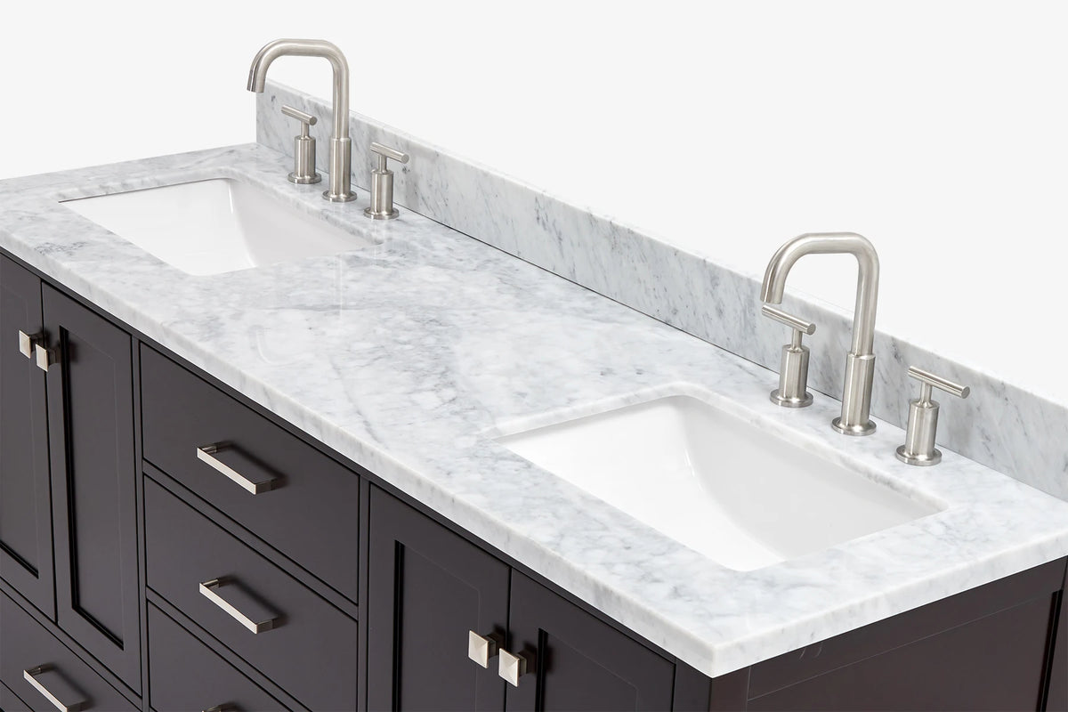 • Italian Carrara White Marble countertop with 0.75" thick miter edge. 4" backsplash included