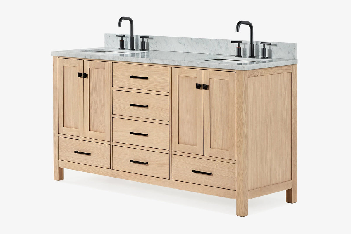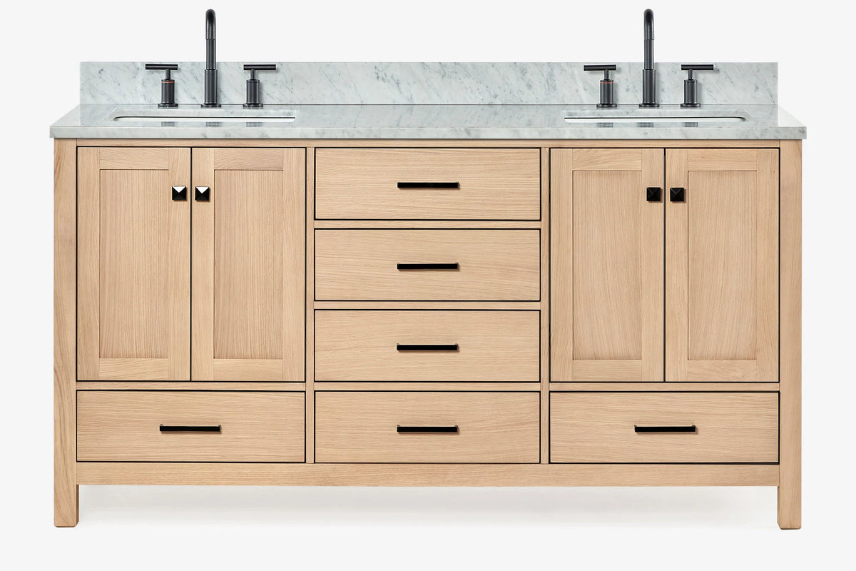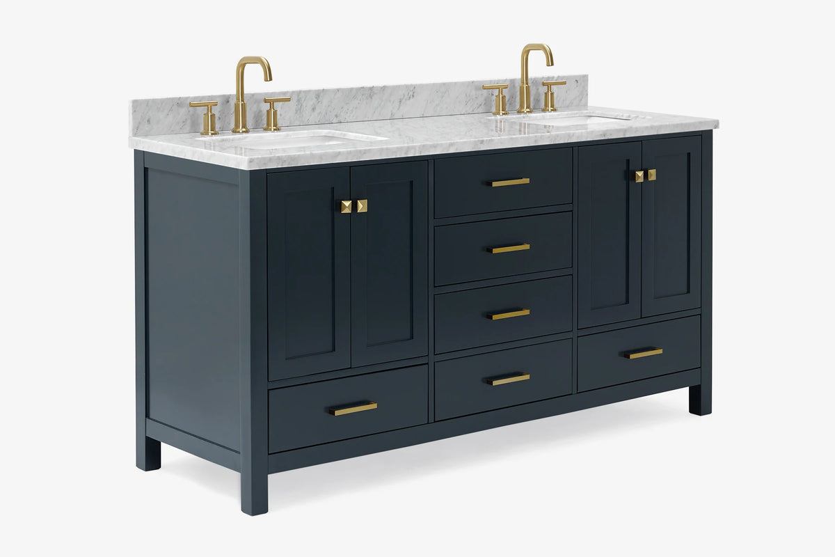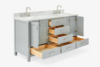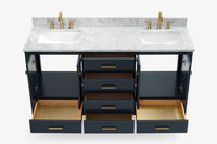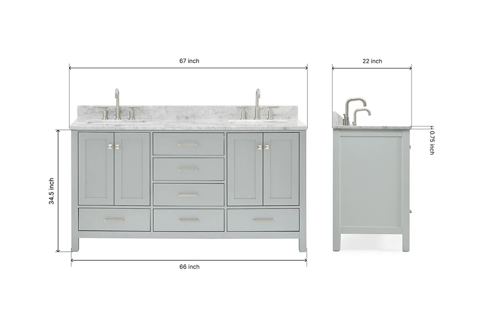 Ariel cambridge 66-67 inch double rectangle sink vanity with marble countertop with (0.75,1.5)in edge