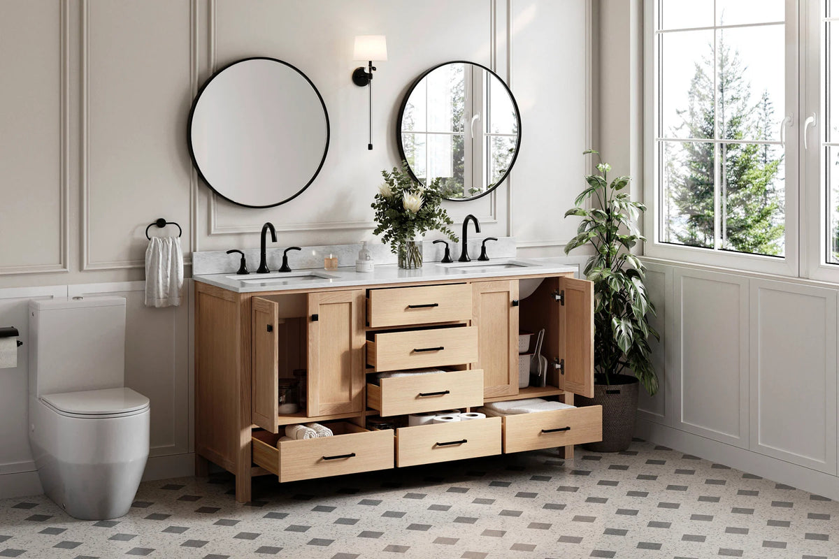Cambridge collection from ARIEL Bath is the perfect choice for those looking for a modern bathroom vanity. Featuring shaker style doors and flat panel drawers, this Ariel bathroom vanity will be sure to highlight any bathroom environment and create a luxurious spa-like experience in your home. Various options for countertop, hardware, and cabinet color allow you to custom tailor your own bathroom remodeling.
