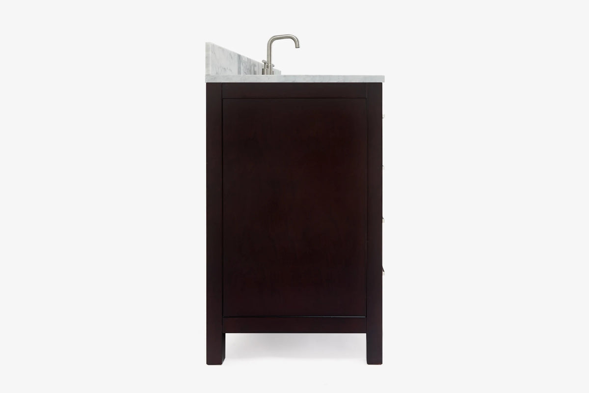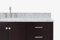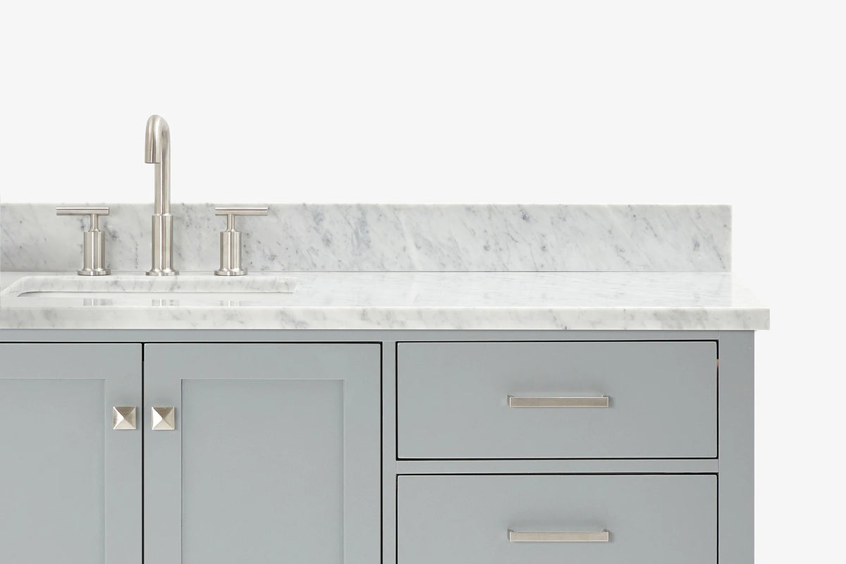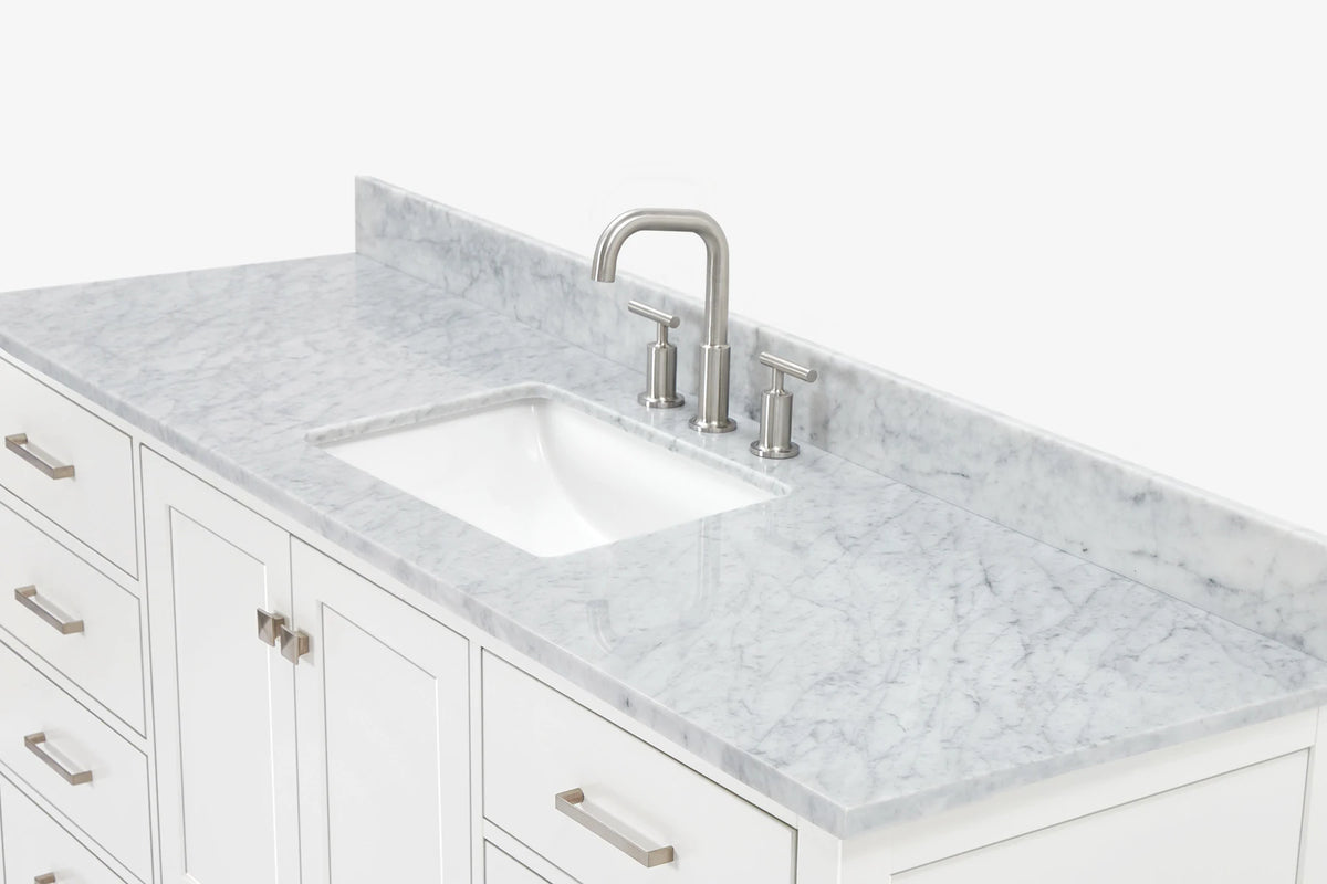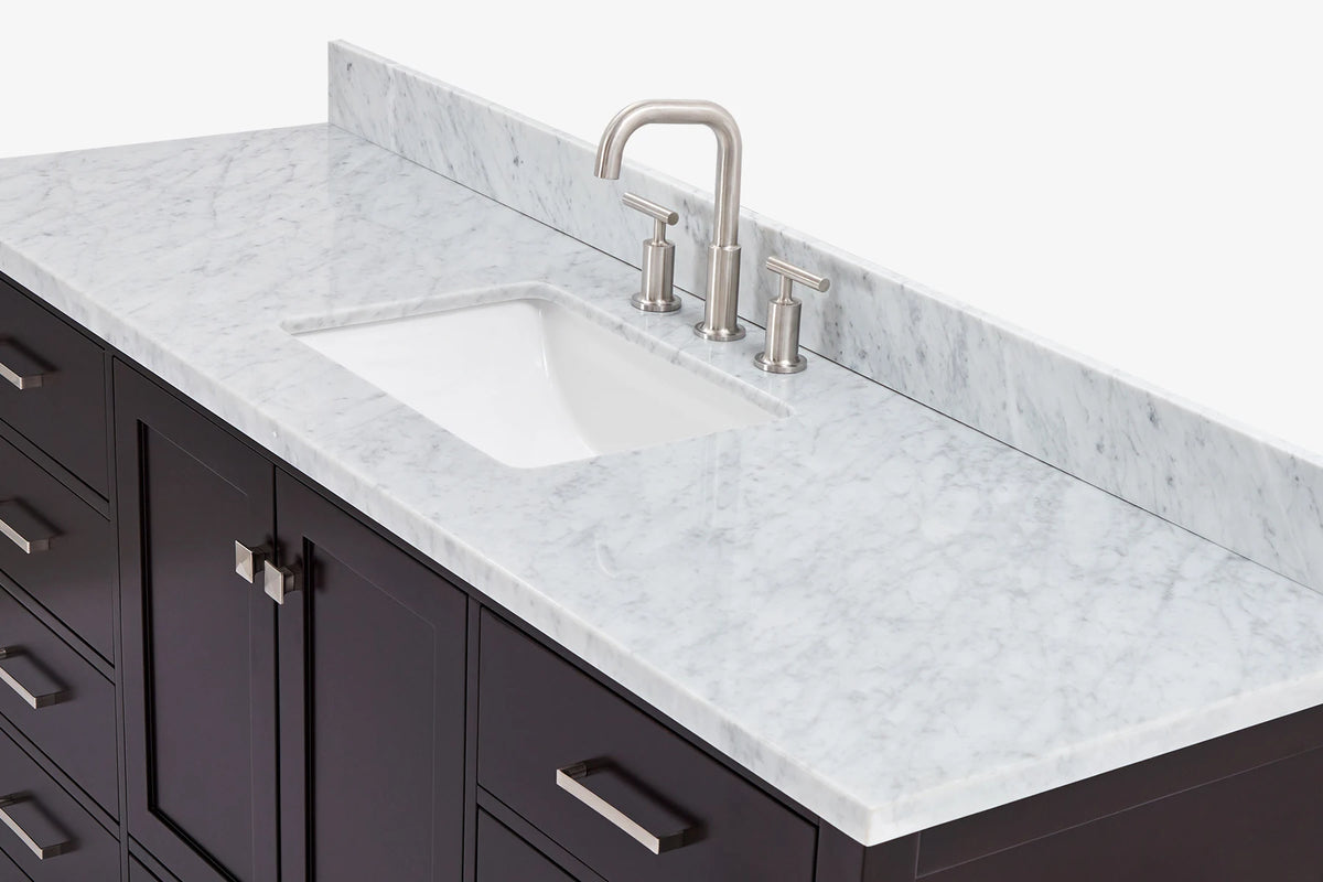 - Italian Carrara White Marble countertop with 0.75" thick miter edge. 4" backsplash included