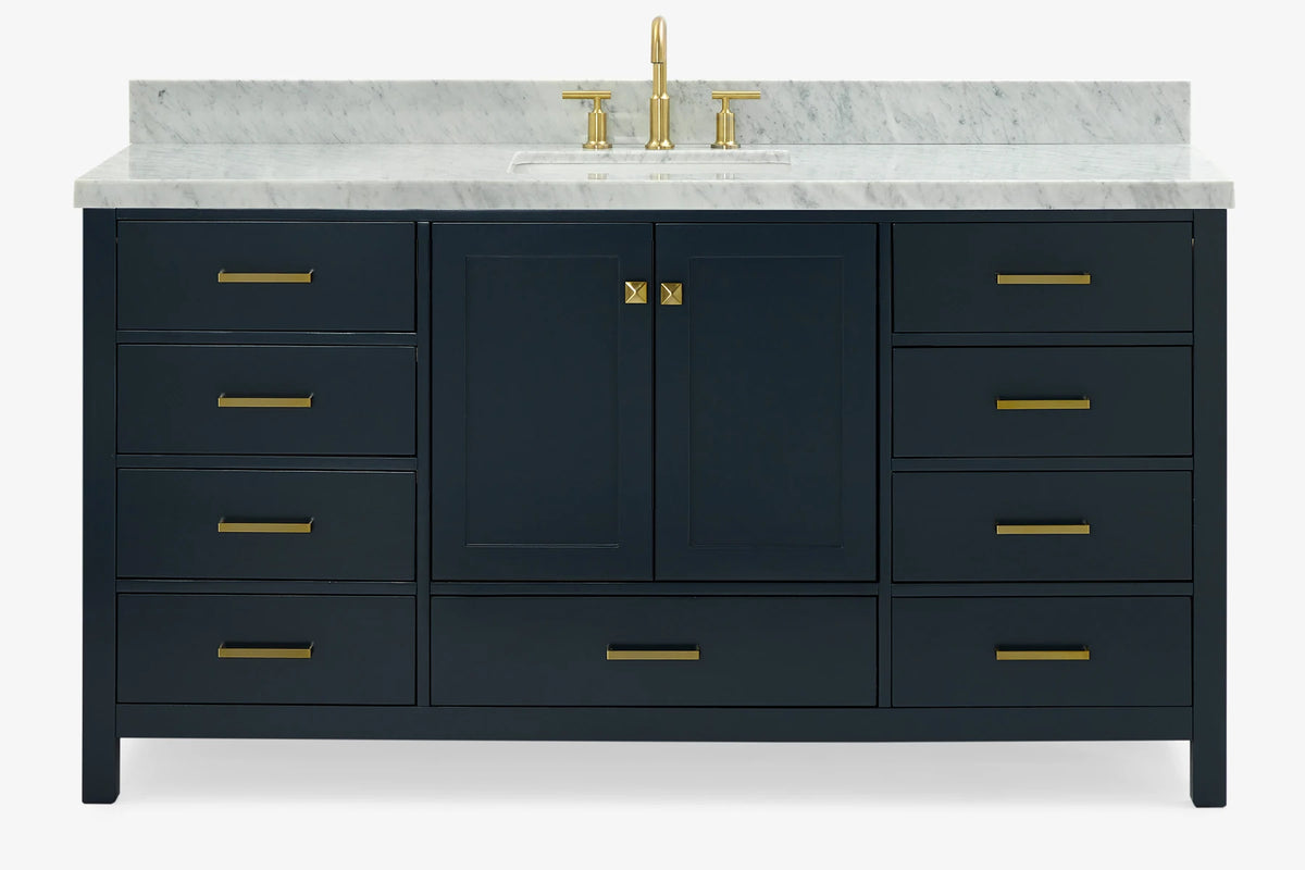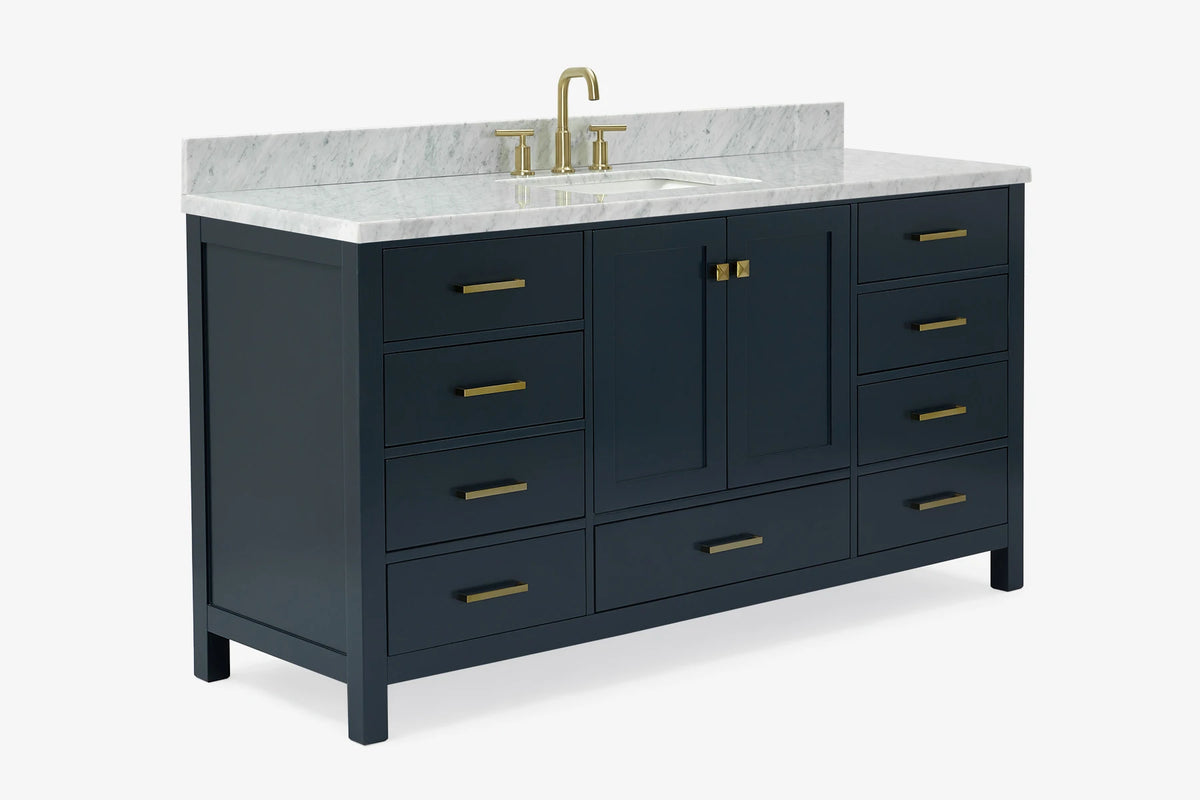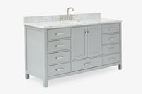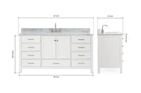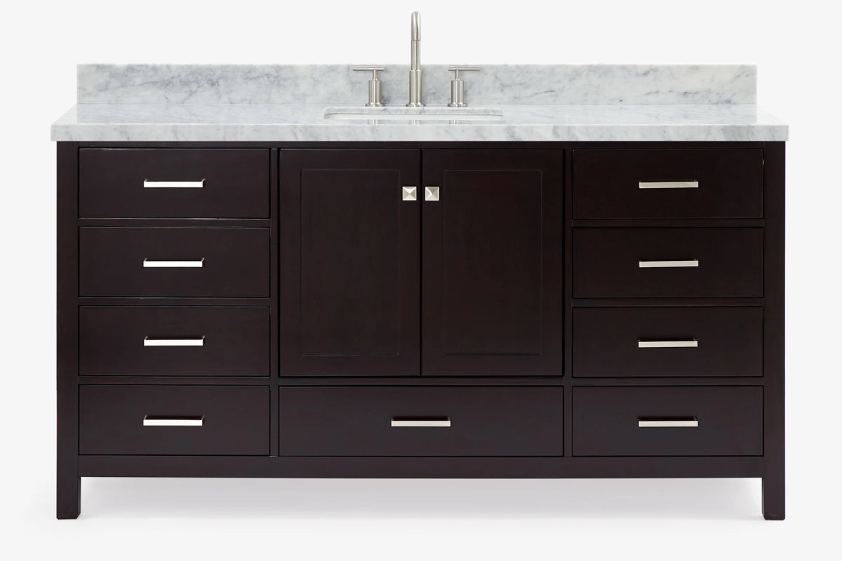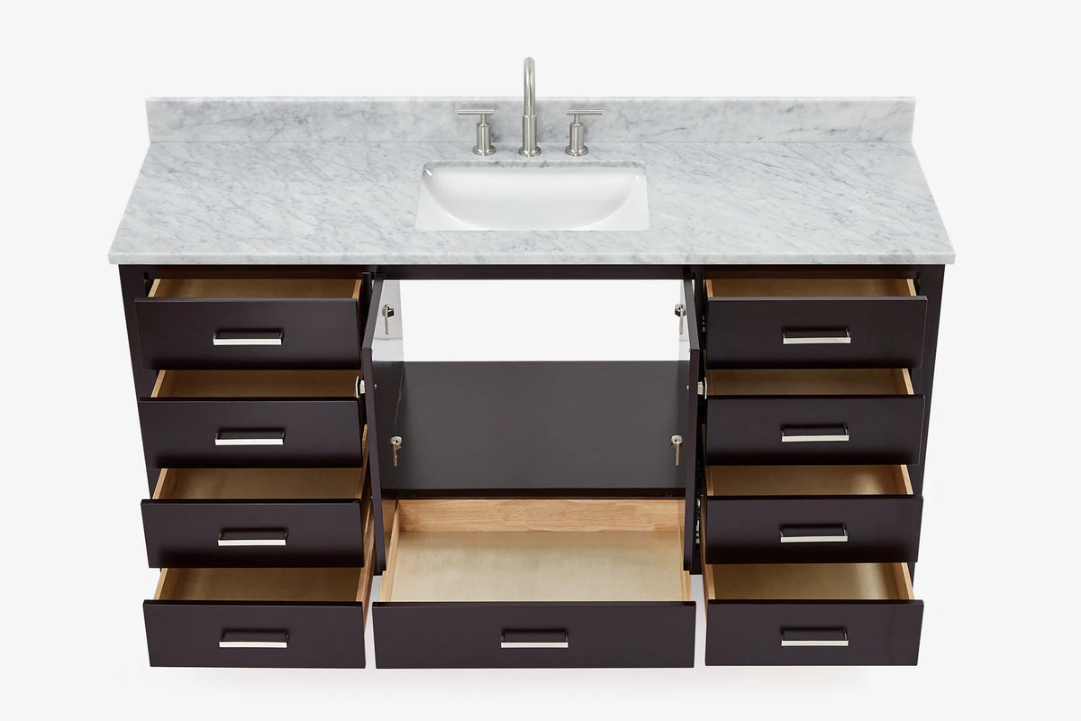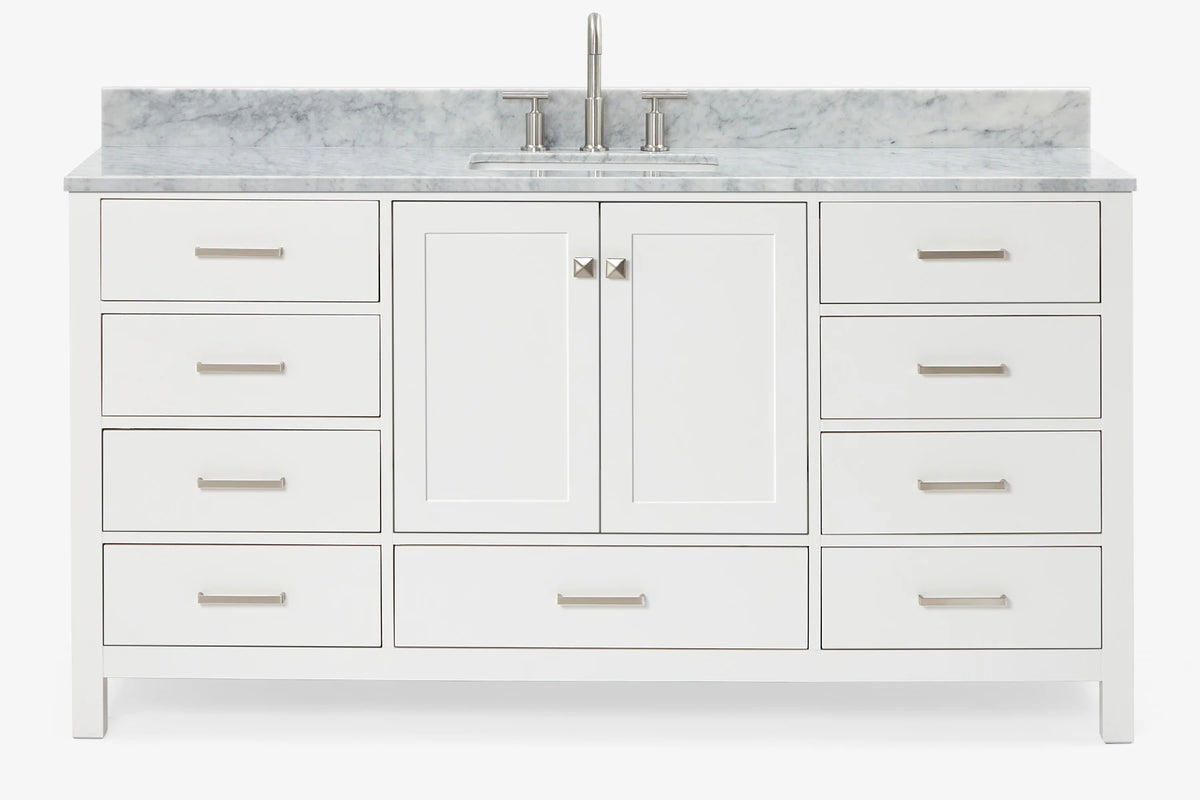 - Italian Carrara White Marble countertop with 0.75" thick miter edge. 4" backsplash included