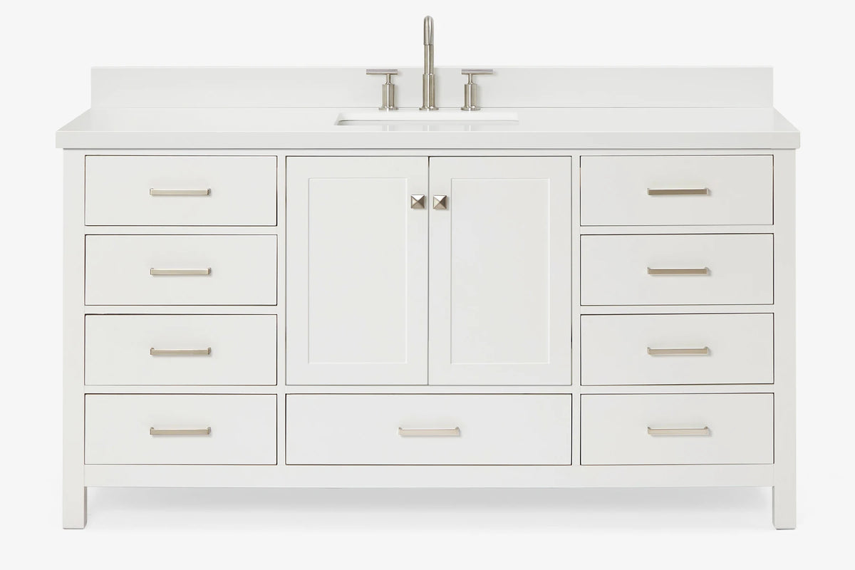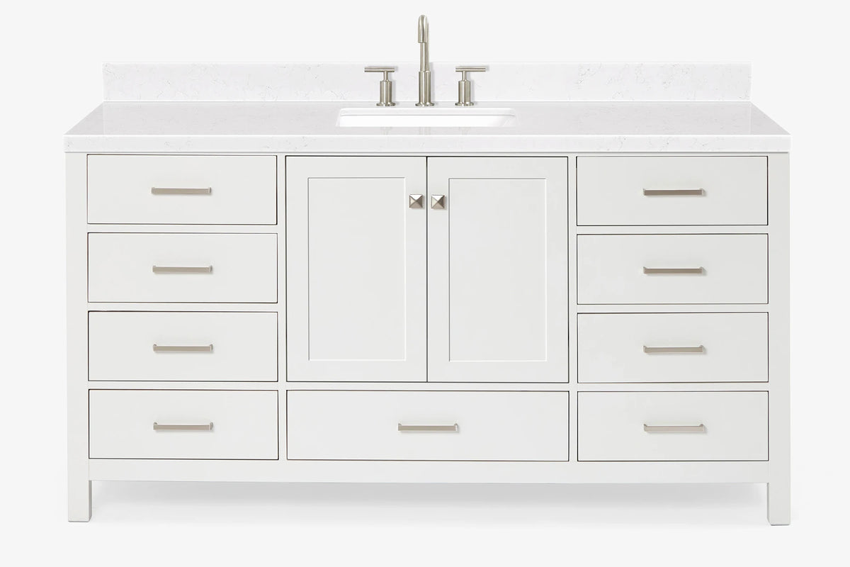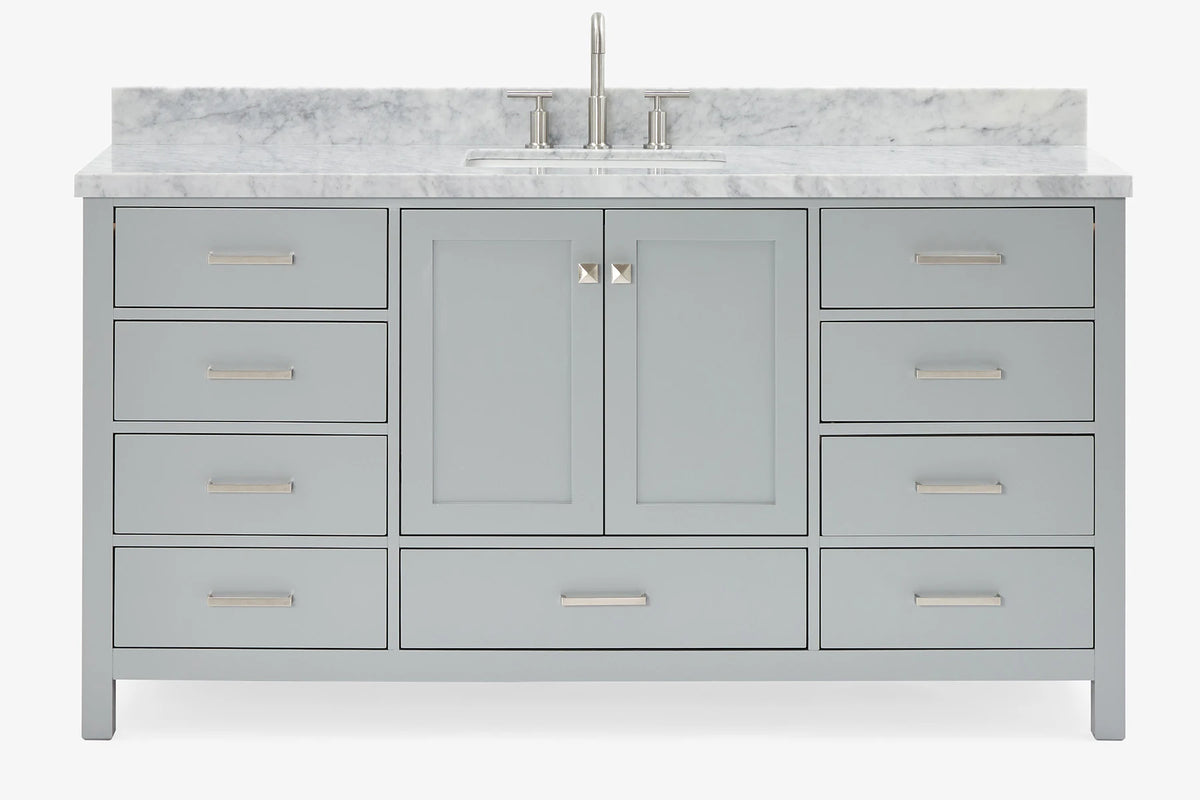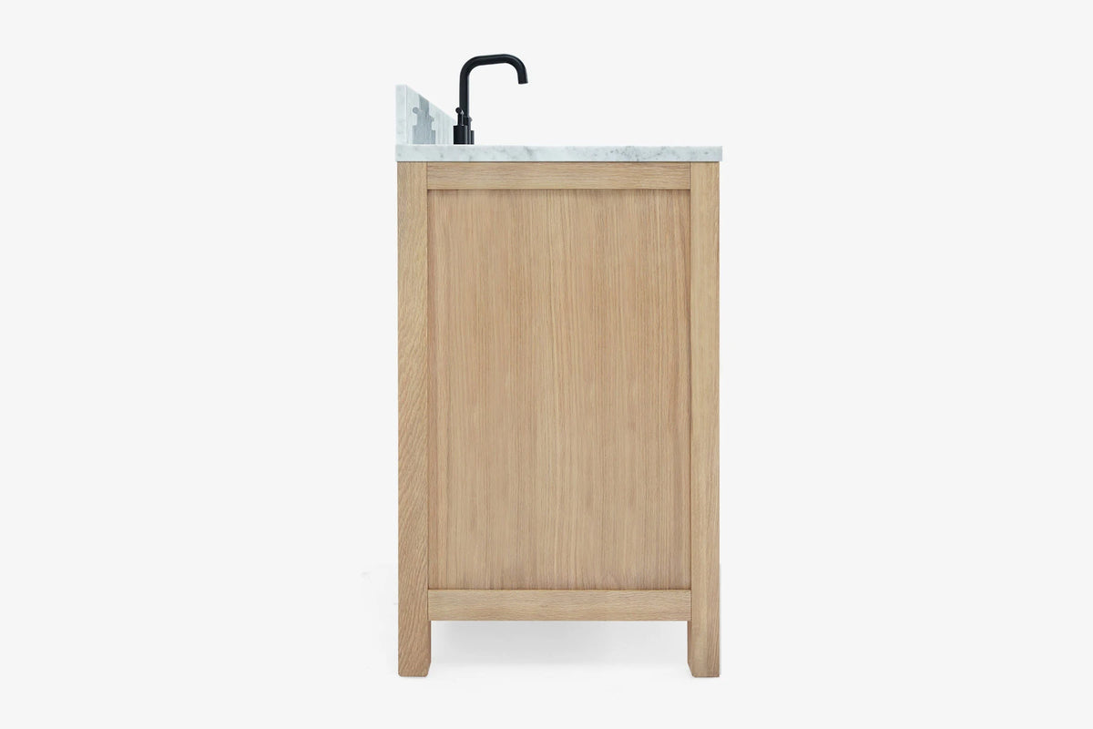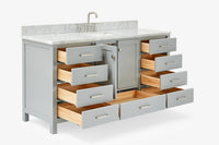 - Italian Carrara White Marble countertop with 0.75" thick miter edge. 4" backsplash included
