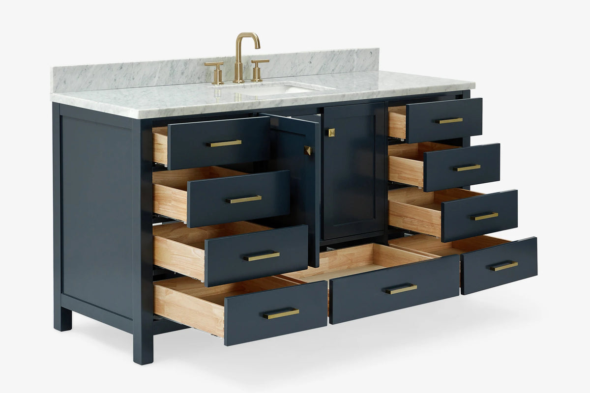 - Ample storage with 9 full extension drawers, 2 soft-closing doors