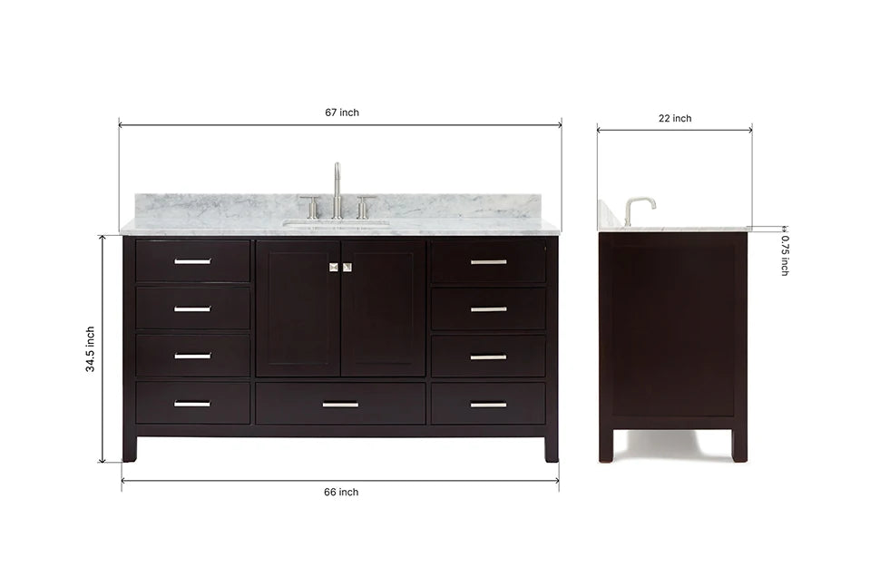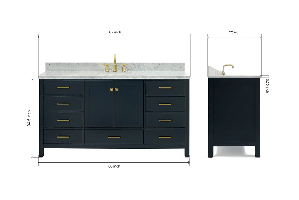 Ariel cambridge 66-67 inch single rectangle sink vanity with countertop with (0.75,1.5)in edge