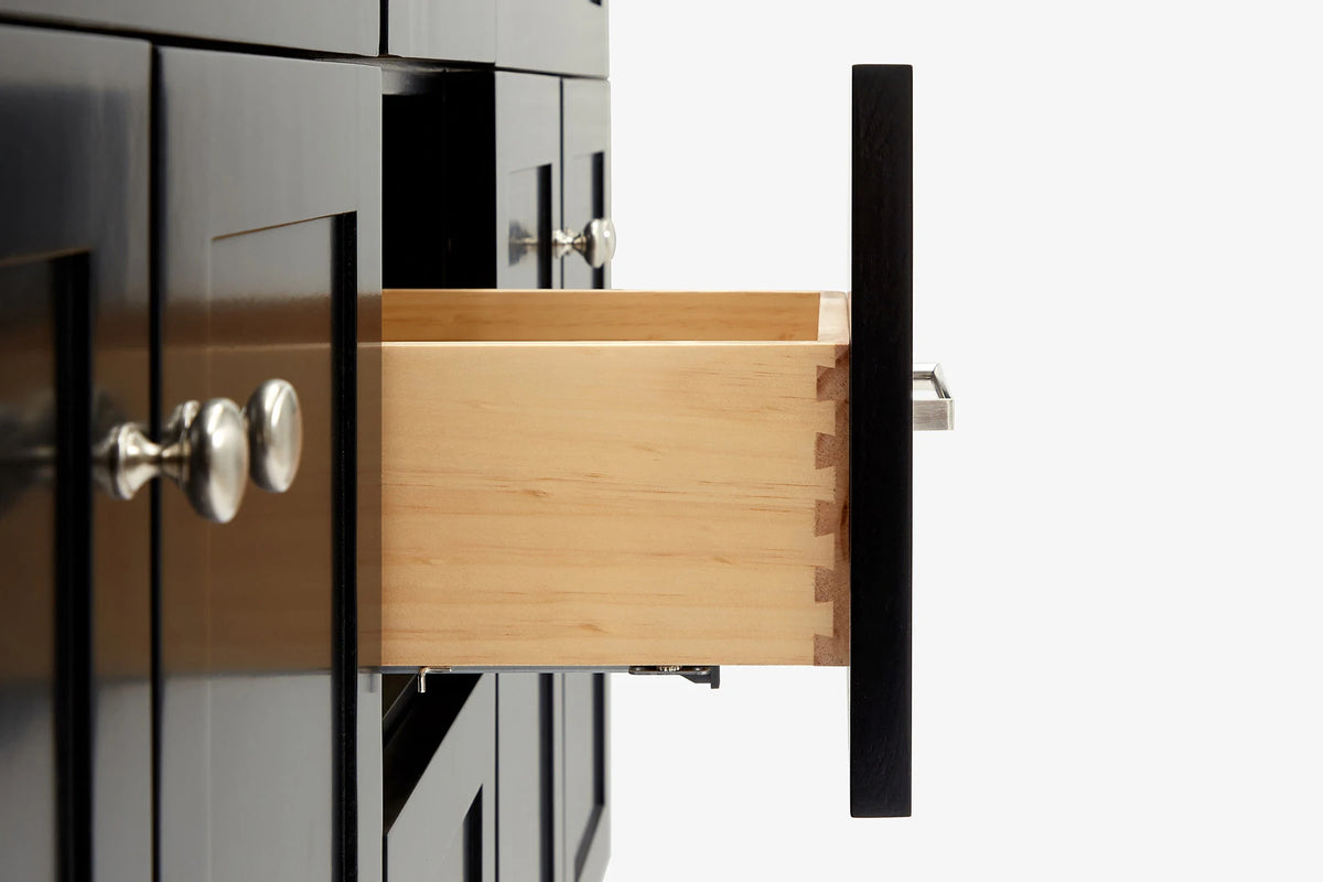 - Dove-tail construction drawer boxes for additional strength and stability