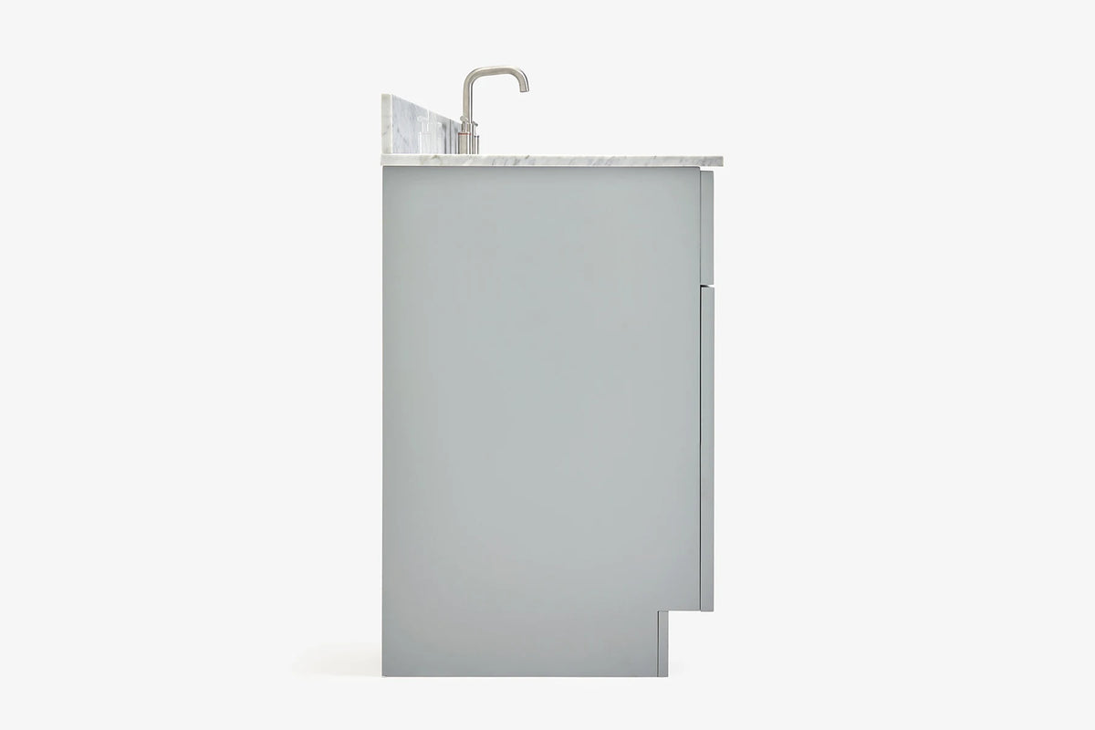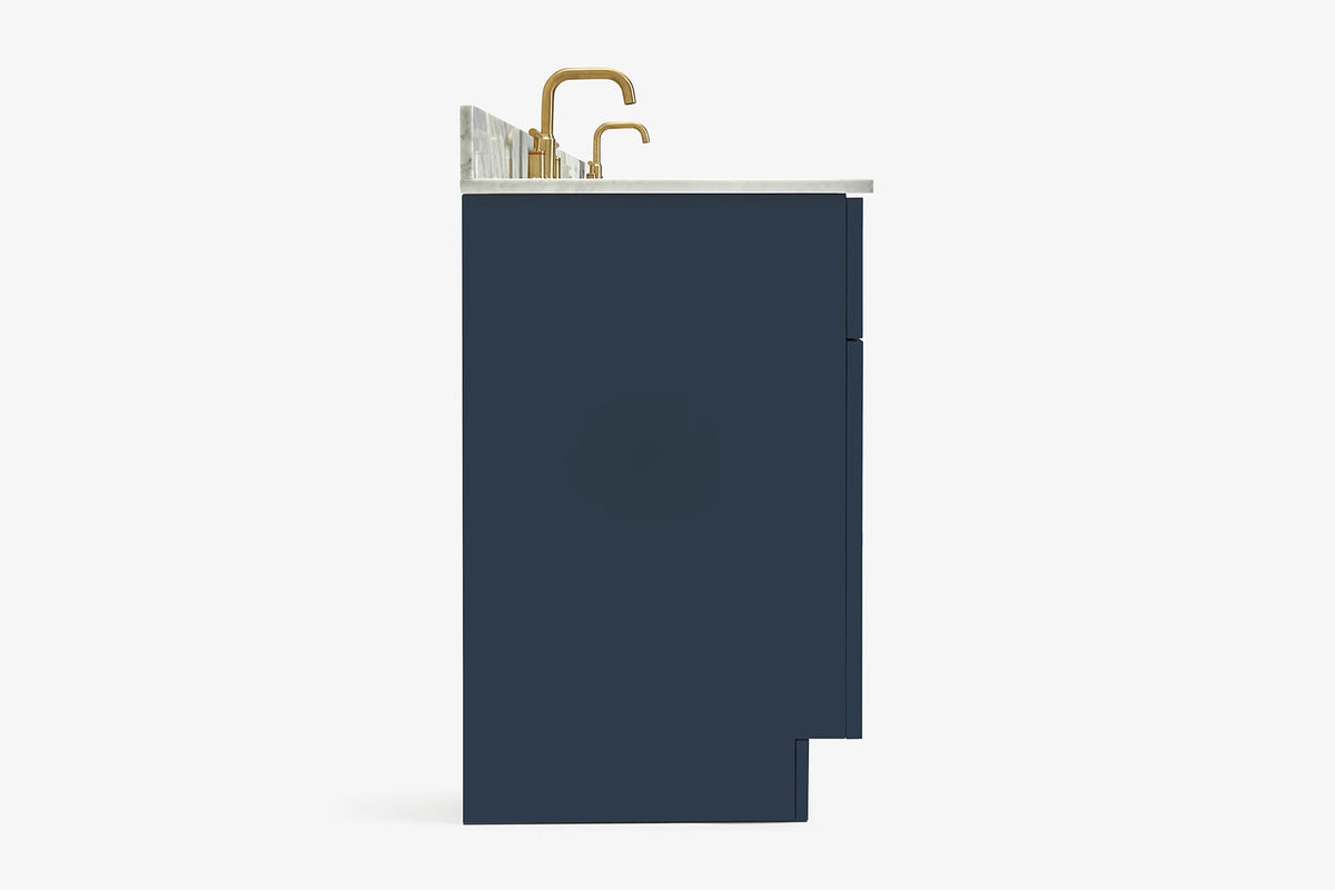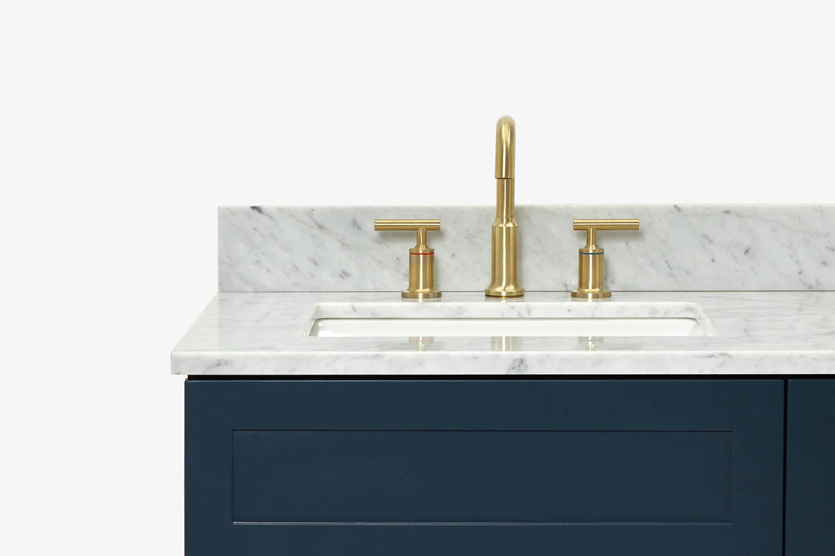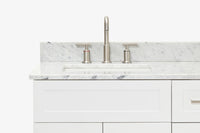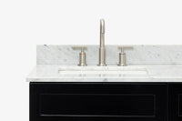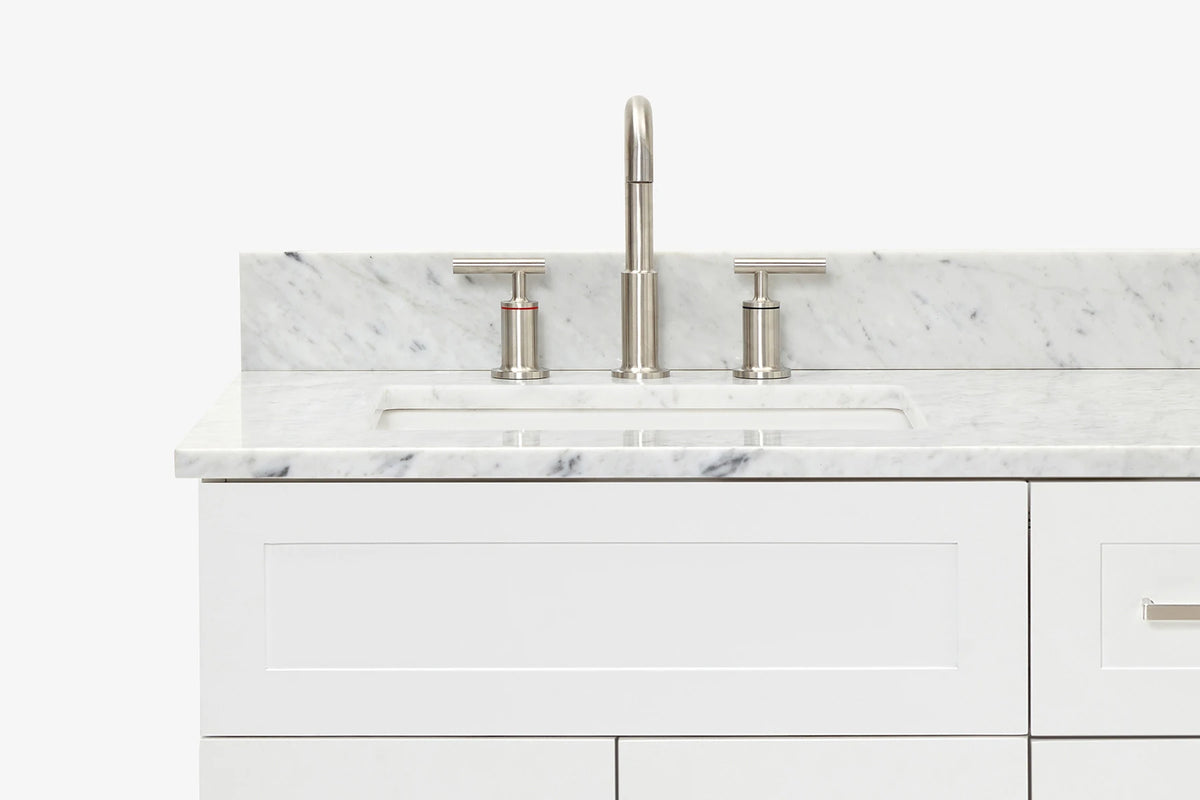 - Carrara White Marble countertop with 0.75 in. edge and matching backsplash