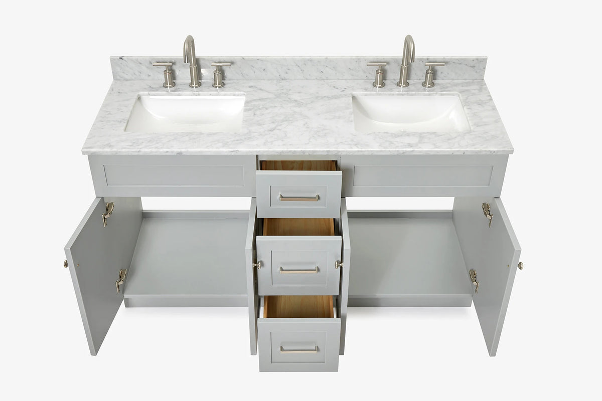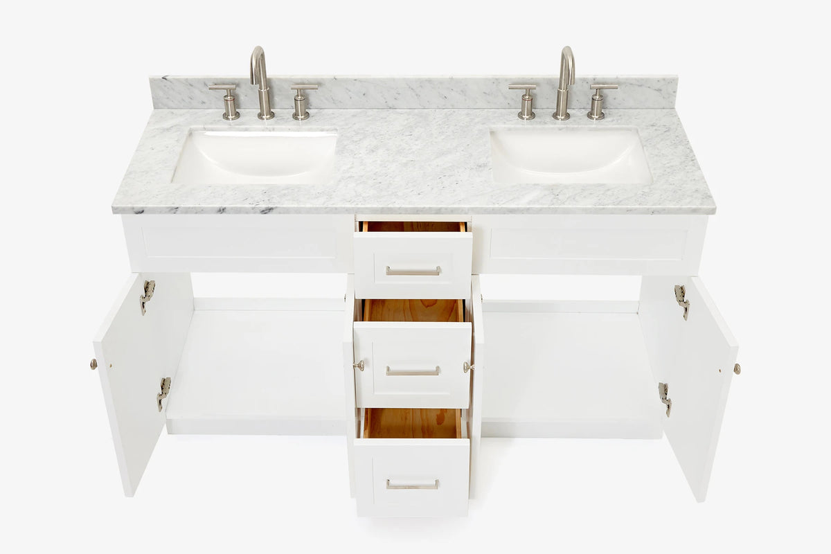 Ariel hamlet (60"& 61") double rectangle sink vanity with (0.75"& 1.5") countertop.