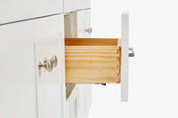 - 3 soft-closing drawers with under-mount drawer slides to meet all your storage needs and 2 decorative faux drawer to complete the look