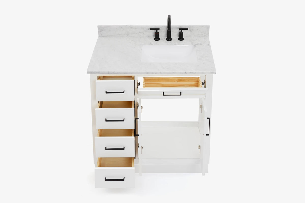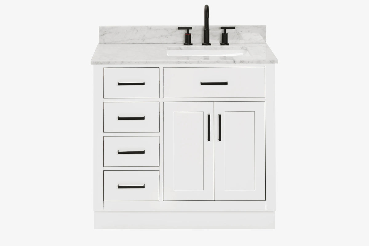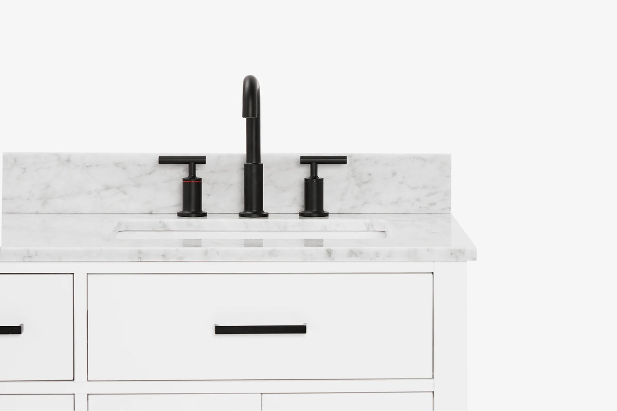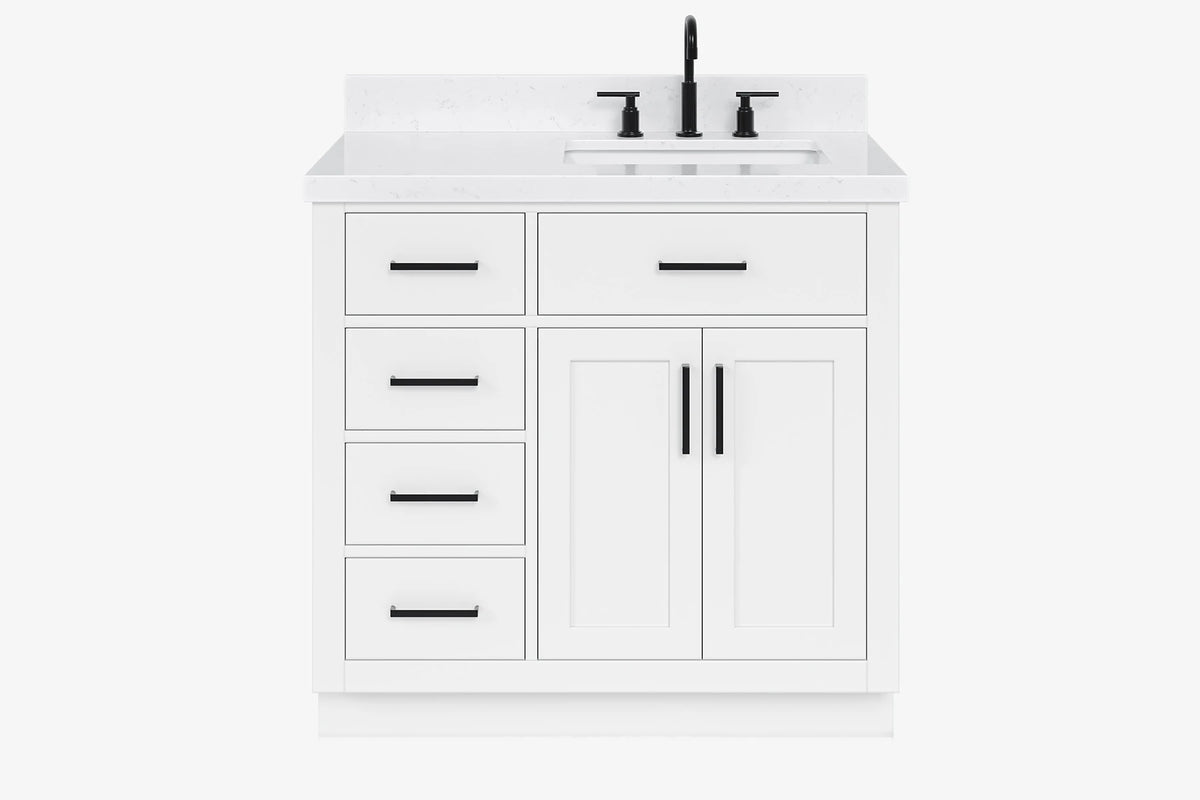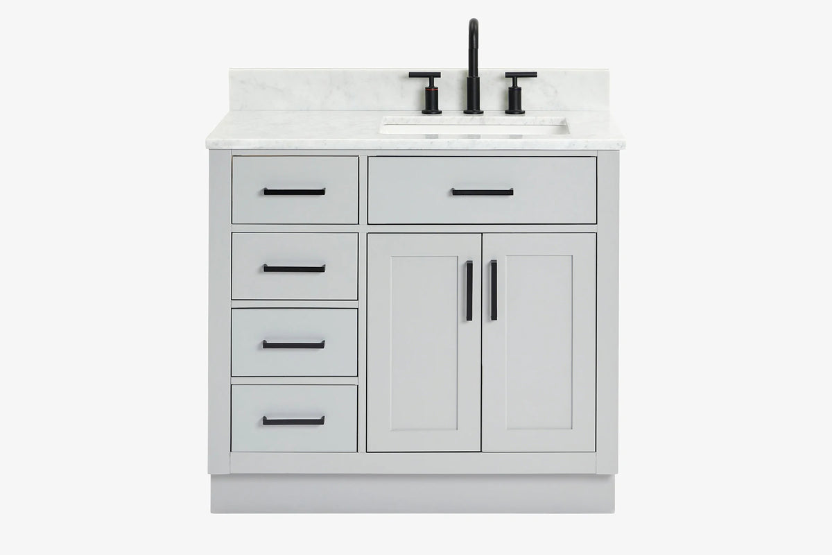 Hepburn collection from ARIEL Bath is the perfect combination of elegance and form, taking inspiration from traditional cabinetry with a modern twist. Constructed from high quality hardwood plywood with a tilt-down top drawer to keep smaller items conveniently at hand. This bathroom vanity with sink will be sure to last for many years to come. Cabinets are available in Grey, Midnight Blue, or White finishes, you can be sure to find the right color fit for your bathroom decor.