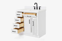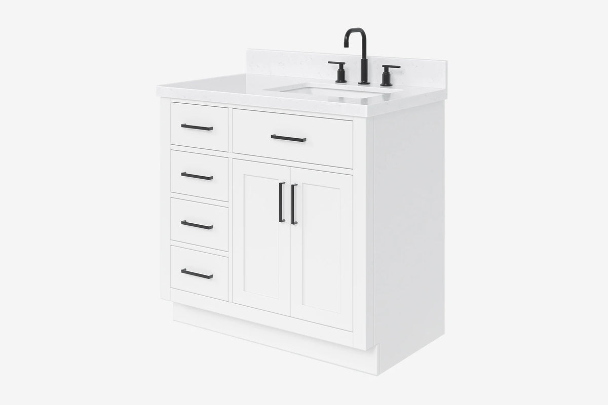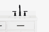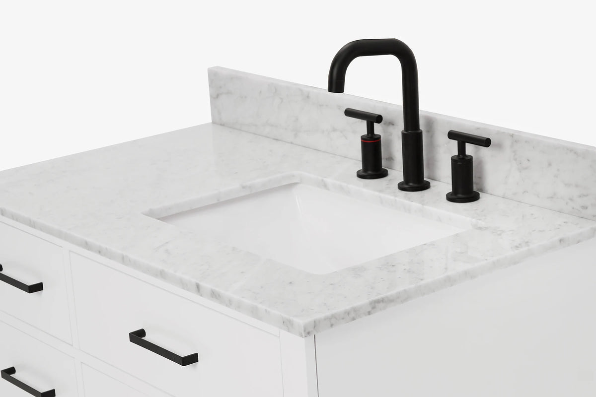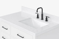 - Pure White Quartz countertop with 1.5" thick miter edge. 4" backsplash included