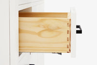 - Cabinet is expertly hand crafted from solid wood, Plywood and finished in White