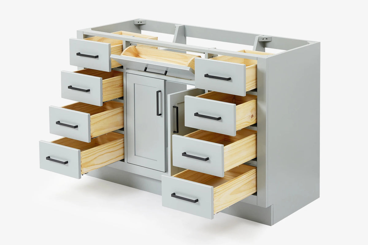 • Ample storage with 1 45-degree tilt out drawer, 8 full extension drawers and 2 soft-closing doors