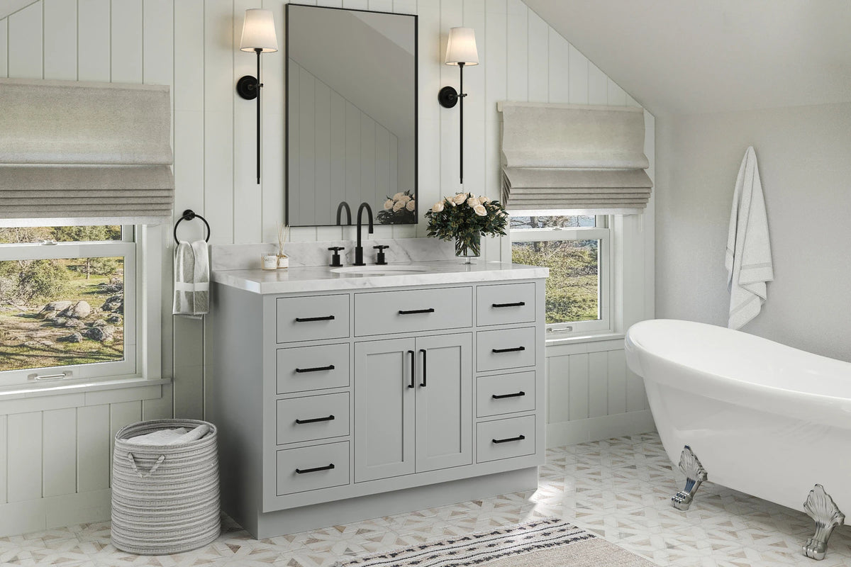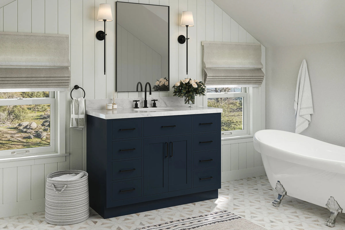 The Hepburn vanity is an elegant and fancy looking vanity that brings the same style as Audrey Hepburn, one of the most famous actress of all times. The mixture of tradition and modern makes it stand out from the most vanity collections. Constructed from premium solid oak veneer, this ARIEL bathroom vanity creates a warm and inviting atmosphere in your bathroom while exuding a touch of sophistication.