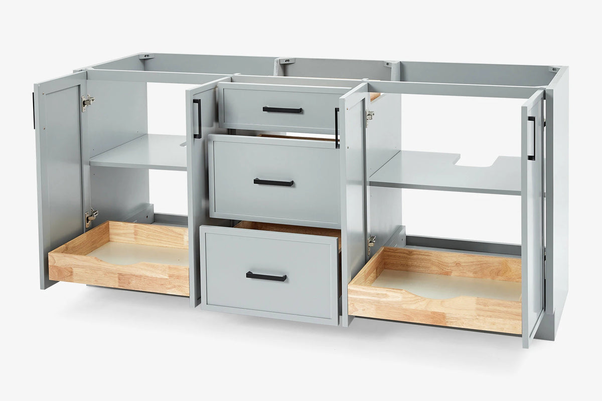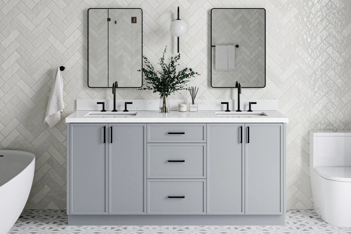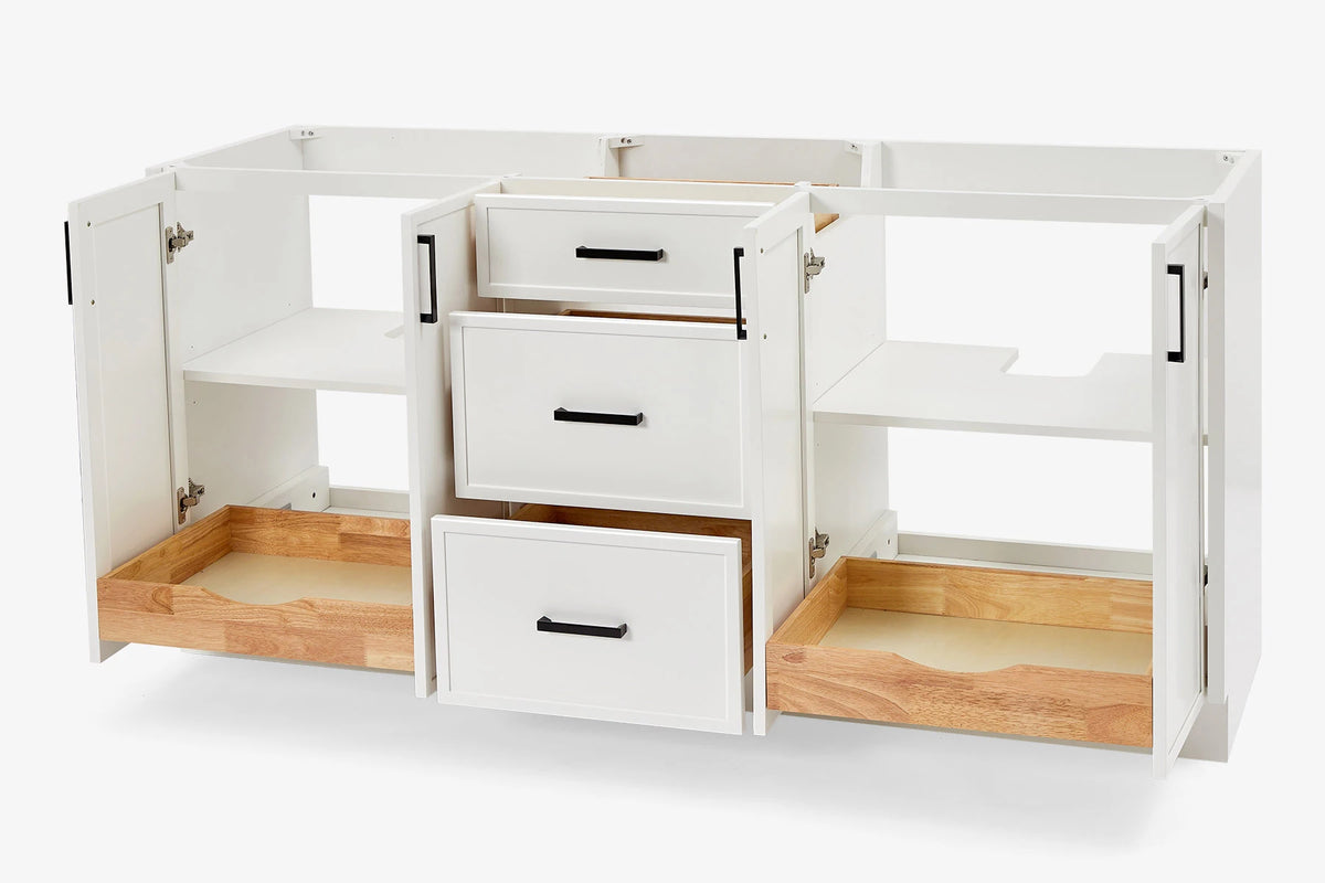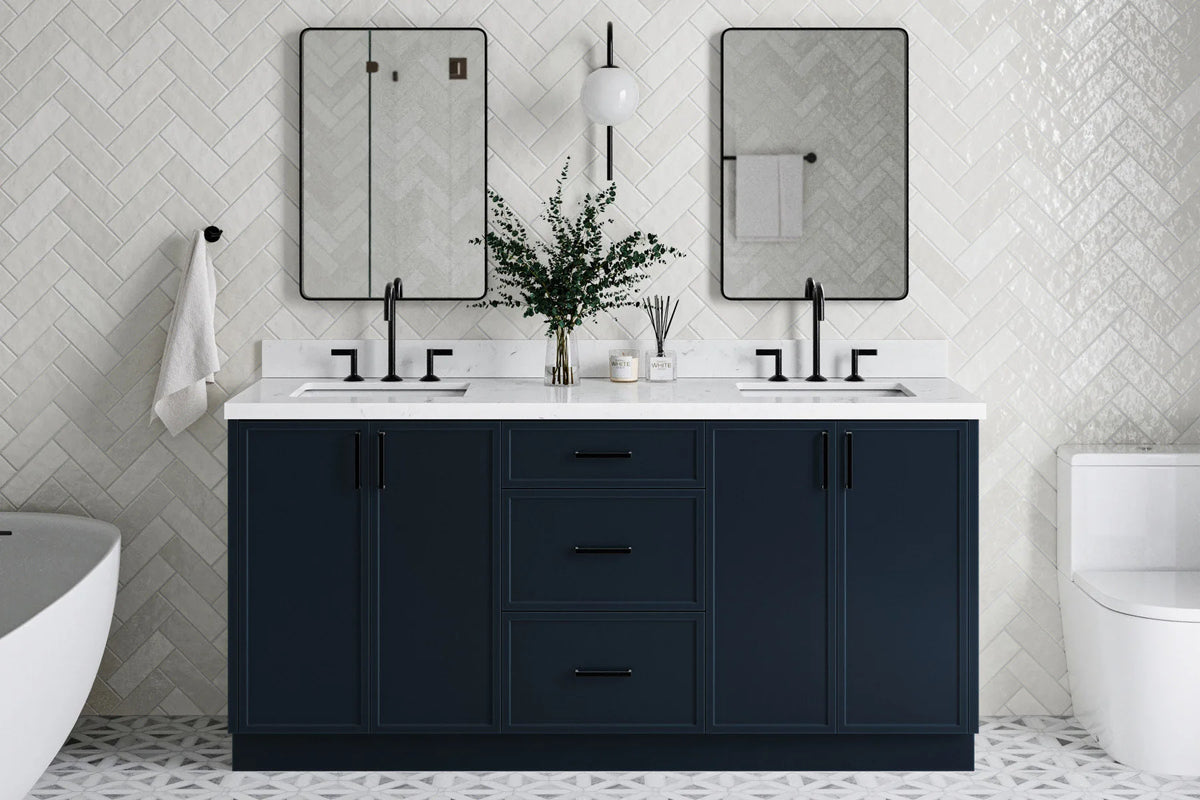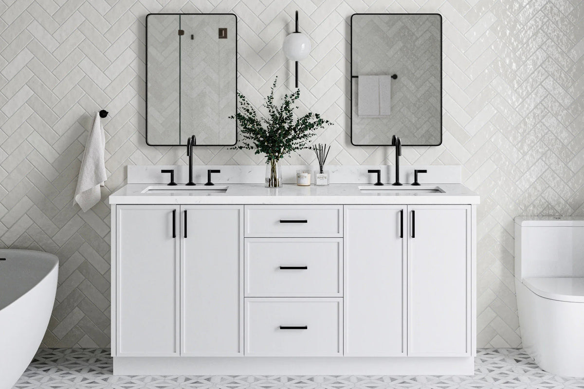 Kelly collection from ARIEL Bath crafted from sturdy solid wood and plywood, offers generous storage. Its sleek slim shaker door and inner pull-out drawer elevate both the aesthetic allure and practicality of any contemporary bathroom. This bathroom vanity with sink will ensure that your bathroom remains clutter-free. Choose from various countertop options and finishes to suit your modern taste.