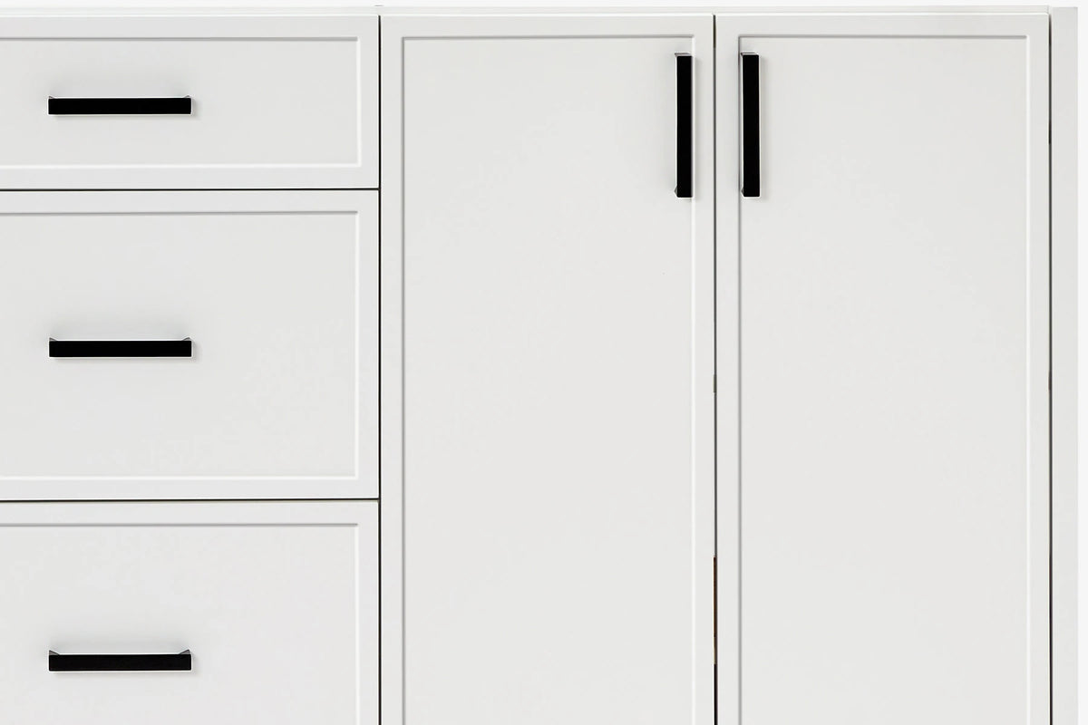 • Ample storage with 1 full extension drawers, 2 deep drawers, 2 additional inside drawer, 4 soft-closing doors