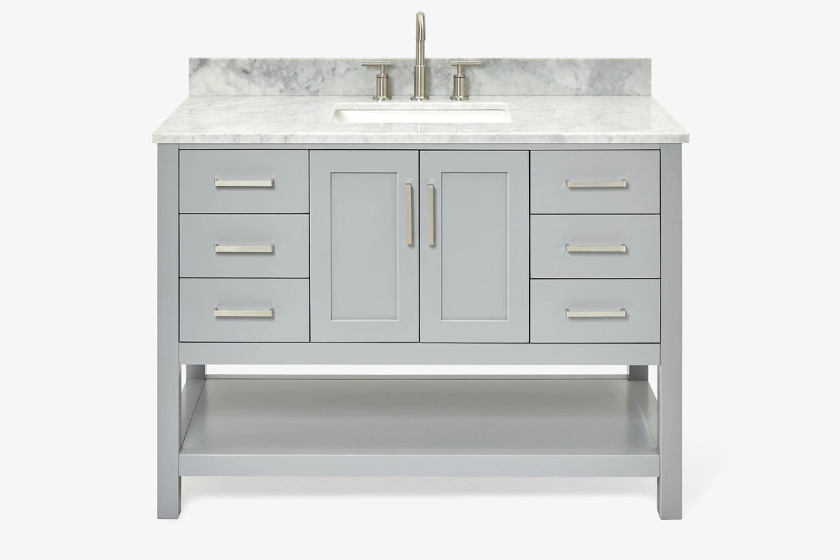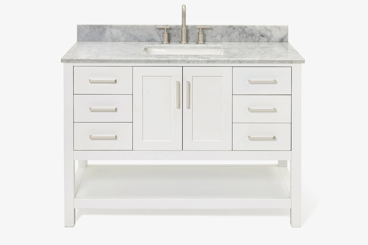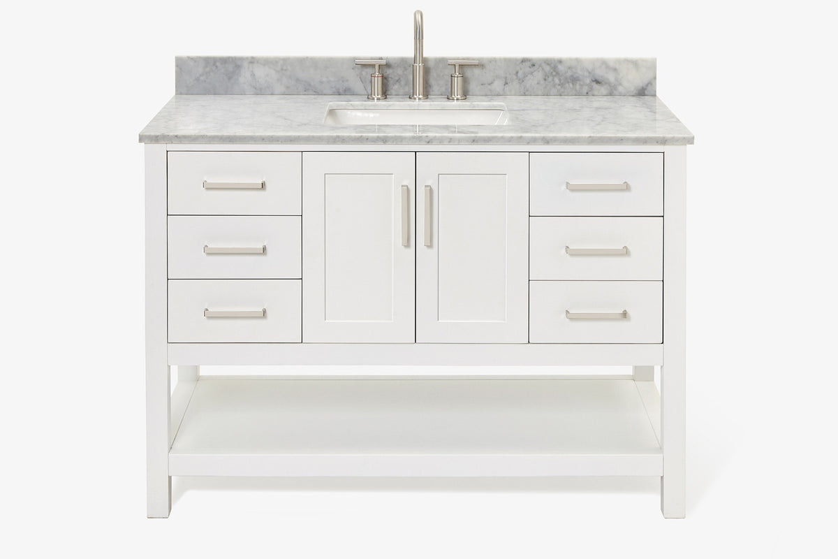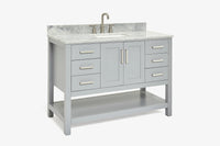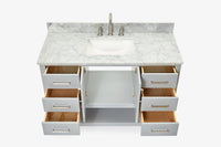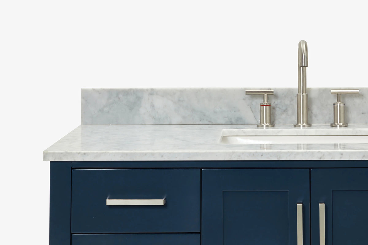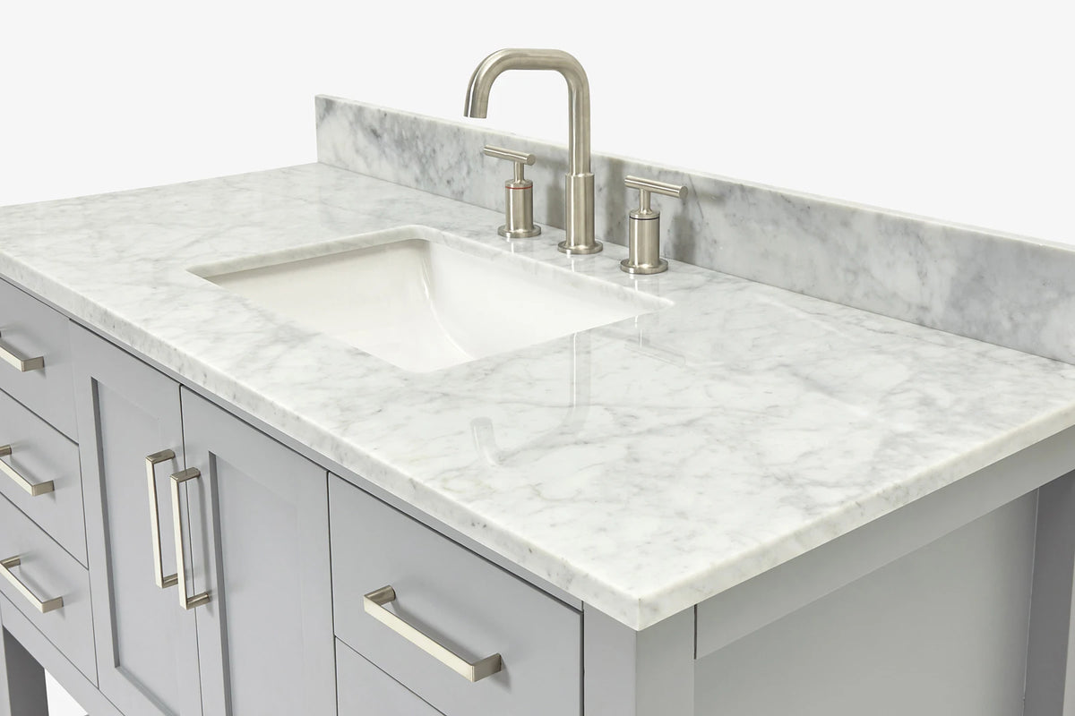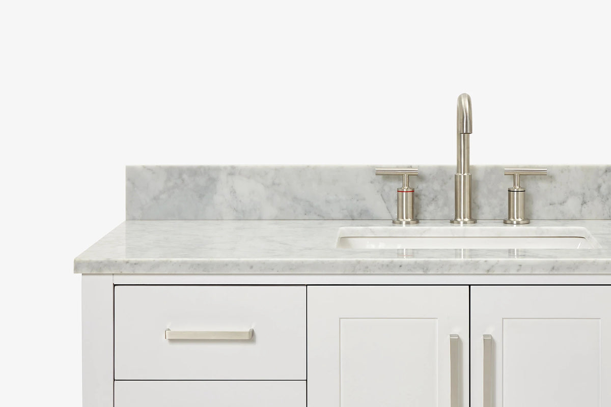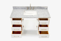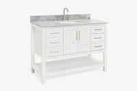 Ariel magnolia 49 in. rectangle sink vanity with 0.75 in. carrara white marble countertop in white