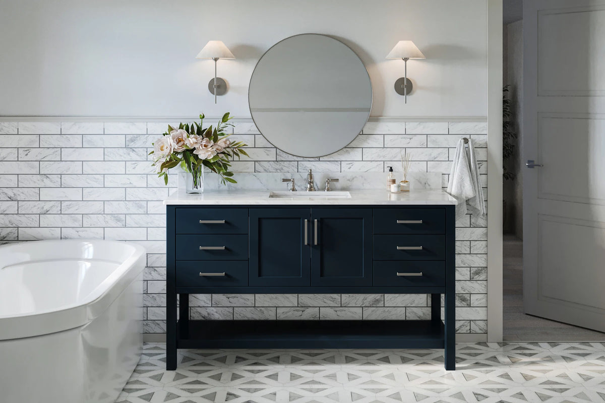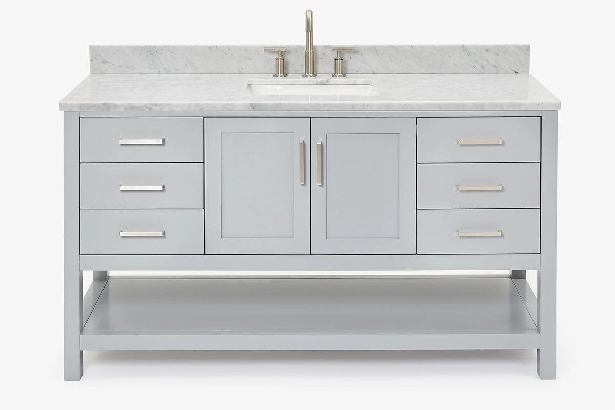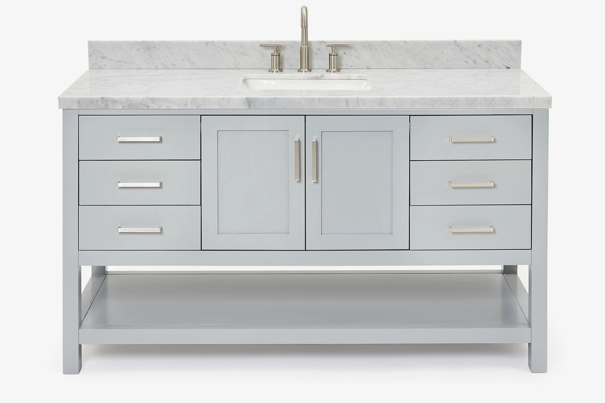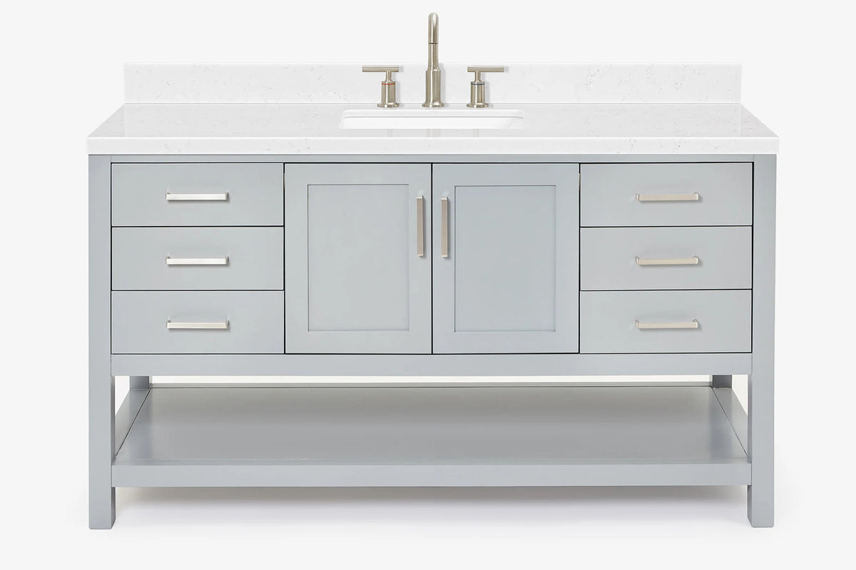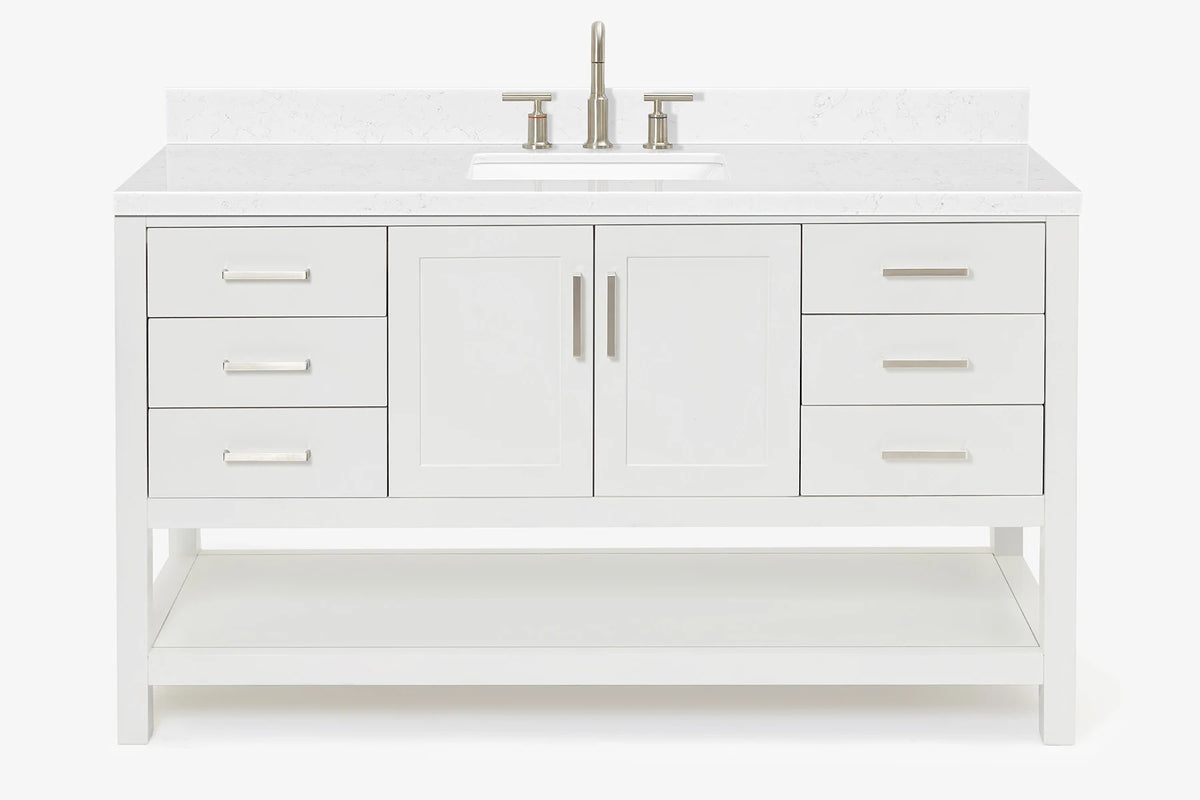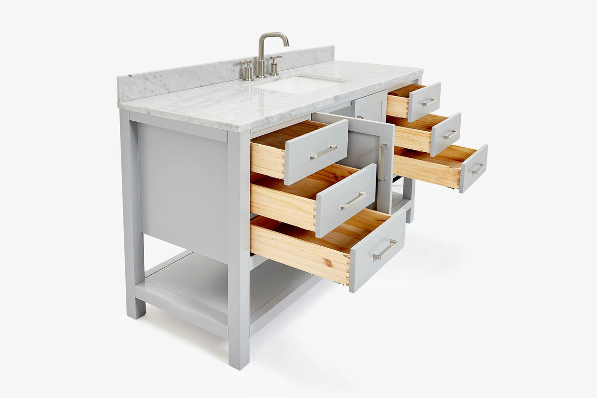 Magnolia collection from ARIEL Bath is handcrafted of solid wood to ensure quality and durability. By combining a top drawer, middle open shelf, we've created a functional piece for any bathroom. The open shelf at the bottom is a great place to store your accessories or keep toiletries within easy reach. A wide variety of options are available such as countertop material, sink shape, and cabinet color for your bathroom decor.