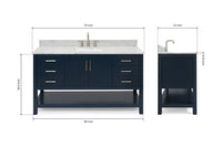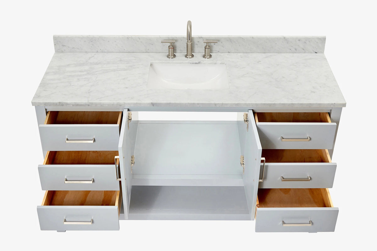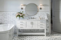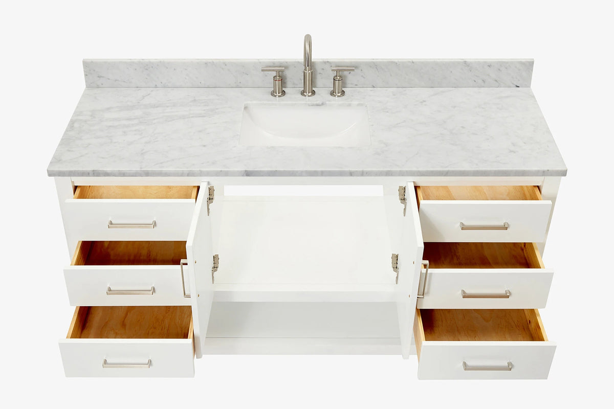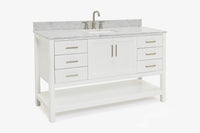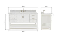 Ariel magnolia 61 in. rectangle sink vanity with 0.75 in. carrara white marble countertop in white