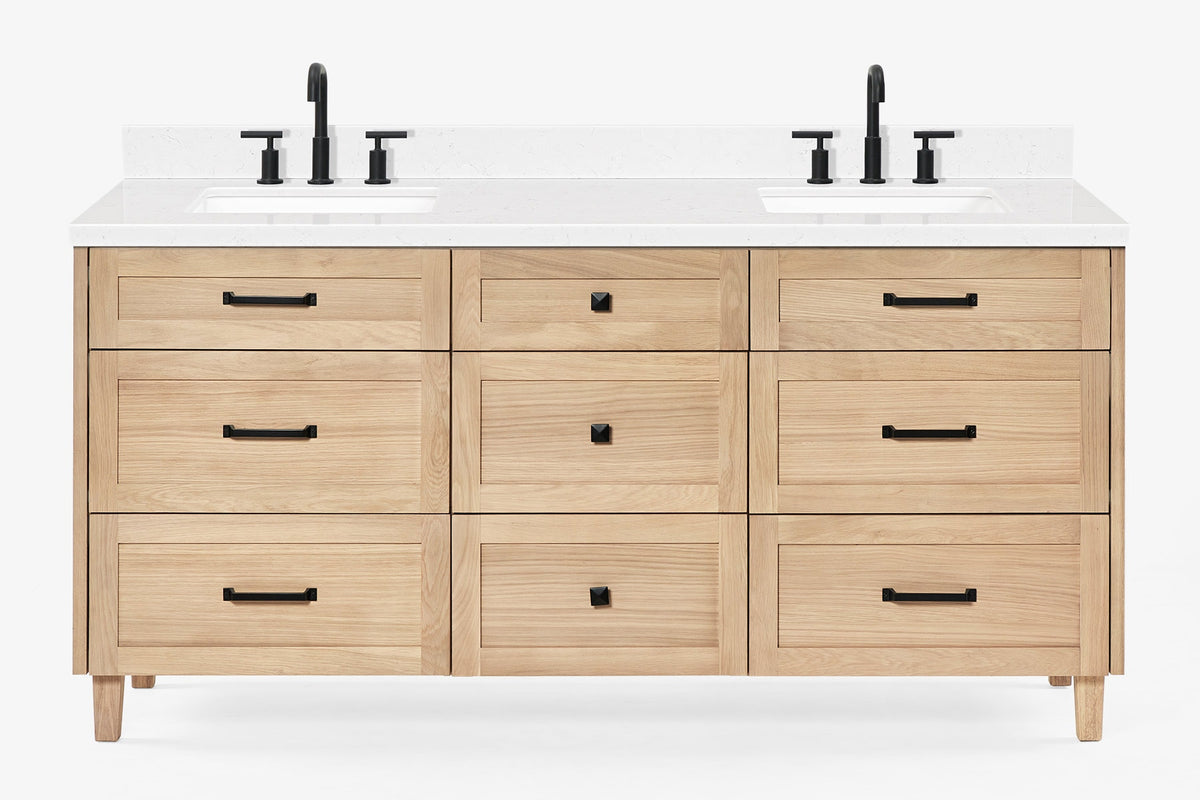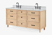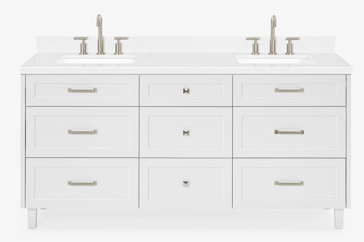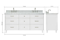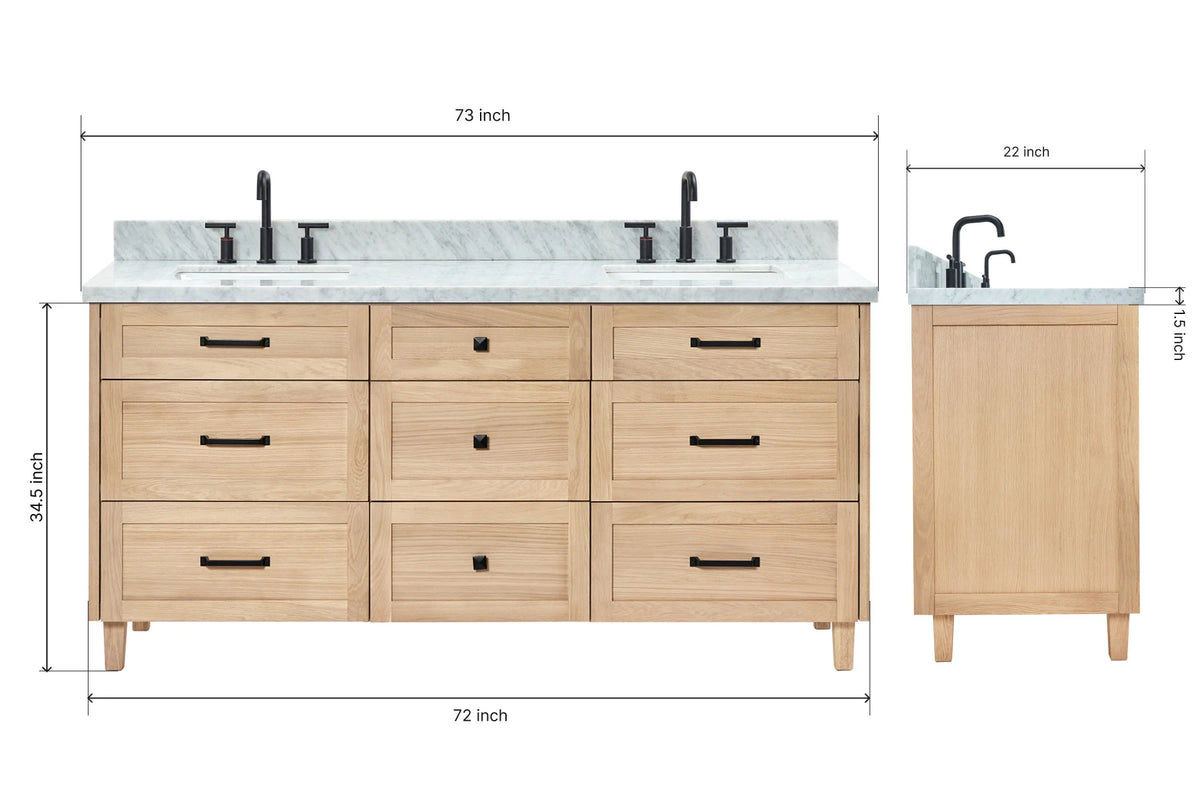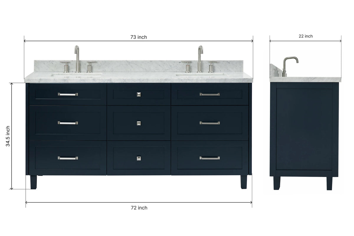 Ariel monroe 73 inch double rectangle sink bathroom vanity with countertop 1.5 inch edge