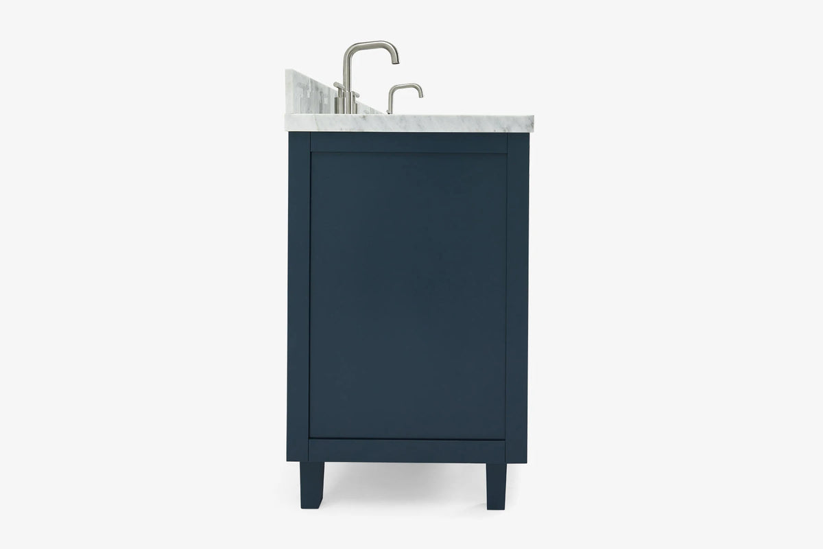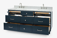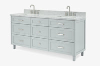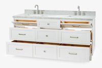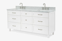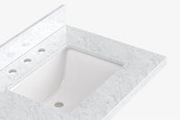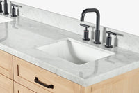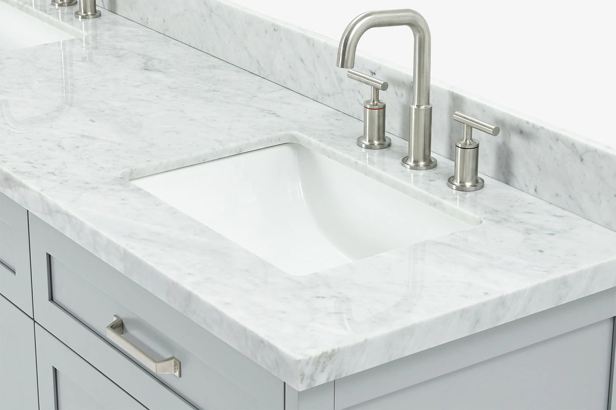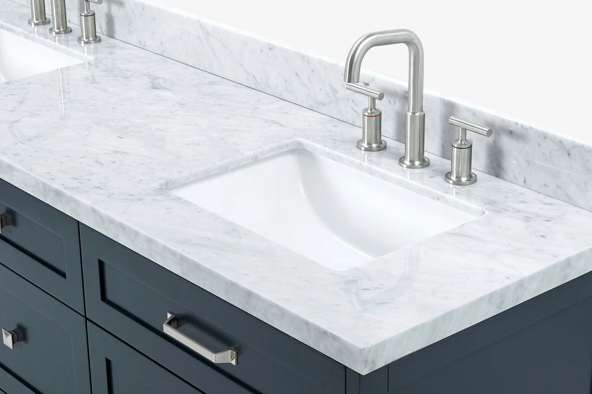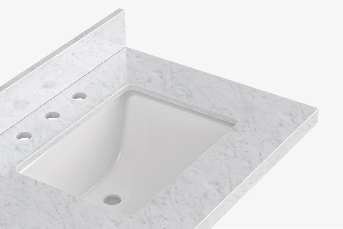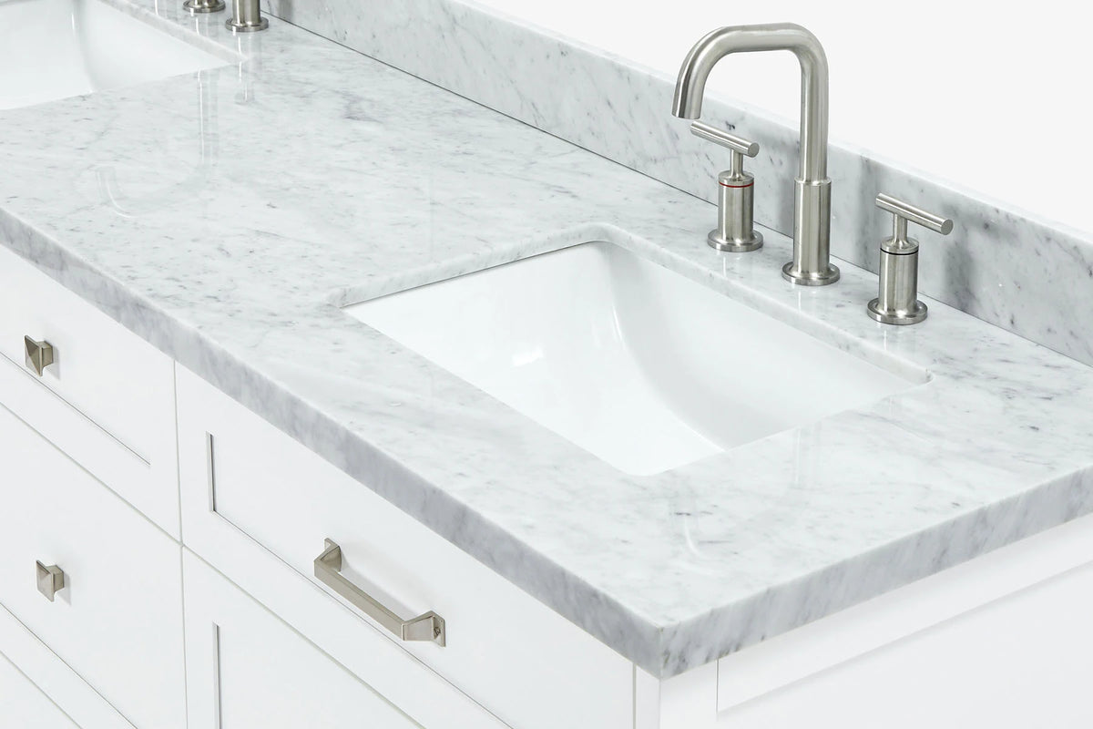 - Italian Carrara White Marble countertop with 1.5" thick miter edge. 4" backsplash included