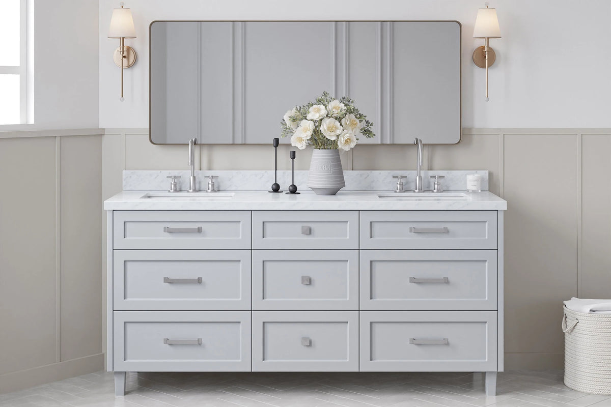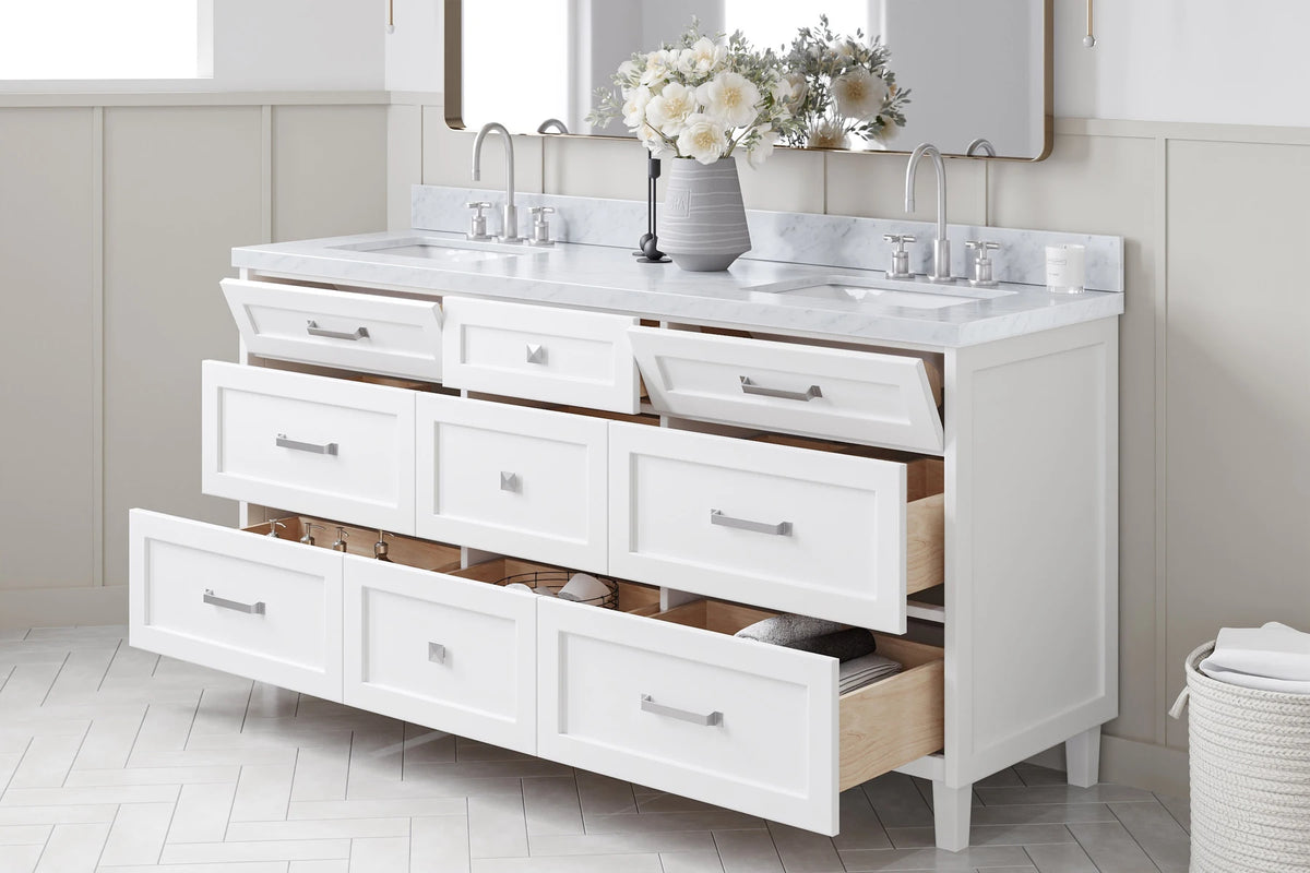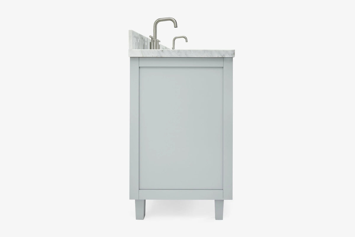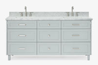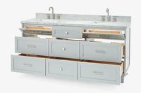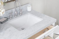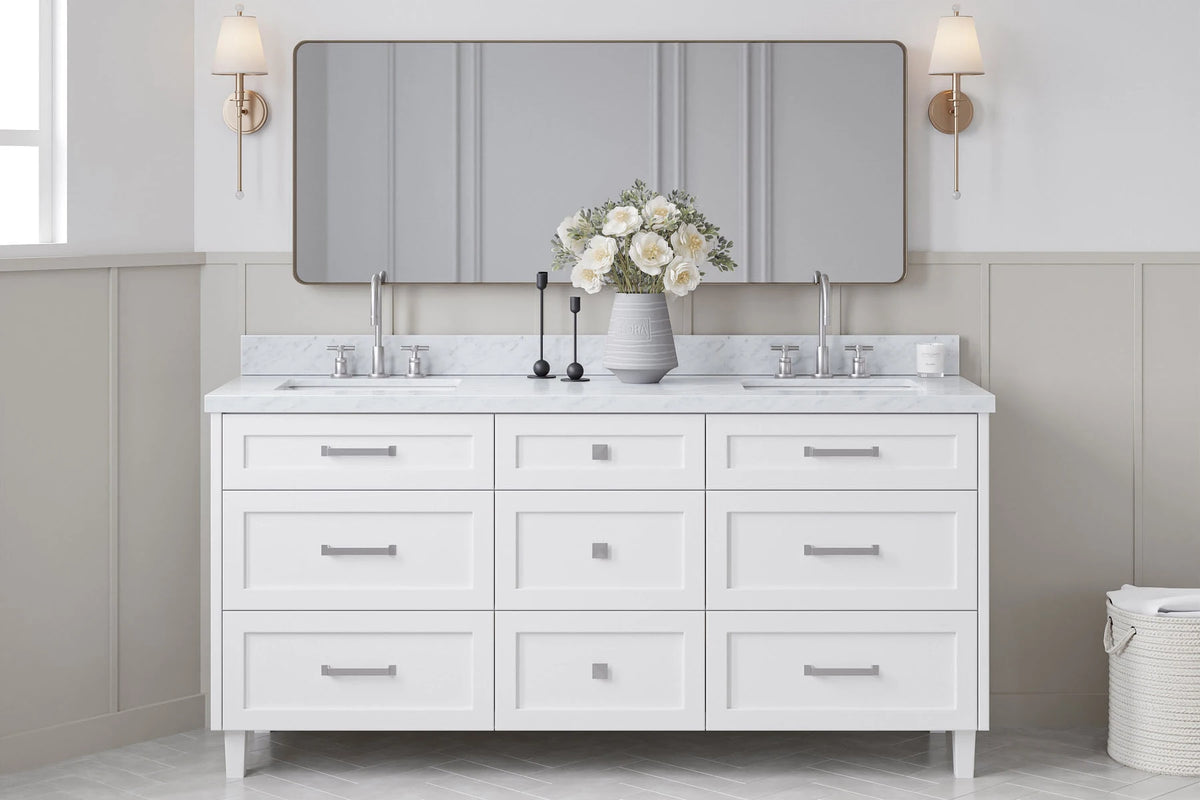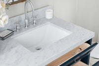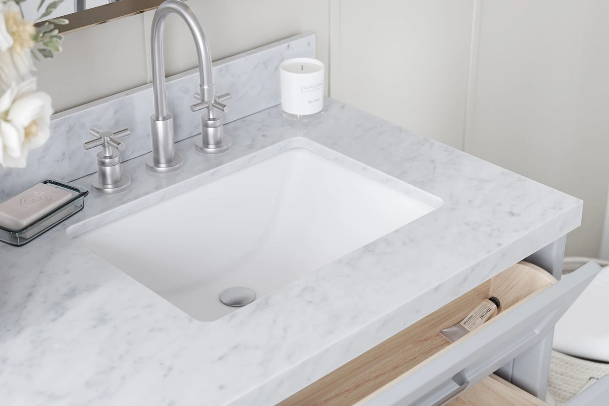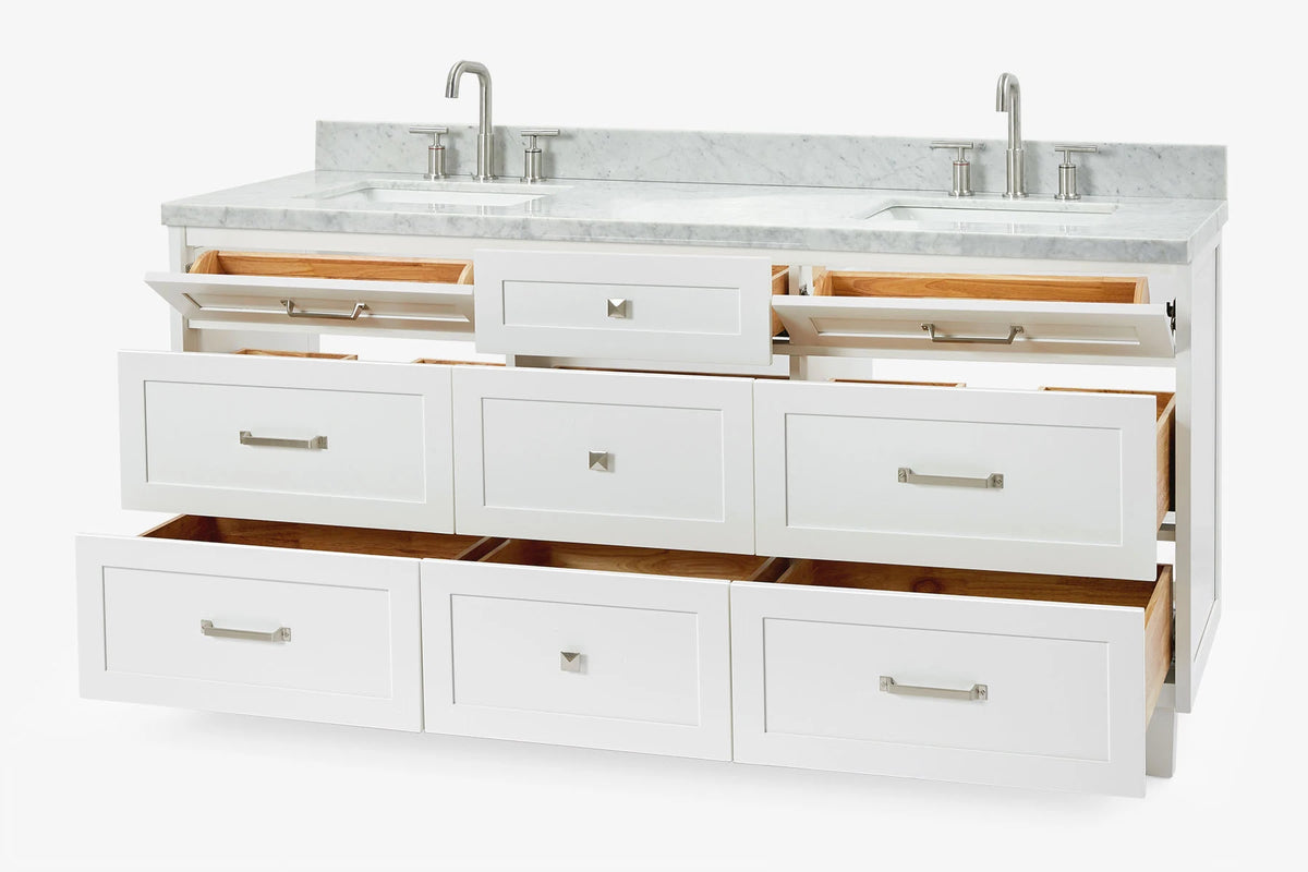 - Italian Carrara White Marble countertop with 1.5" thick miter edge. 4" backsplash included