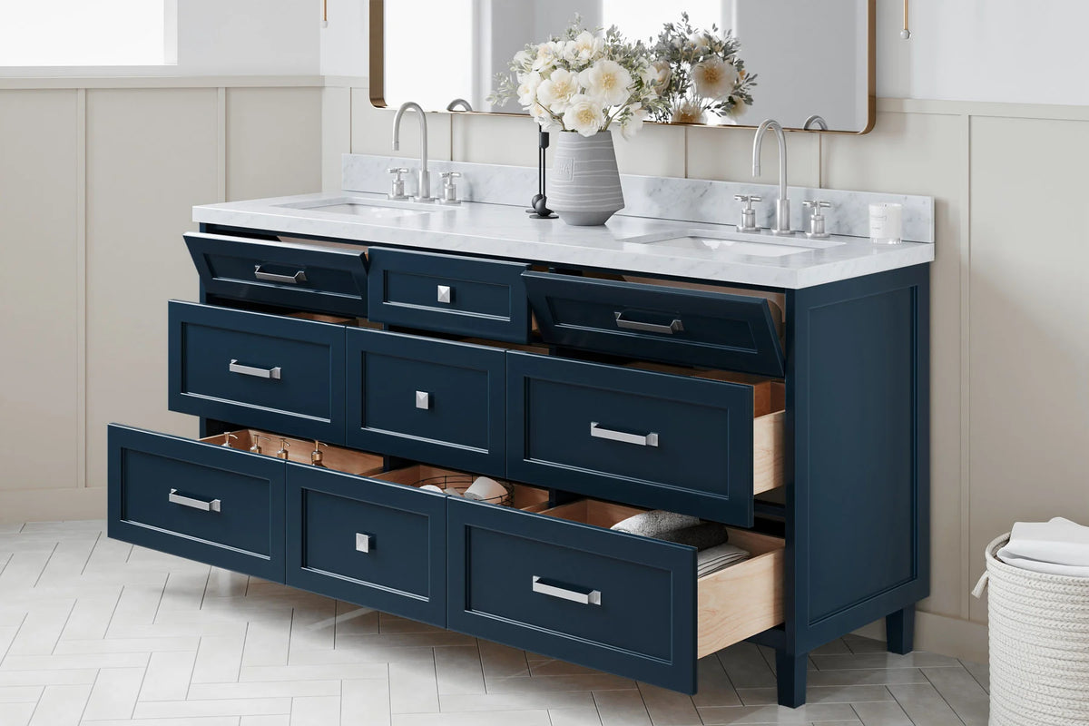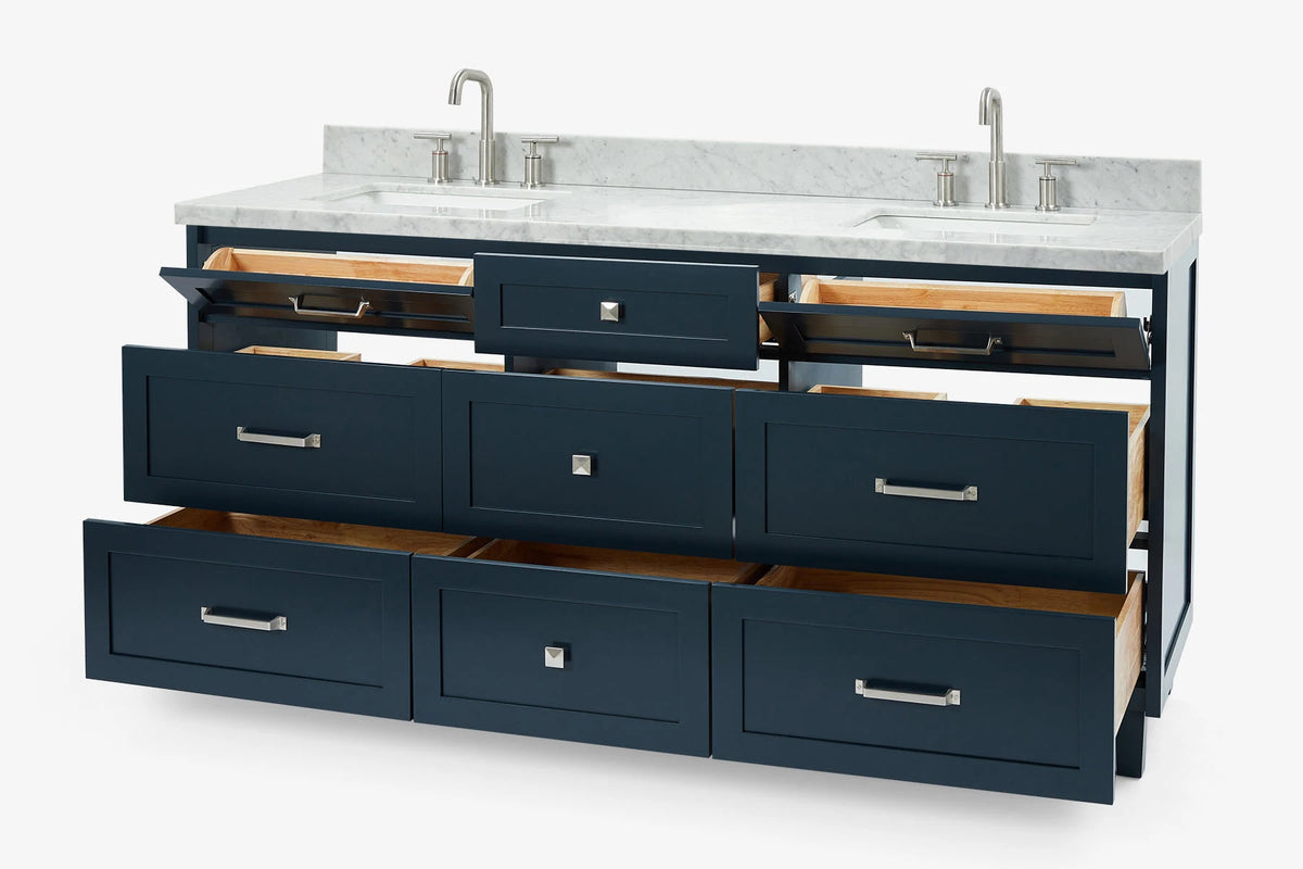 - Ample storage with 2 45-degree tilt out drawer, 2 full extension drawers, 5 deep drawers