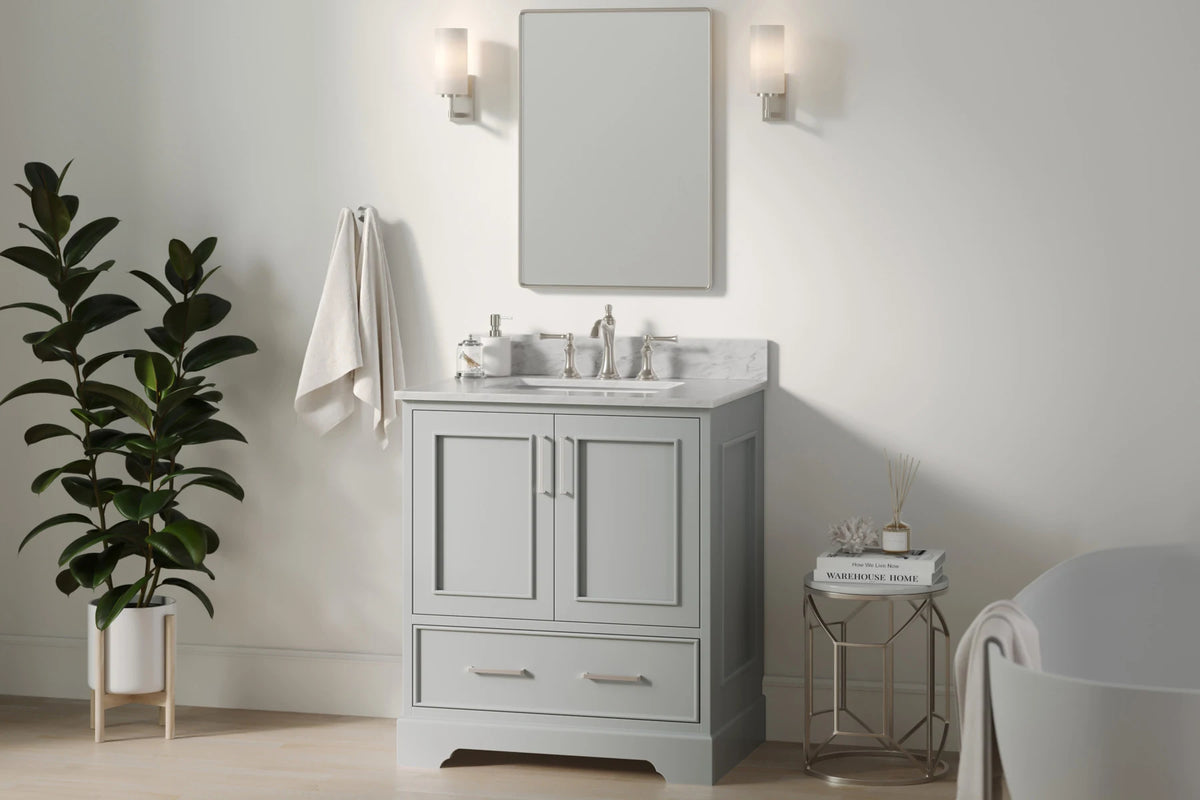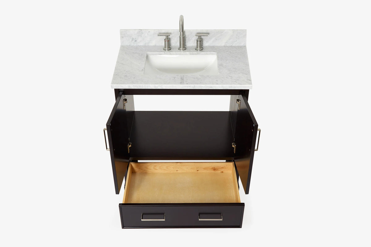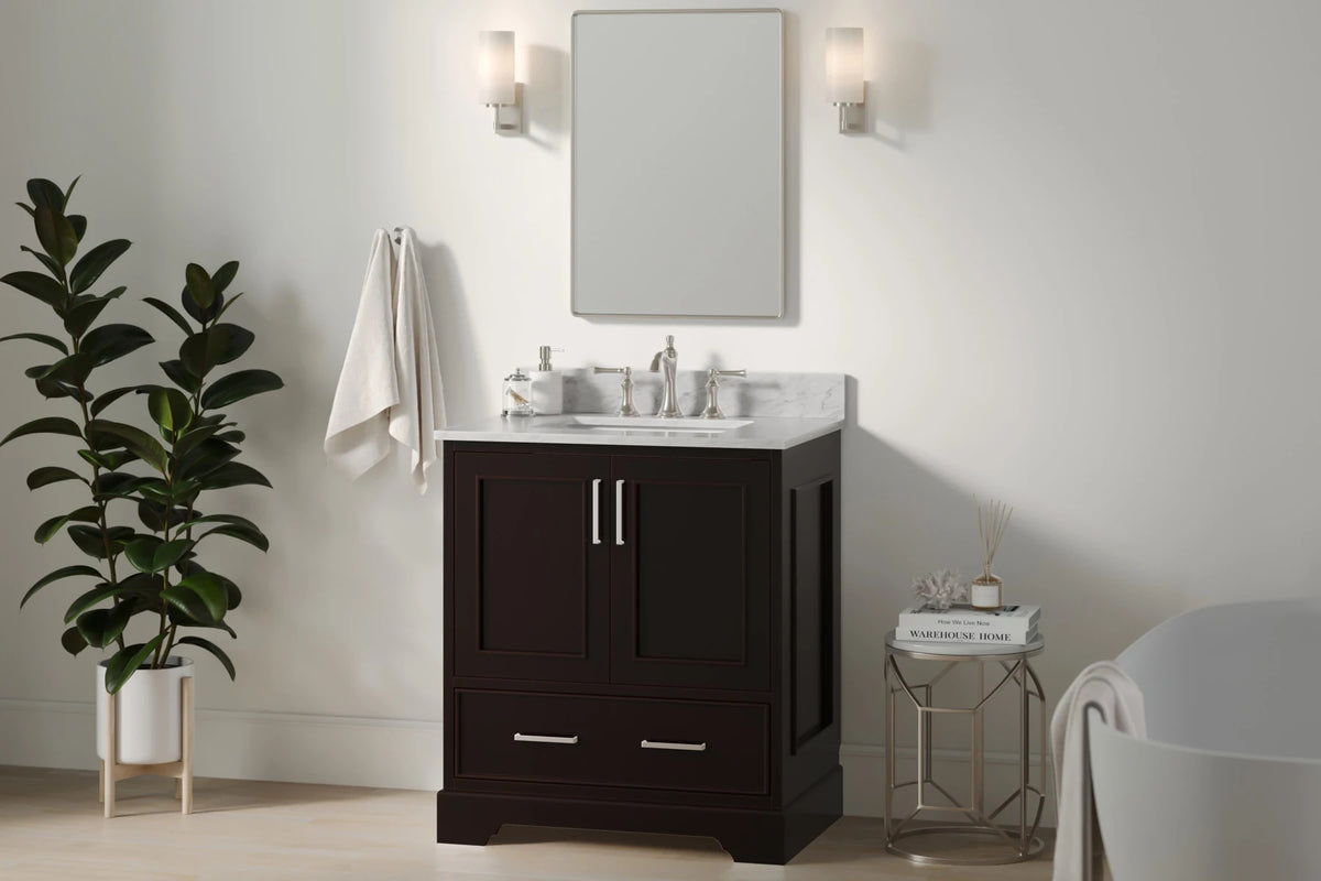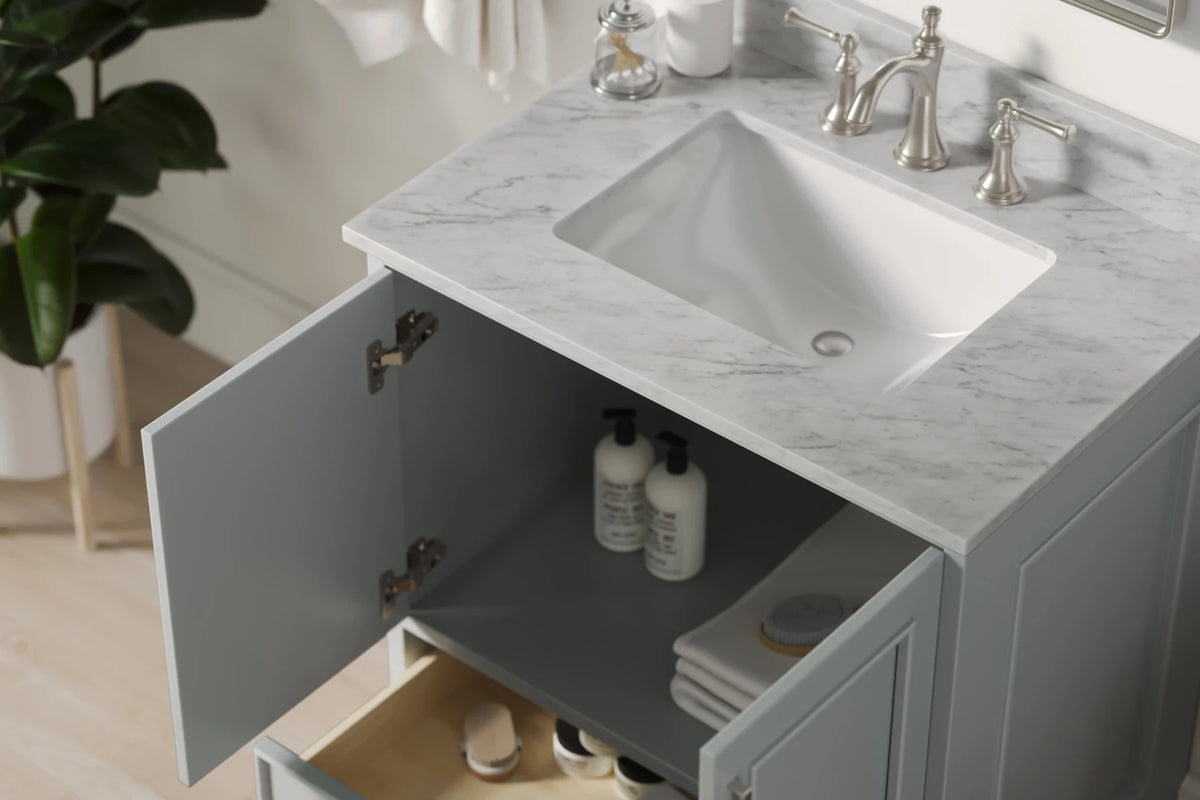 Stafford collection from ARIEL Bath will make bathroom look glamorous. Premium countertop with 4" backsplash , solid wood cabinets finished with quality details such as soft-close peace of mind, dovetail construction, brush nickle/ satin brass hardware and full extension glides. This Ariel bathroom vanity will ensure that your bathroom remains clutter-free. Various options for countertop, hardware, and cabinet color allow you to custom tailor your own bathroom remodeling