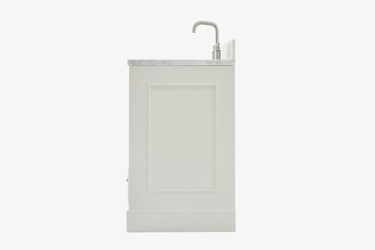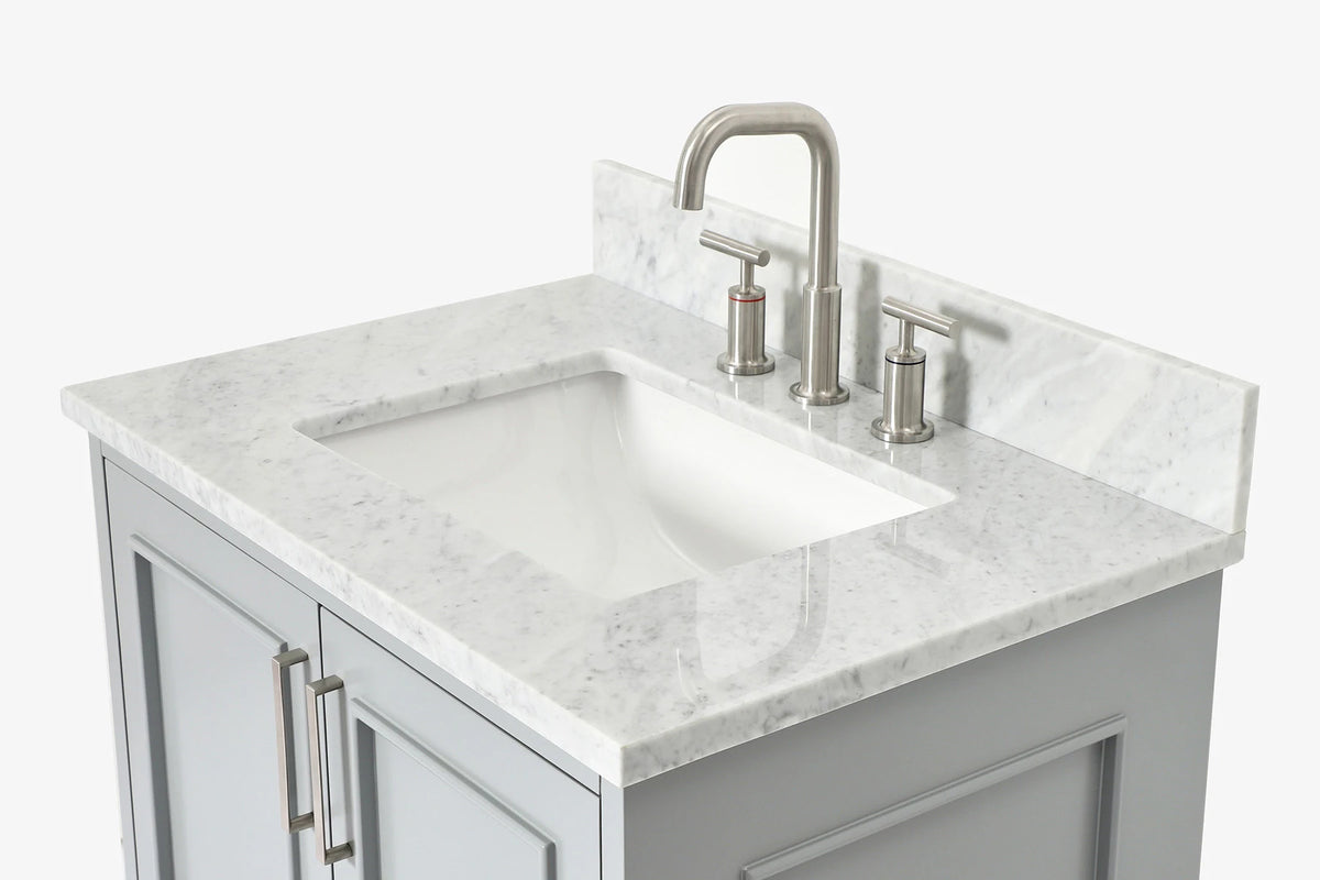 Italian Carrara White Marble countertop with 0.75" thick miter edge. 4" backsplash included