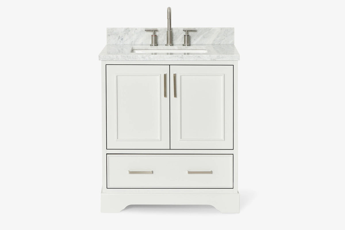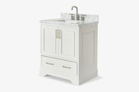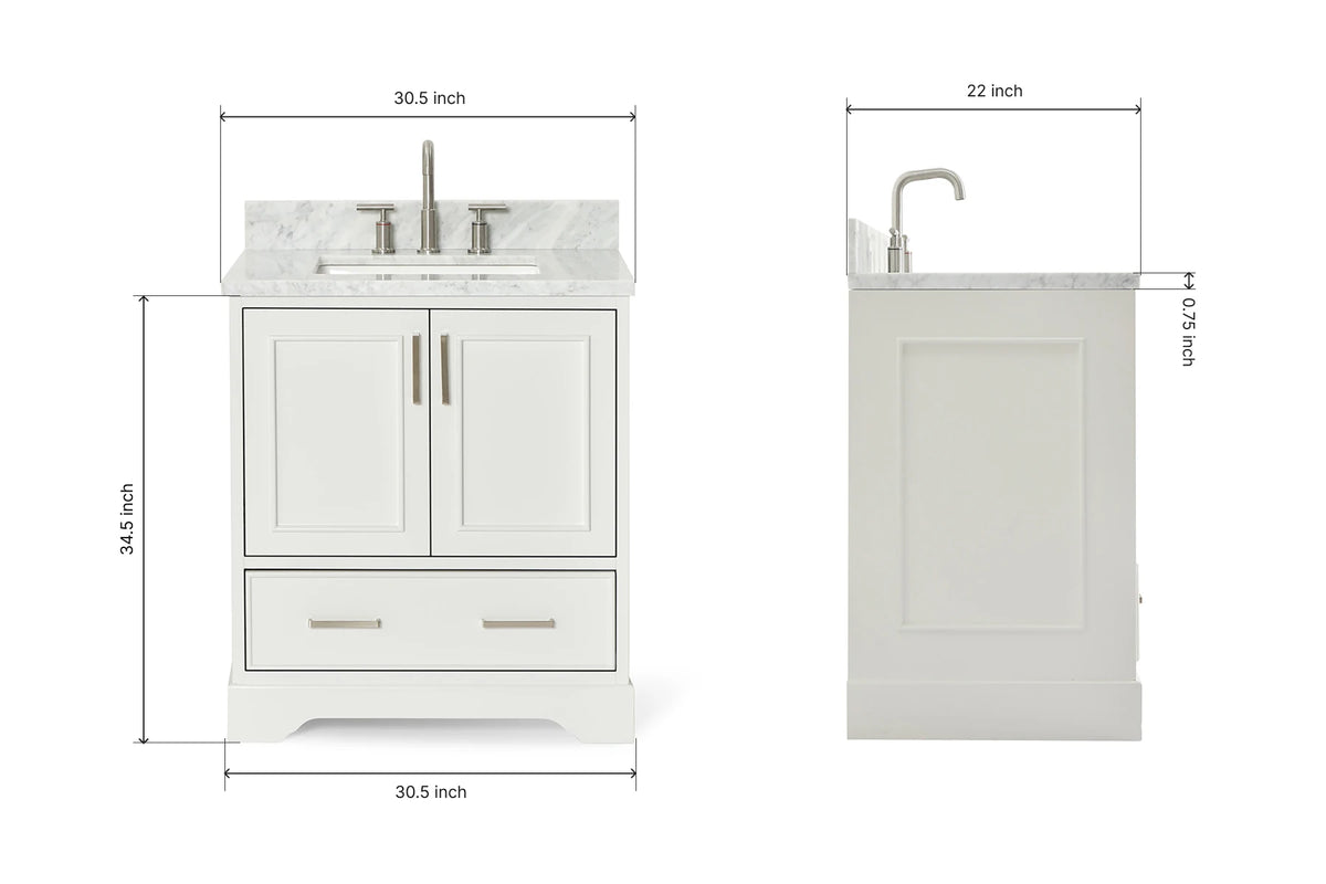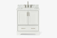 Ariel stafford 30.5 in. single rectangle sink vanity with carrara white marble countertop w/0.75" edge in white