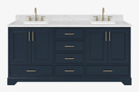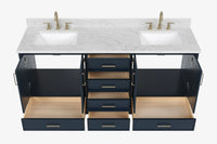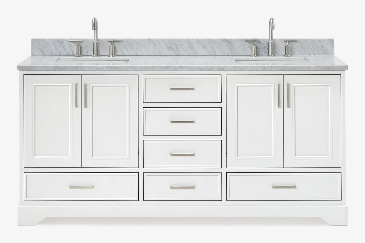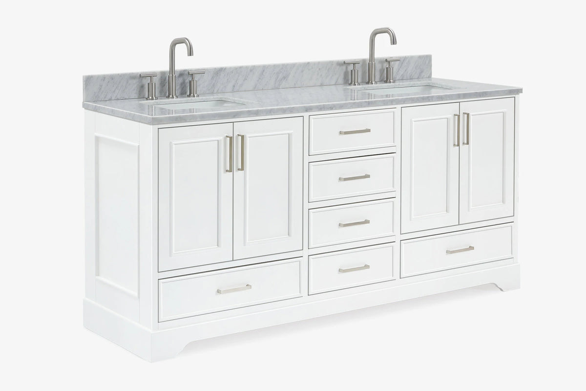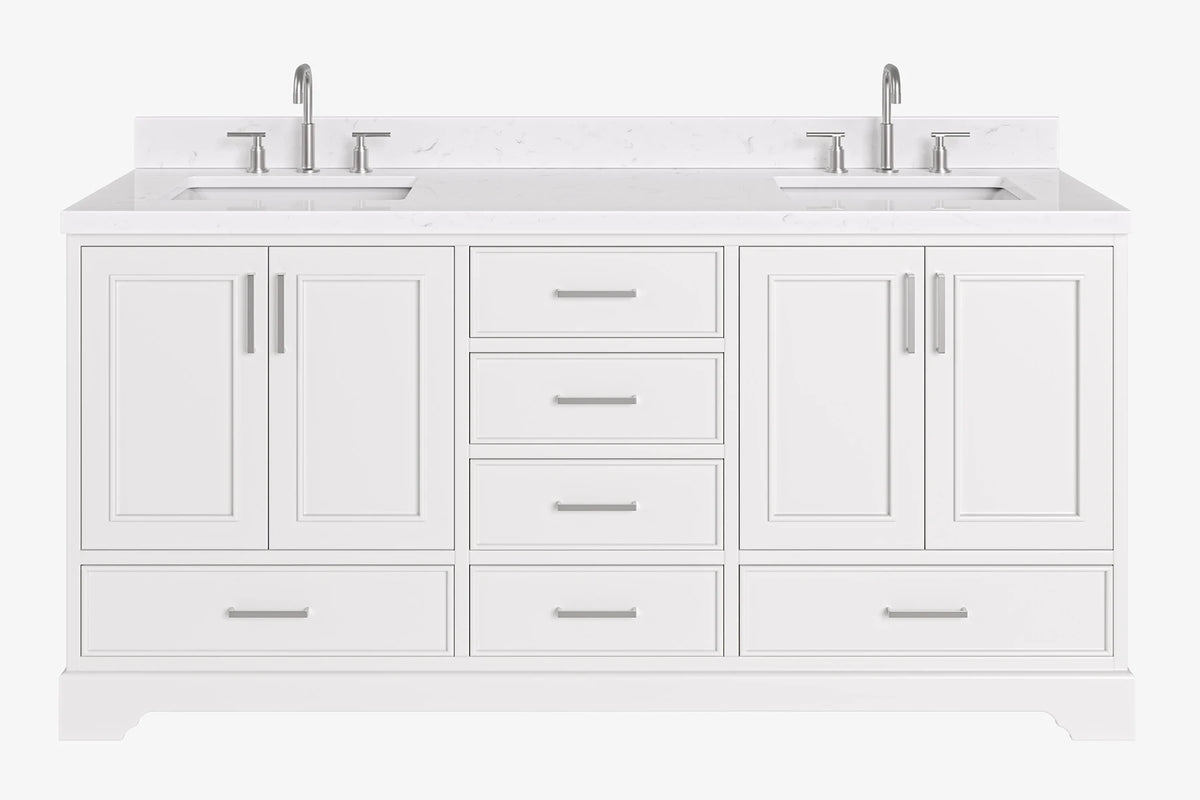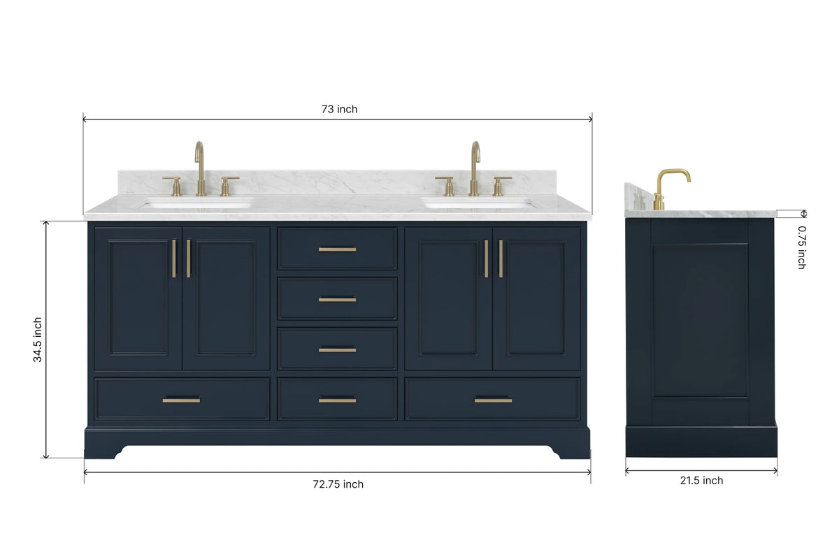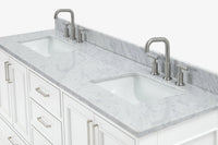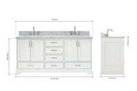 Ariel stafford 73 inch double rectangle sink vanity with carrara white marble countertop w/0.75" edge in white