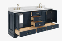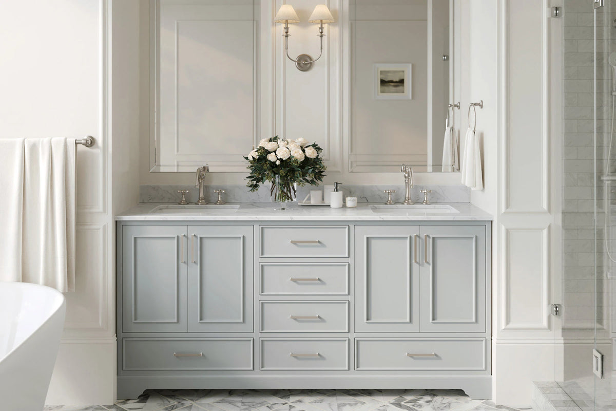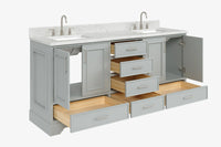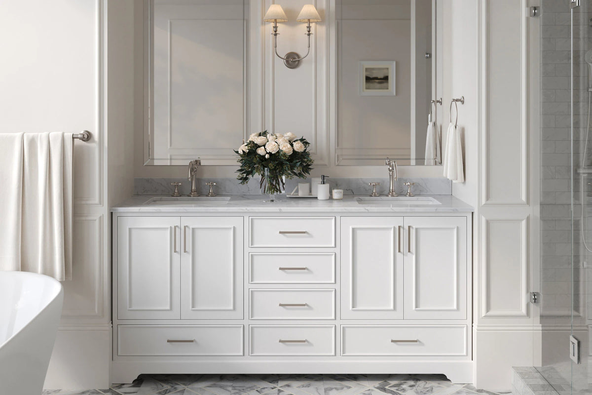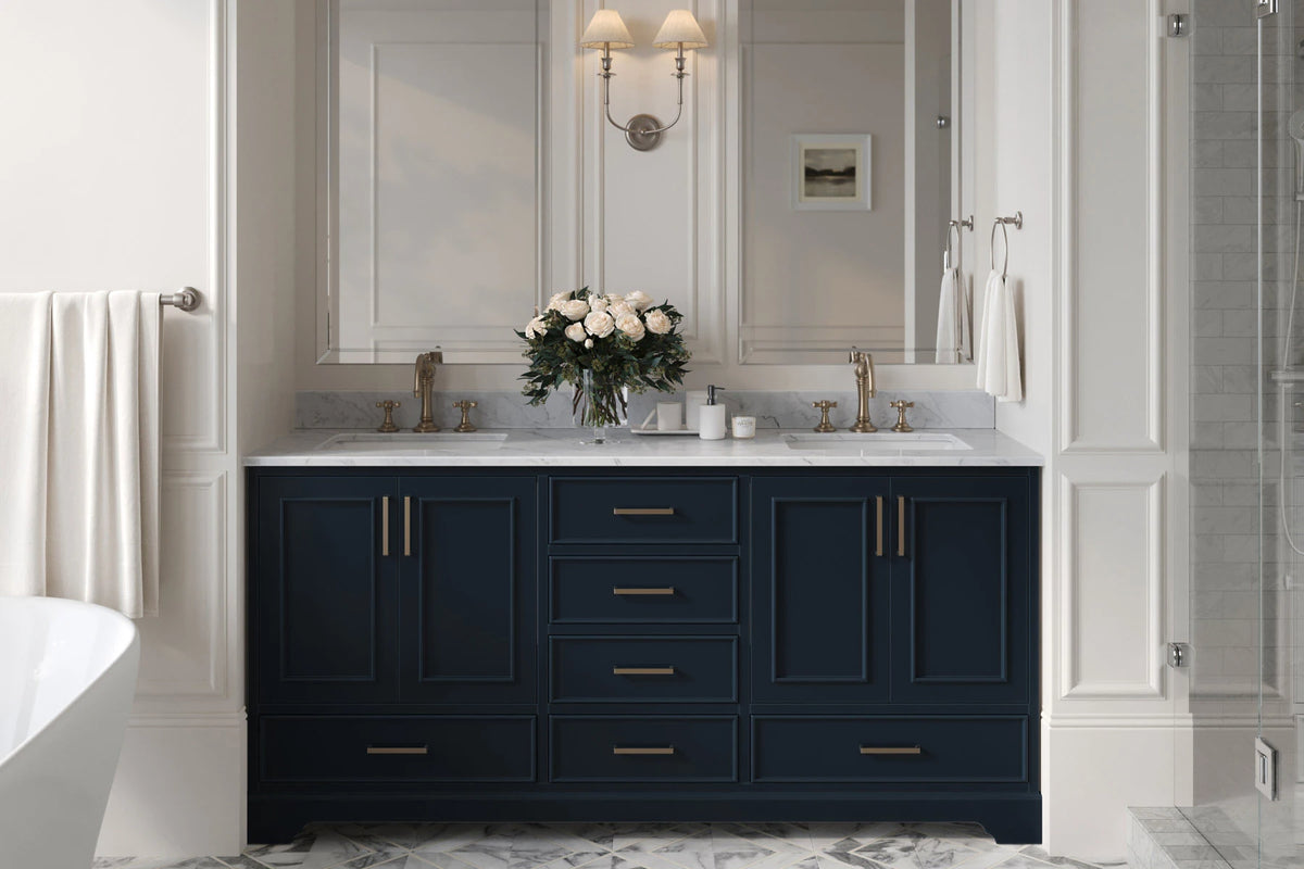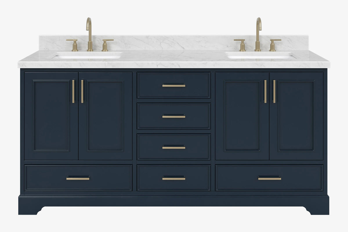 Stafford collection from ARIEL Bath will make bathroom look glamorous. Premium countertop with 4" backsplash , solid wood cabinets finished with quality details such as soft-close peace of mind, dovetail construction, brush nickle/ satin brass hardware and full extension glides. This Ariel bathroom vanity will ensure that your bathroom remains clutter-free. Various options for countertop, hardware, and cabinet color allow you to custom tailor your own bathroom remodeling