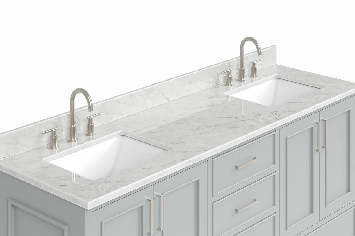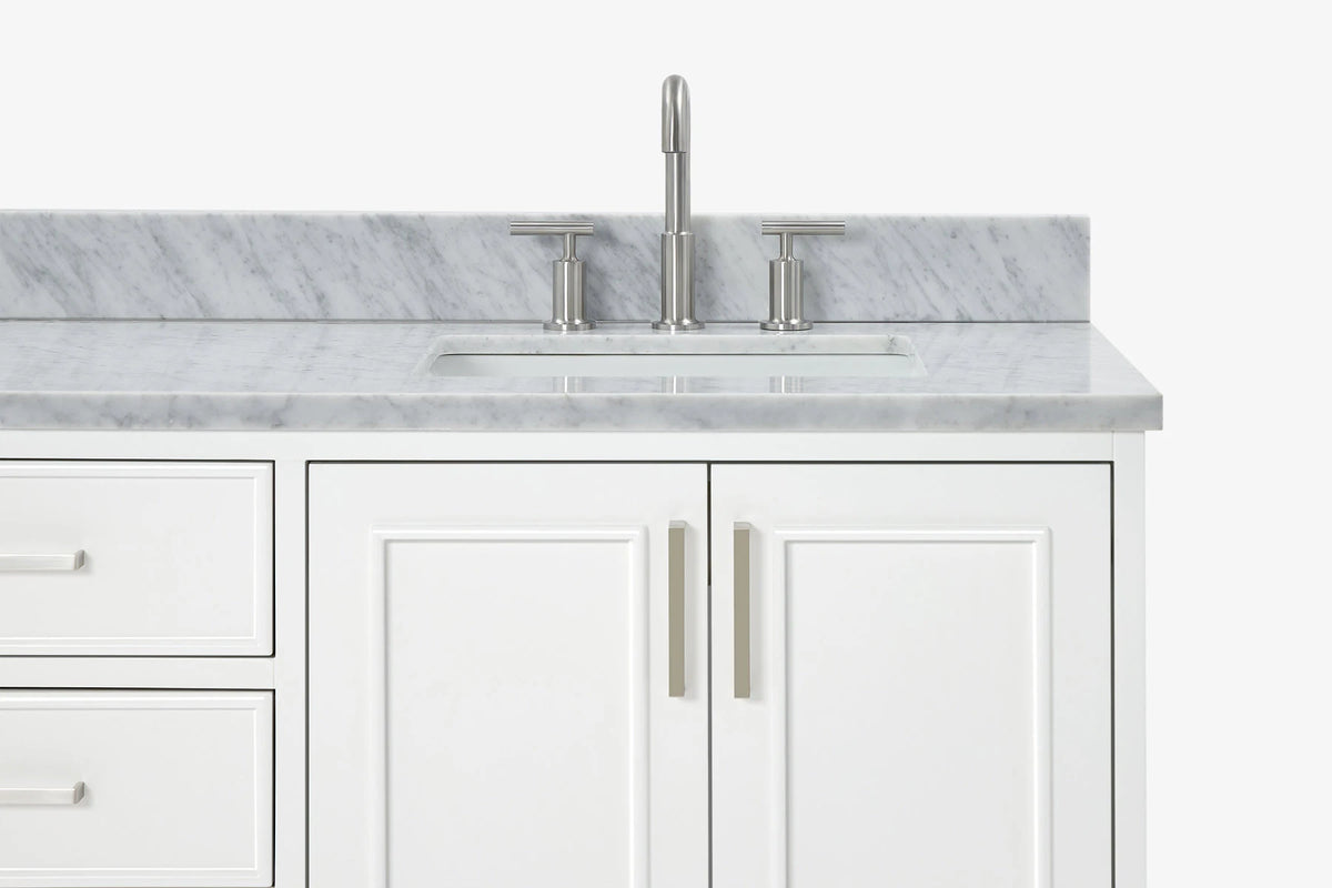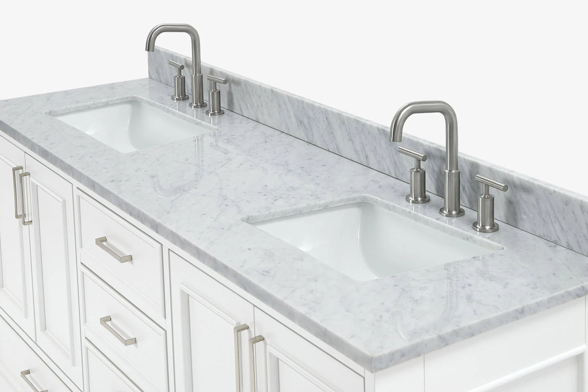 • Italian Carrara White Marble countertop with 0.75" thick miter edge. 4" backsplash included