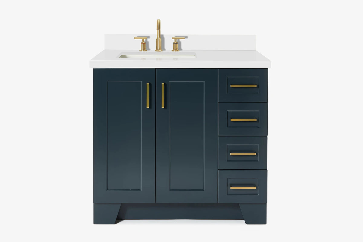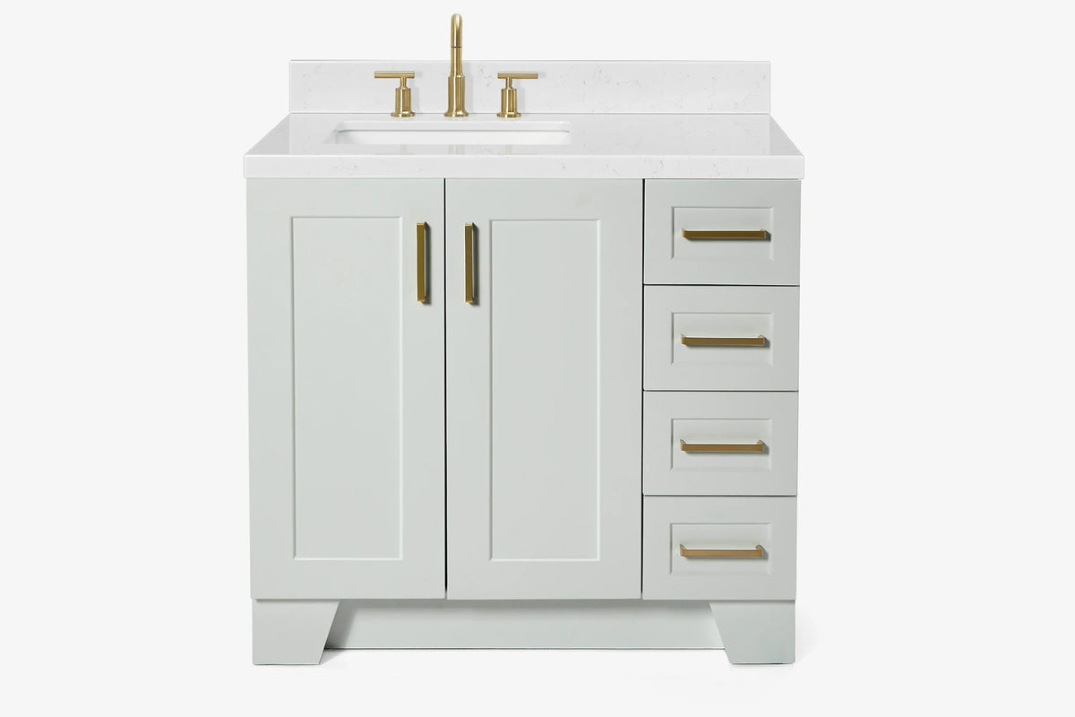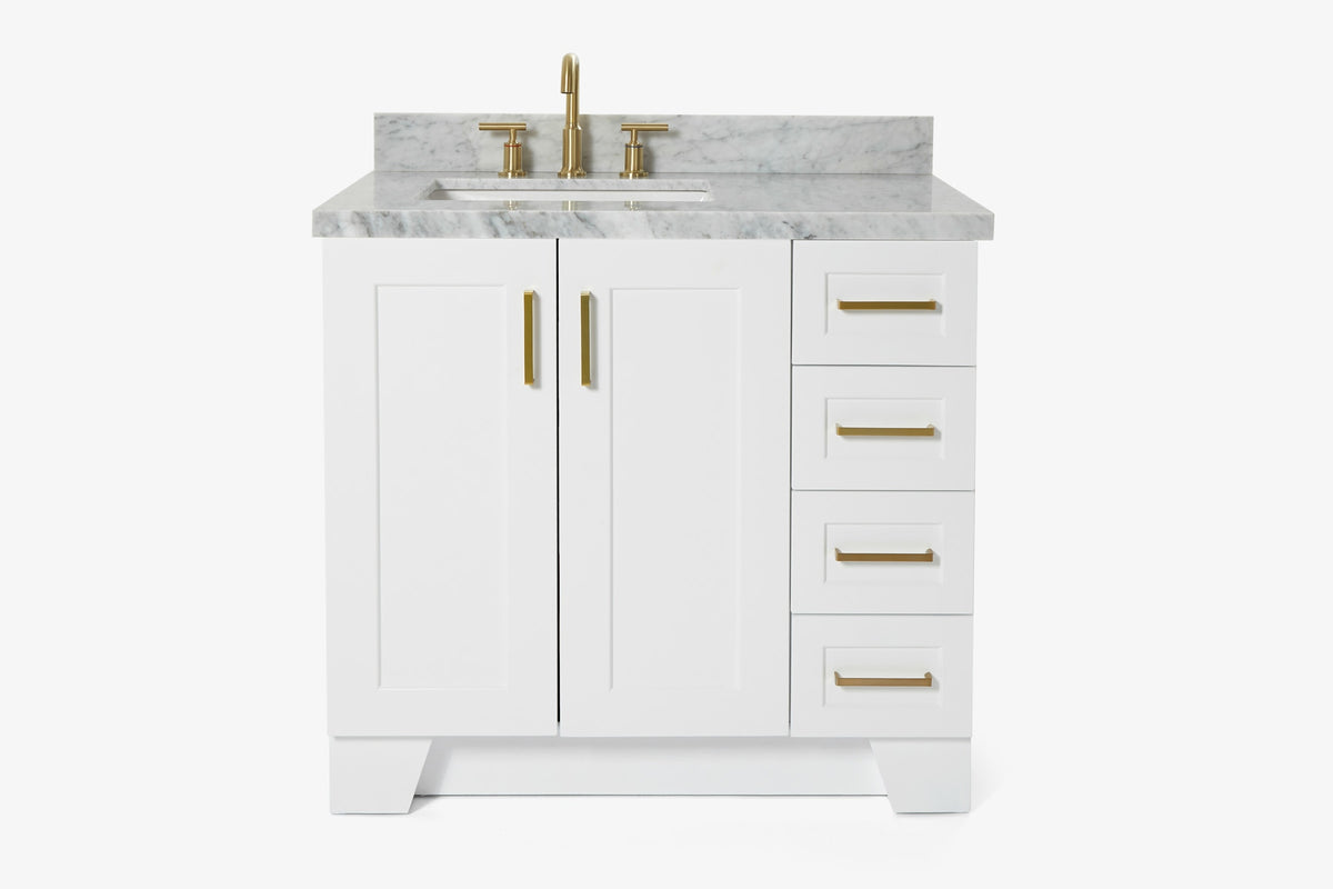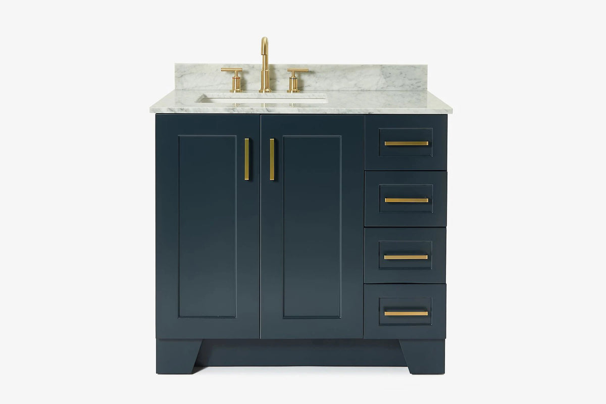Ariel taylor (36"& 37") left offset single rectangle sink vanity with marble (0.75"& 1.5") countertop.