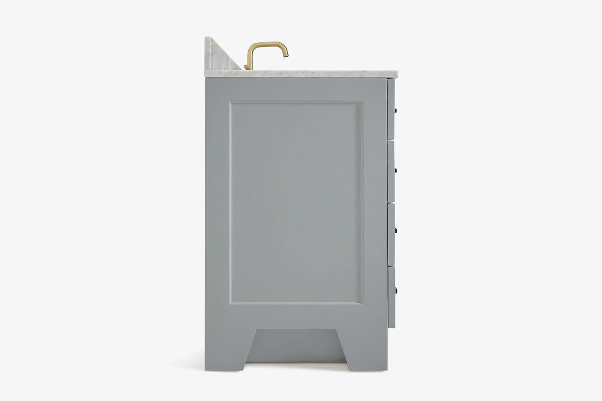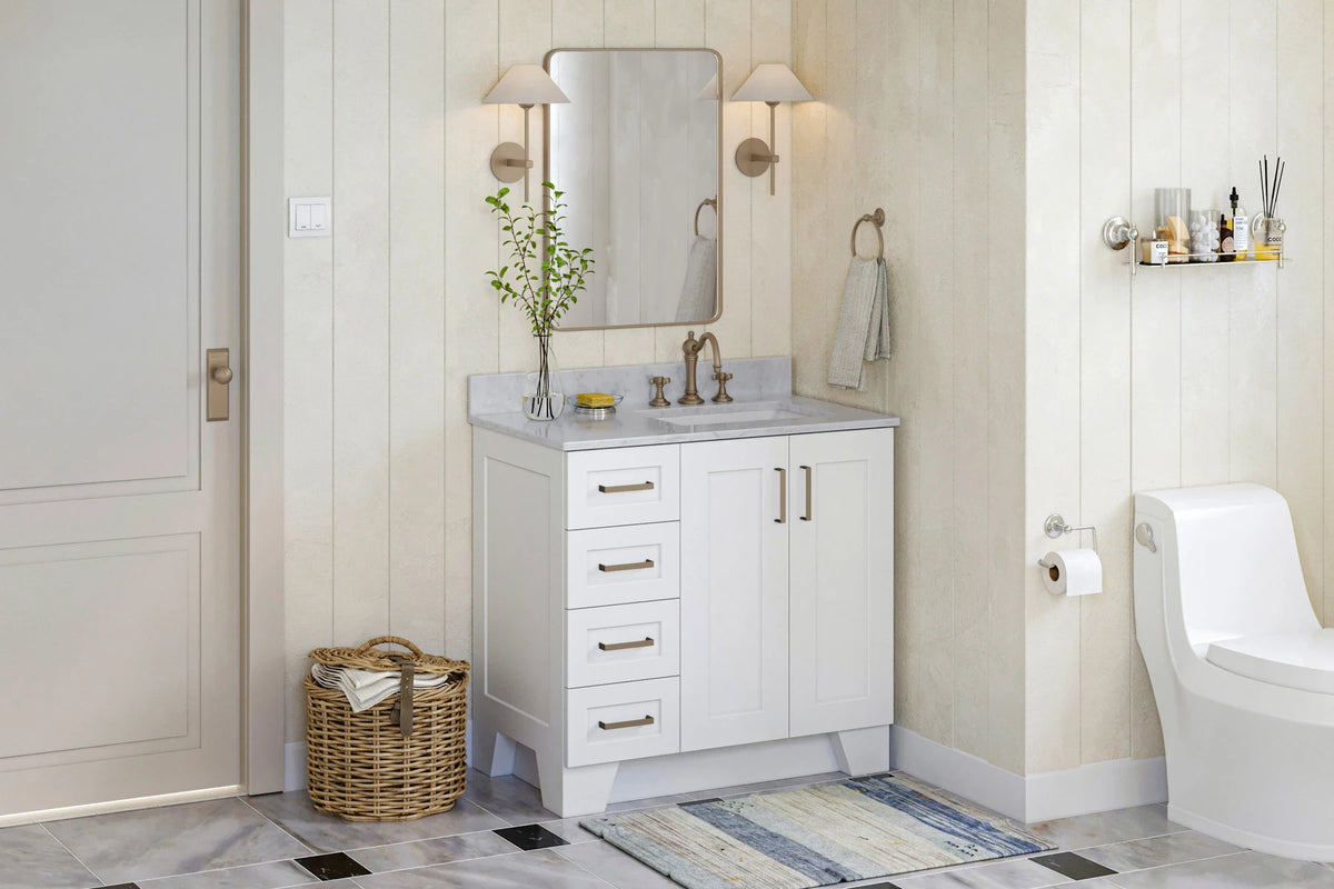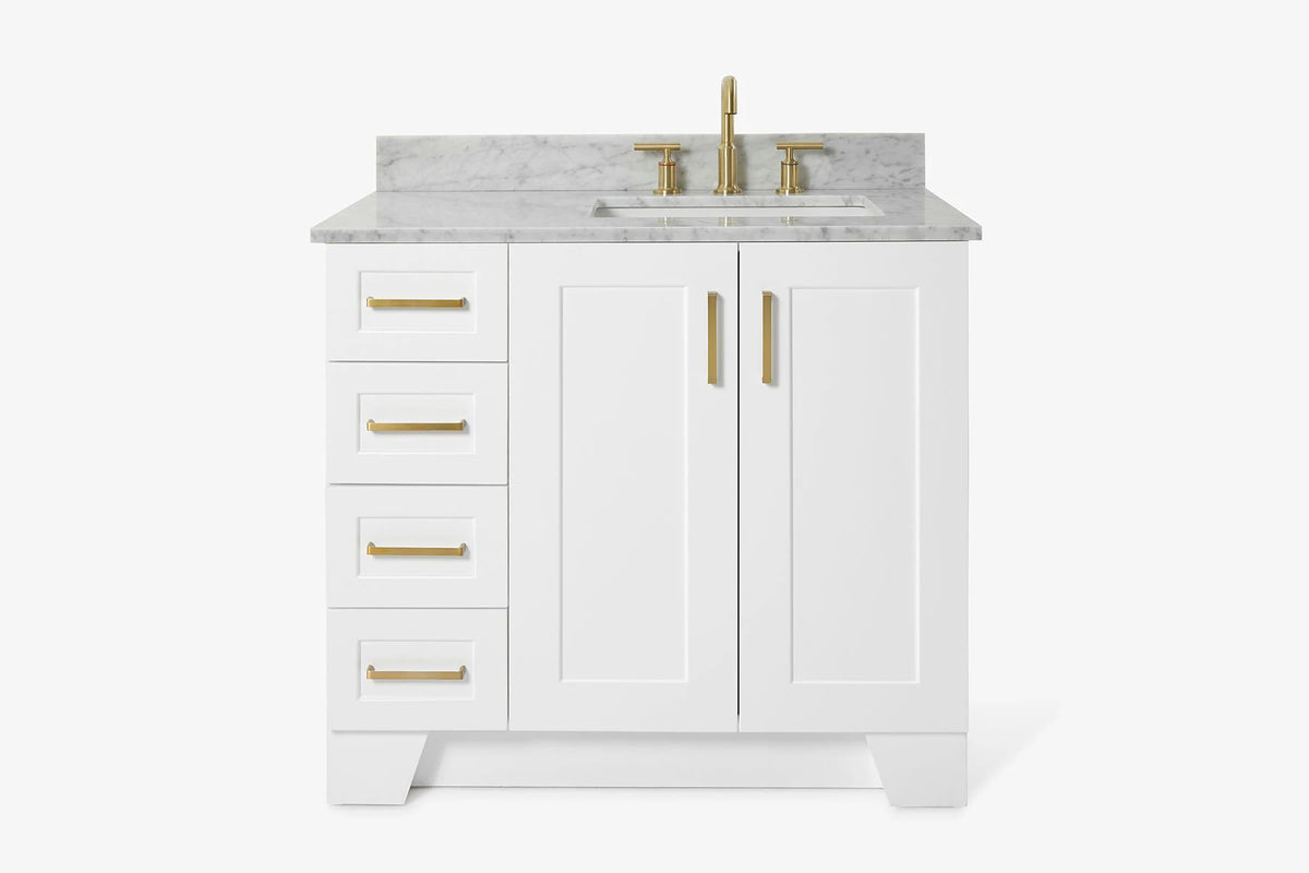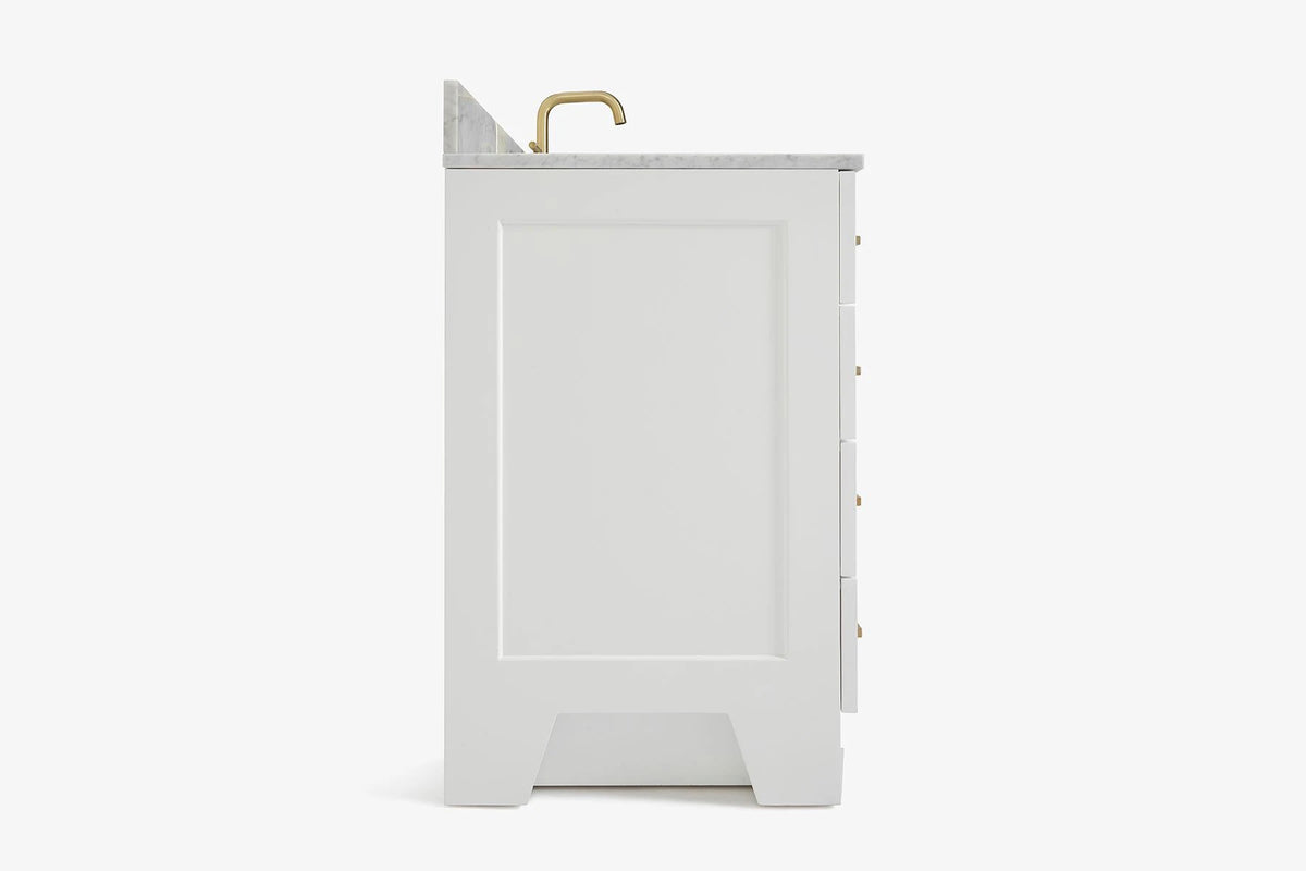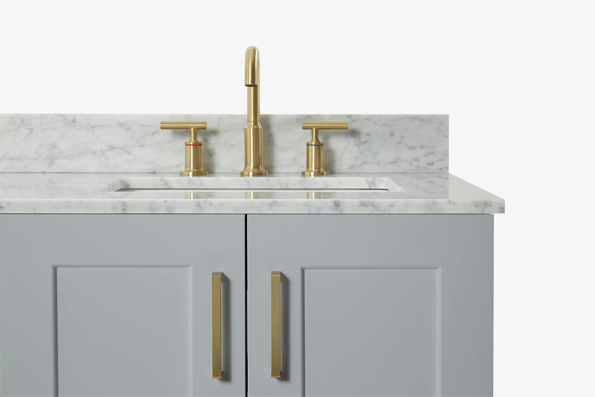 Taylor collection from ARIEL Bath is the perfect addition of style and flair for any bathroom while still remaining a truly timeless design. Featuring a hidden pull-out drawer behind each pair of cabinet doors, this Taylor bathroom vanity is truly the ideal combination of function and form. Premium Italian Carrara marble and white quartz matching 4in backsplash, soft-close dovetailed construction and hidden self-leveling feet add to the Taylor's appeal which is your perfect match for your own bathroom remodeling.