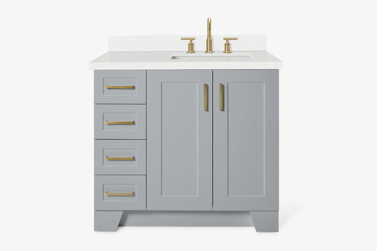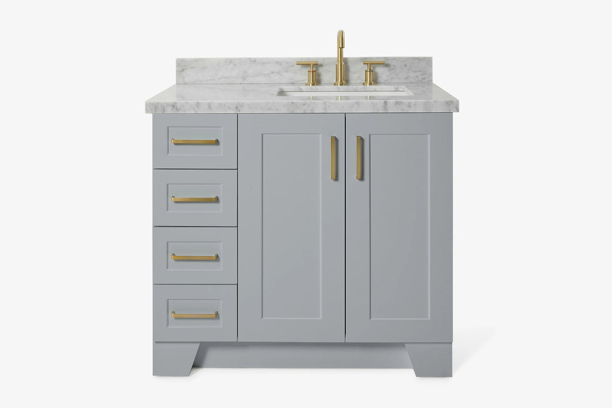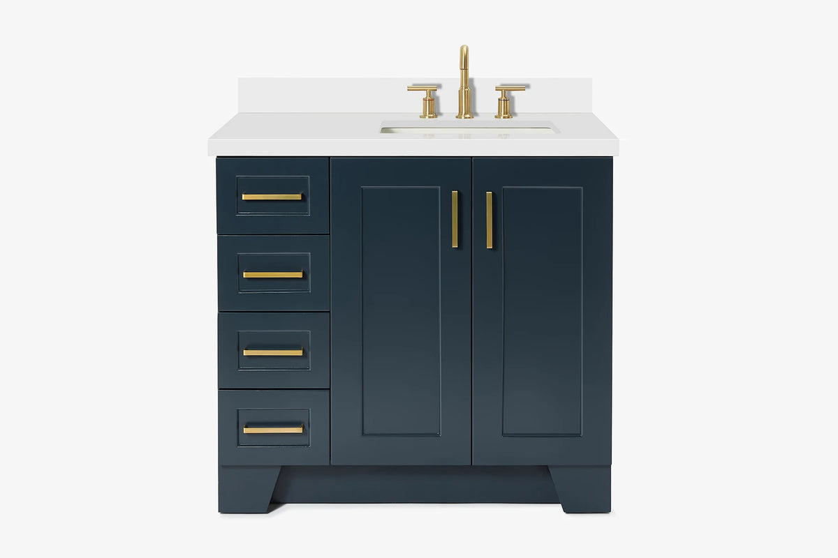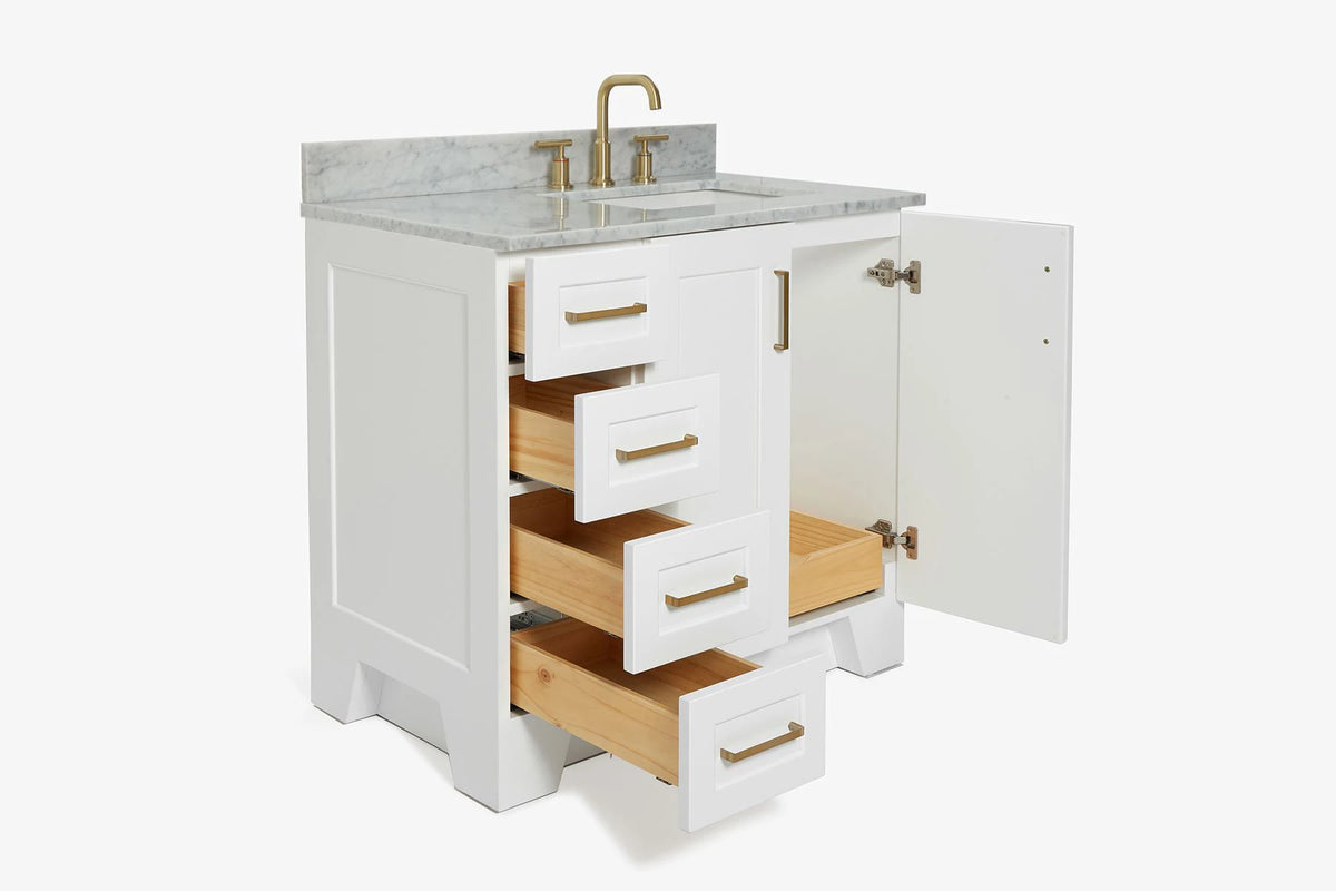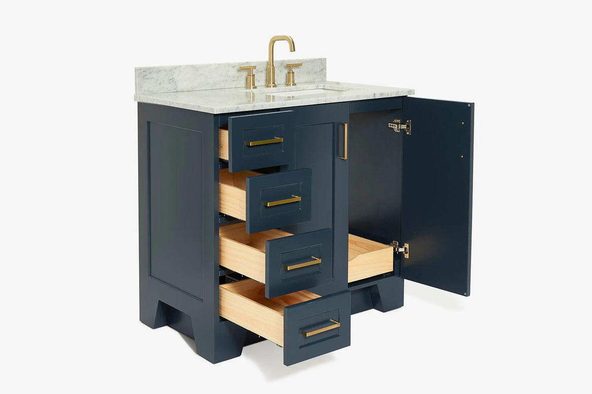 Taylor collection from ARIEL Bath is the perfect addition of style and flair for any bathroom while still remaining a truly timeless design. Featuring a hidden pull-out drawer behind each pair of cabinet doors, this Taylor bathroom vanity is truly the ideal combination of function and form. Premium Italian Carrara marble and white quartz matching 4in backsplash, soft-close dovetailed construction and hidden self-leveling feet add to the Taylor's appeal which is your perfect match for your own bathroom remodeling.