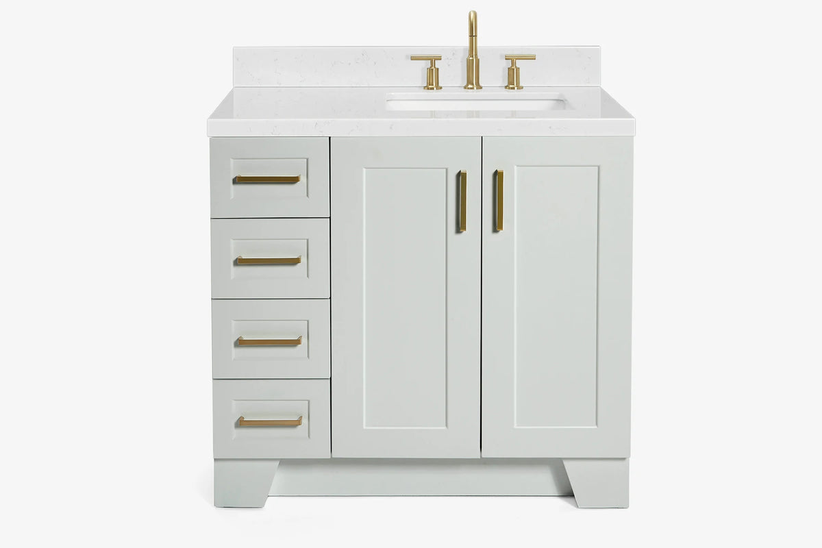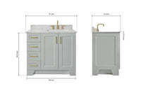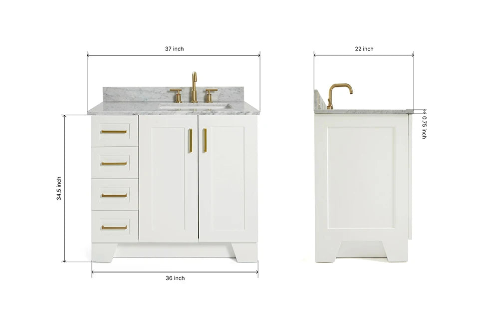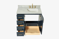 Ariel taylor (36"& 37") right offset single rectangle sink vanity with marble (0.75" & 1.5")countertop.