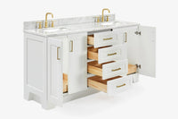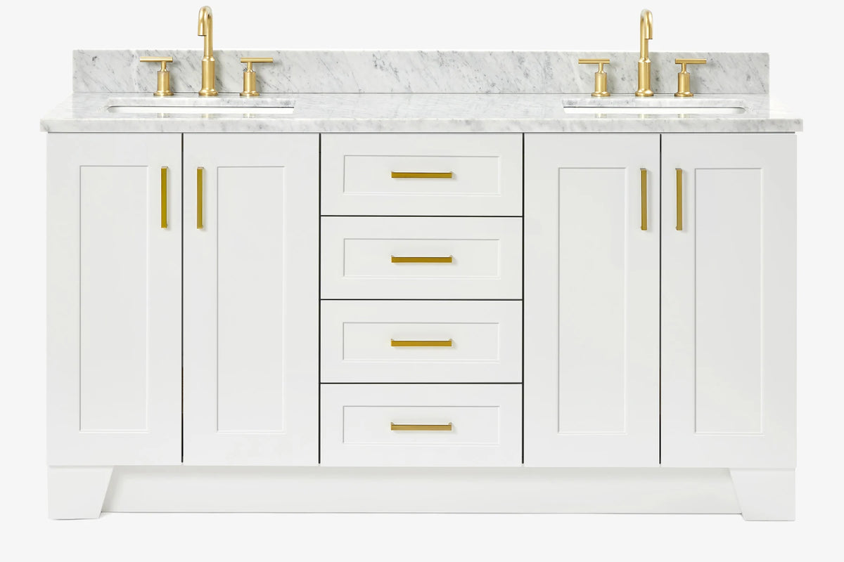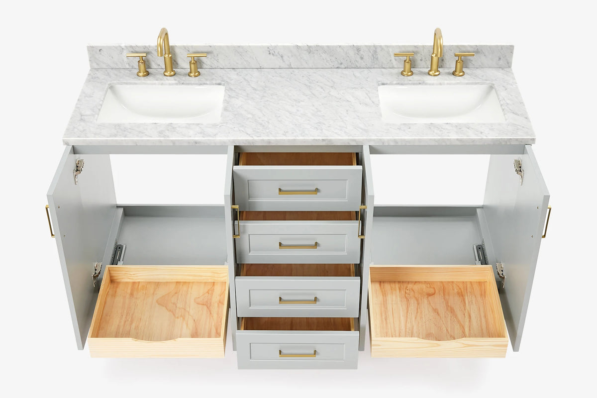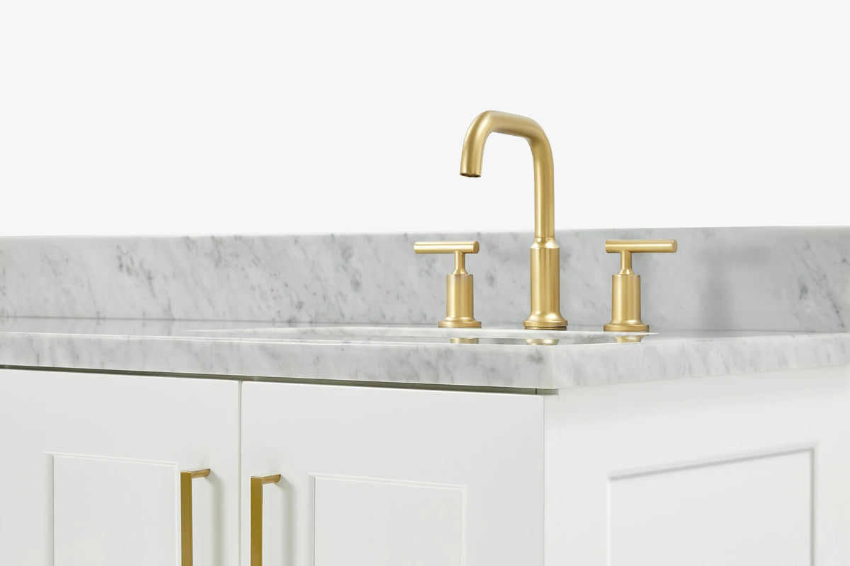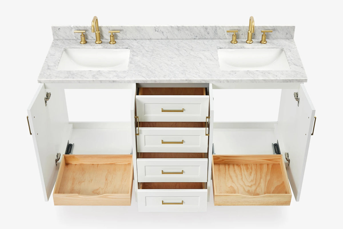Taylor collection from ARIEL Bath is the perfect addition of style and flair for any bathroom while still remaining a truly timeless design. Featuring a hidden pull-out drawer behind each pair of cabinet doors, this Taylor bathroom vanity is truly the ideal combination of function and form. Premium Italian Carrara marble and white quartz matching 4in backsplash, soft-close dovetailed construction and hidden self-leveling feet add to the Taylor's appeal which is your perfect match for your own bathroom remodeling.