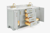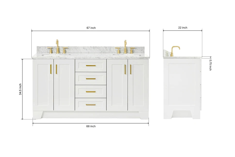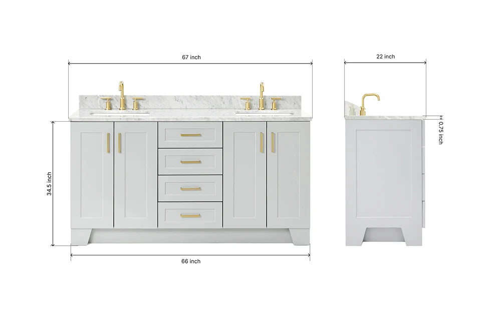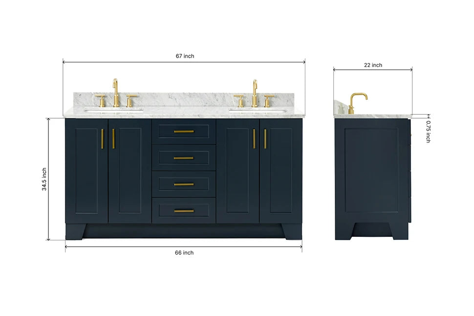 Ariel taylor (66"& 67") double rectangle sink vanity with marble countertop (0.75"& 1.5") edge.