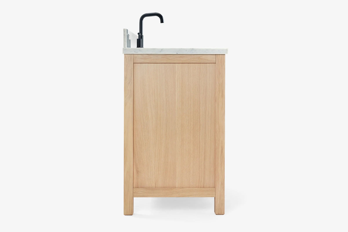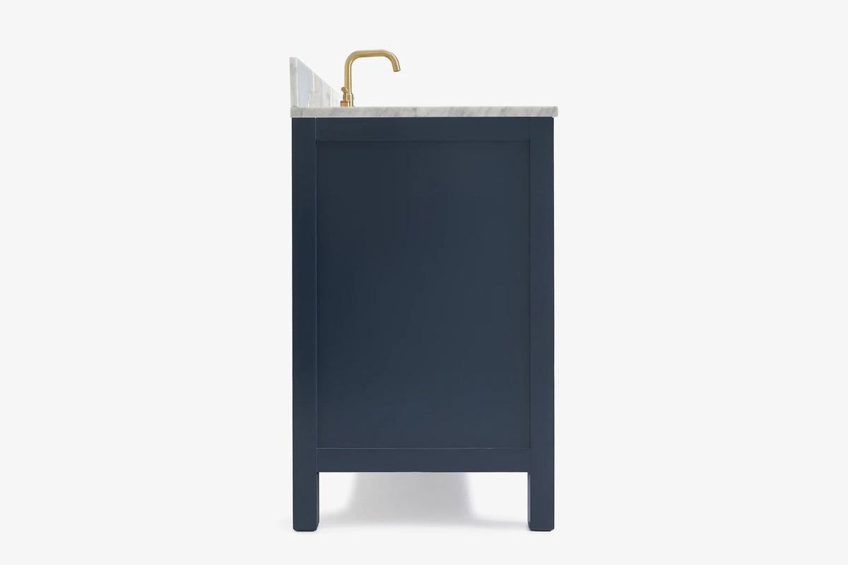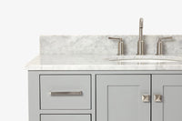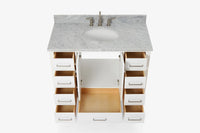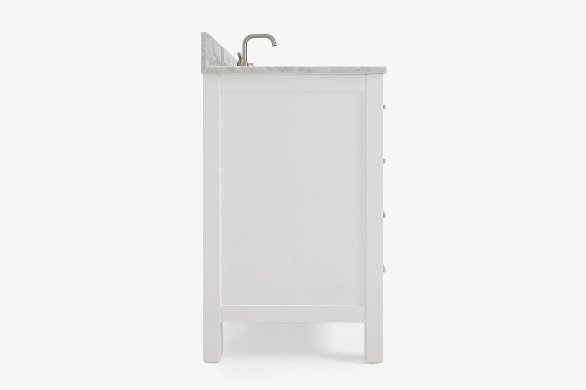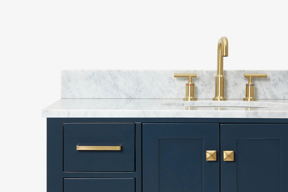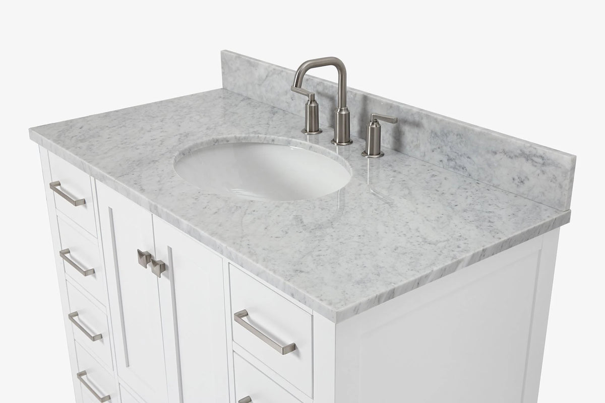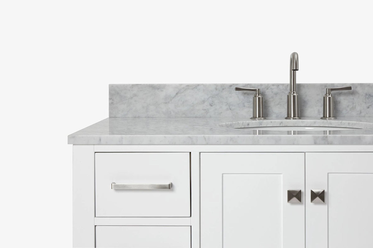- Italian Carrara White Marble countertop with 0.75" thick miter edge. 4" backsplash included