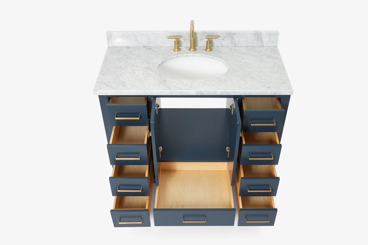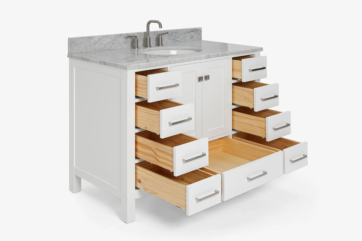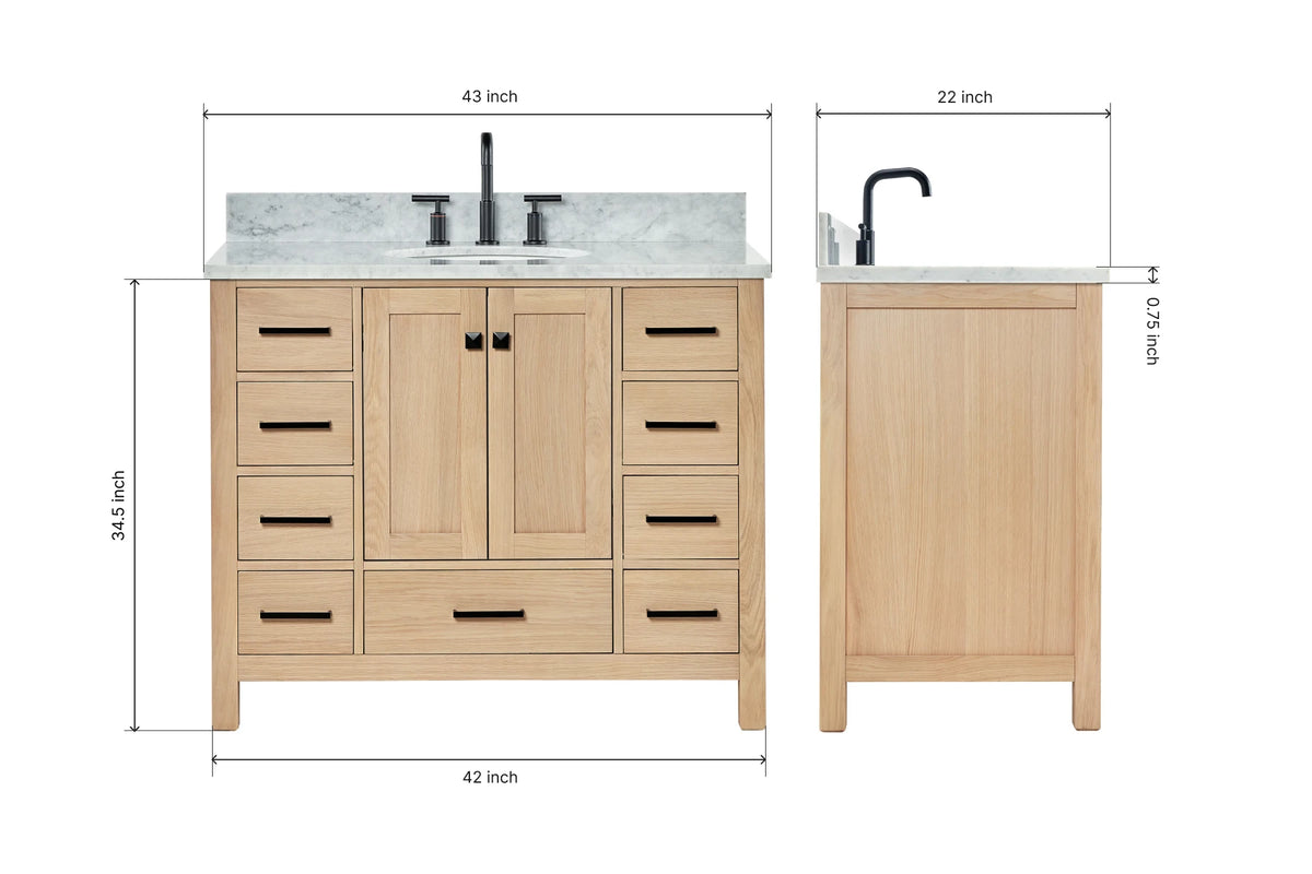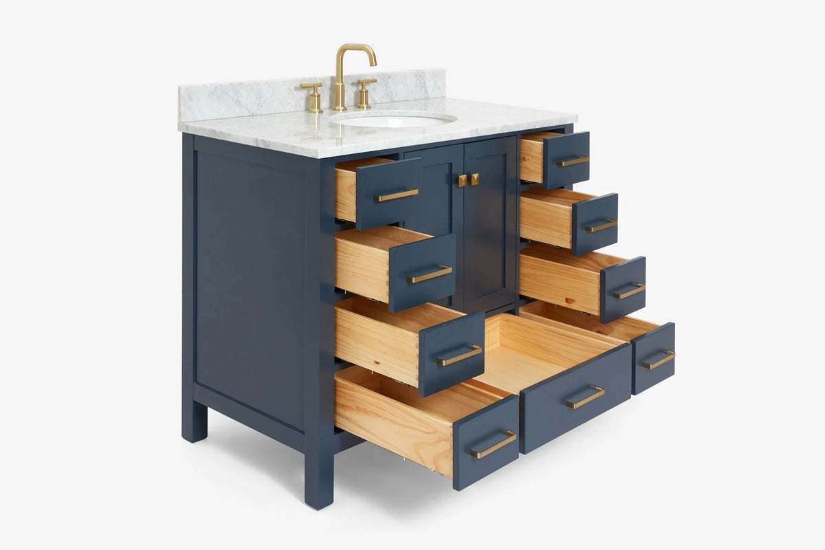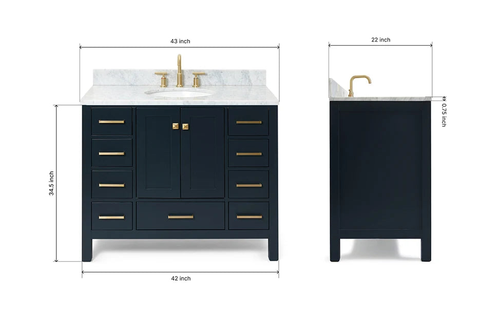 Ariel cambridge(42" & 43") single oval sink vanity with marble (0.75",1.5" & 2") in countertop
