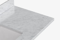 • Pure White Quartz countertop with 1.5" thick miter edge. 4" backsplash included