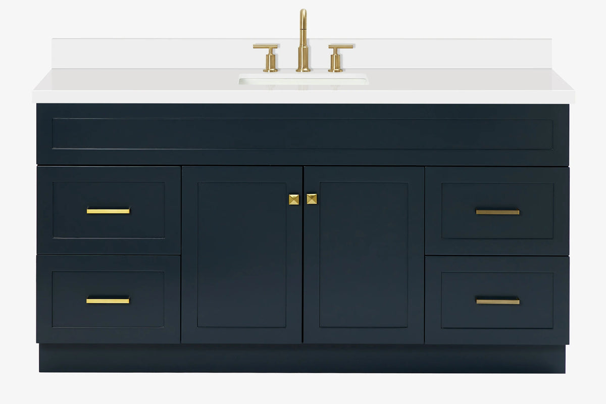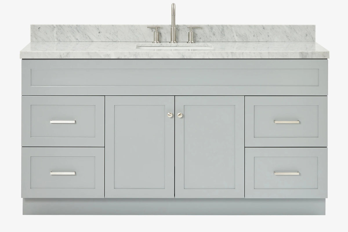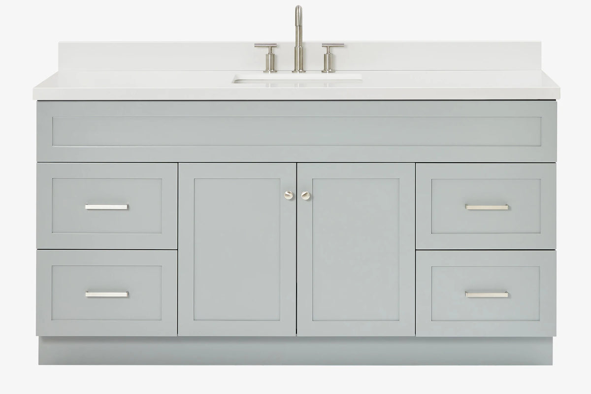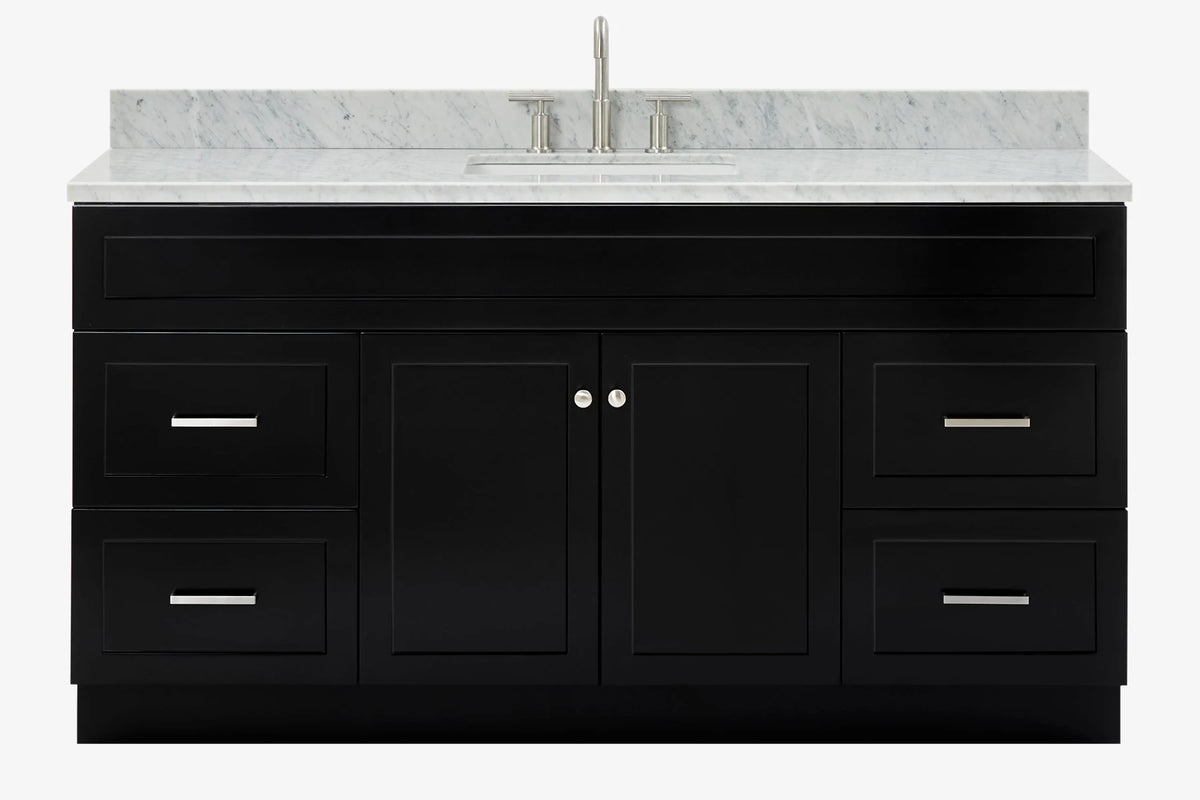 Give your bathroom décor a makeover with a modern bathroom vanity cabinet from ARIEL Bath. The Hamlet series offers solid wood cabinets with brushed nickel finish hardware on the drawers and cabinet doors. These vanity cabinets will add an elegant aesthetic to any bathroom remodel.