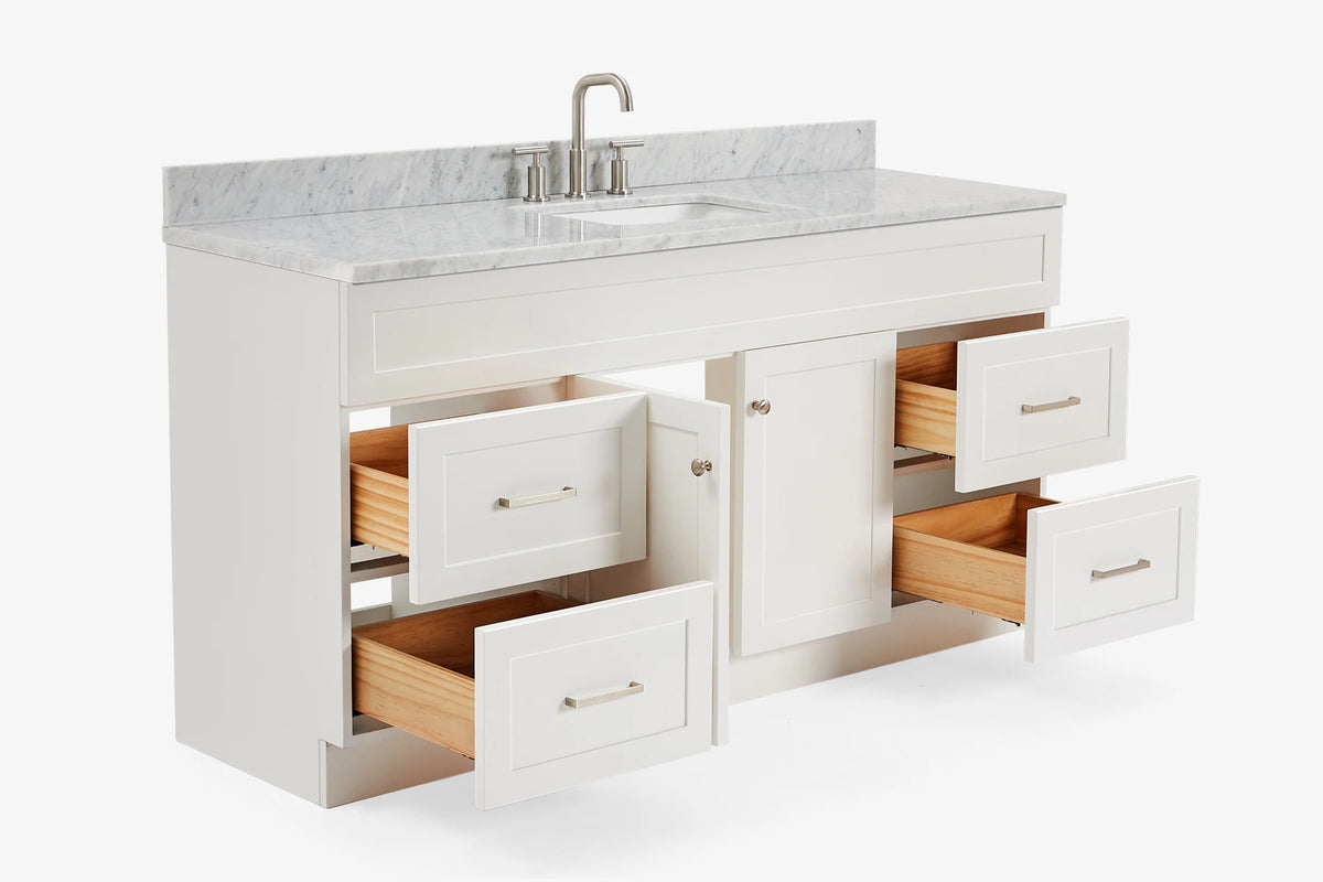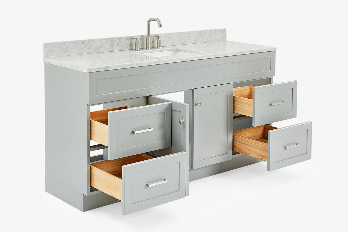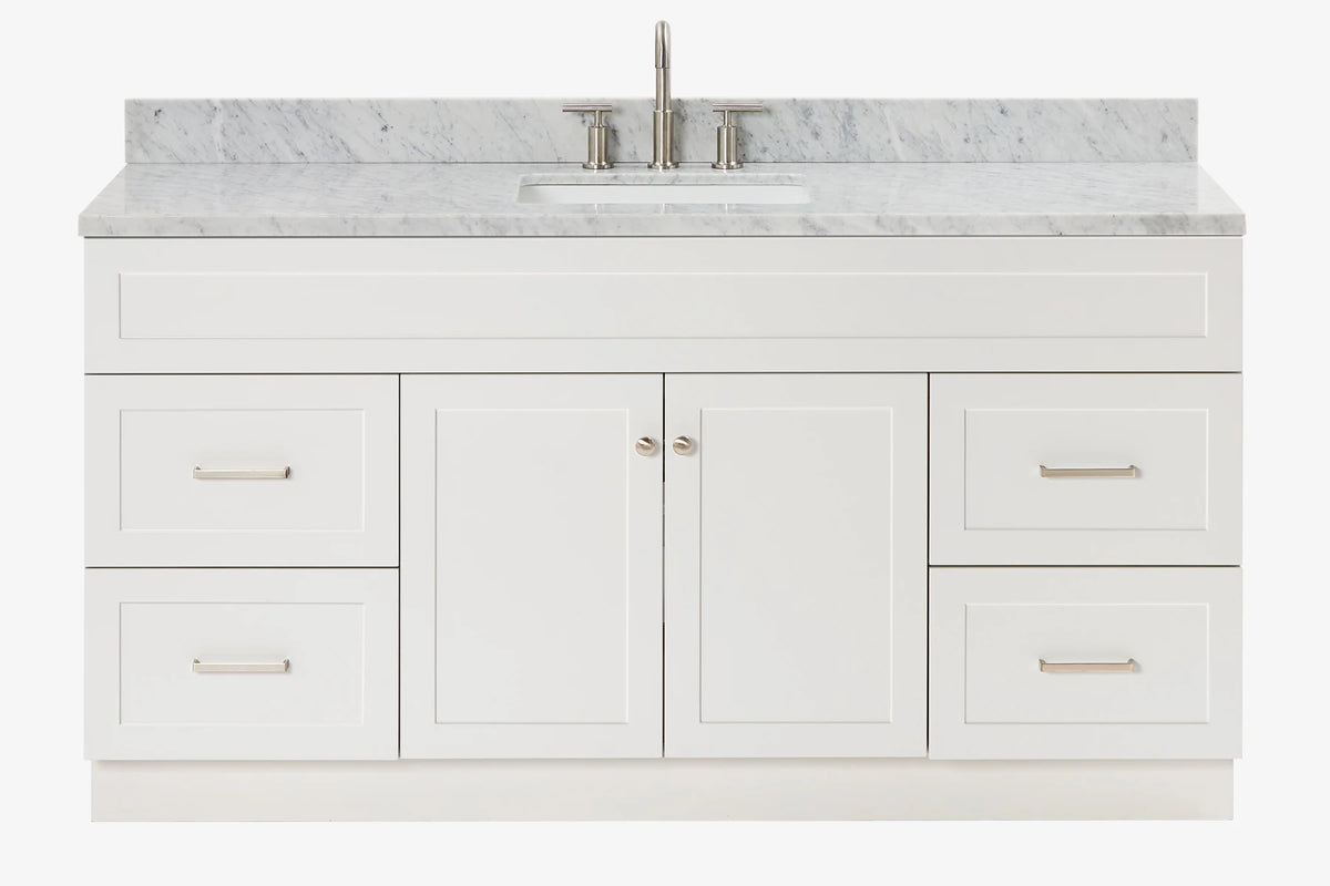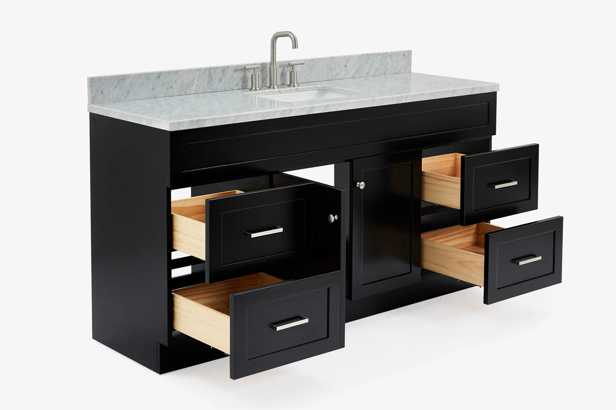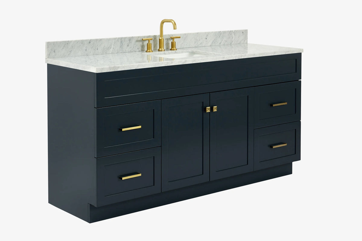 Give your bathroom décor a makeover with a modern bathroom vanity cabinet from ARIEL Bath. The Hamlet series offers solid wood cabinets with brushed nickel finish hardware on the drawers and cabinet doors. These vanity cabinets will add an elegant aesthetic to any bathroom remodel.