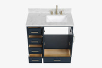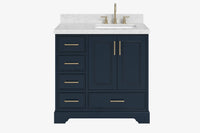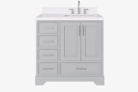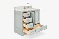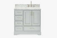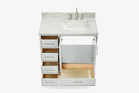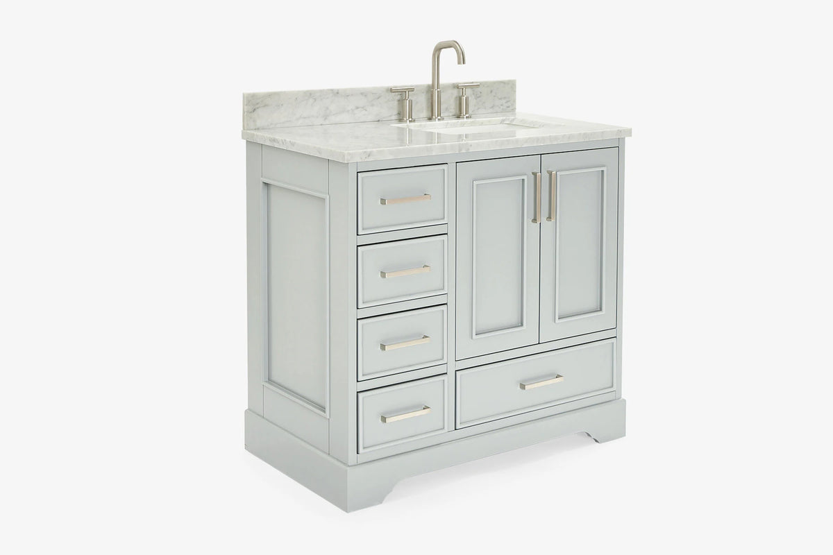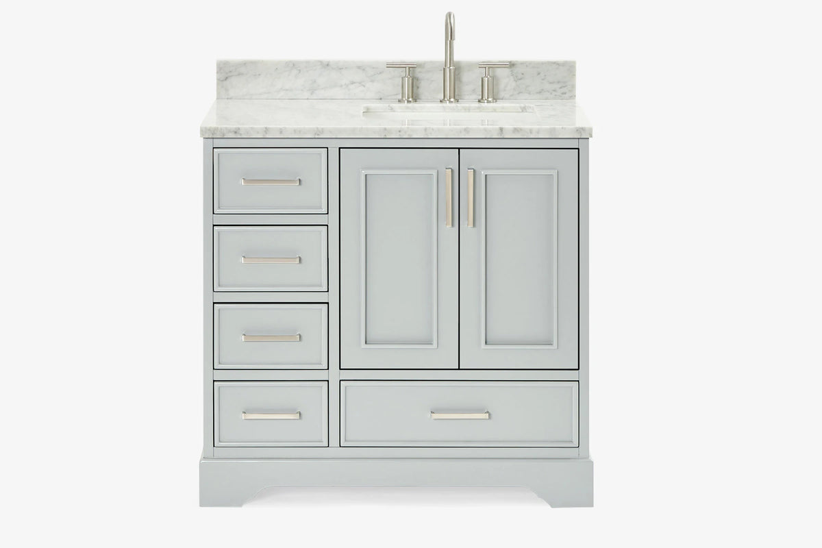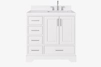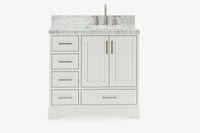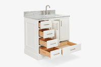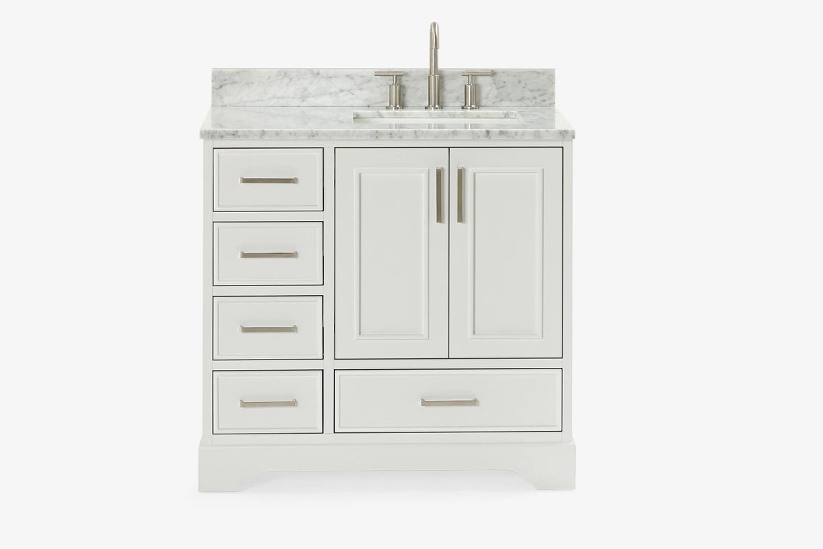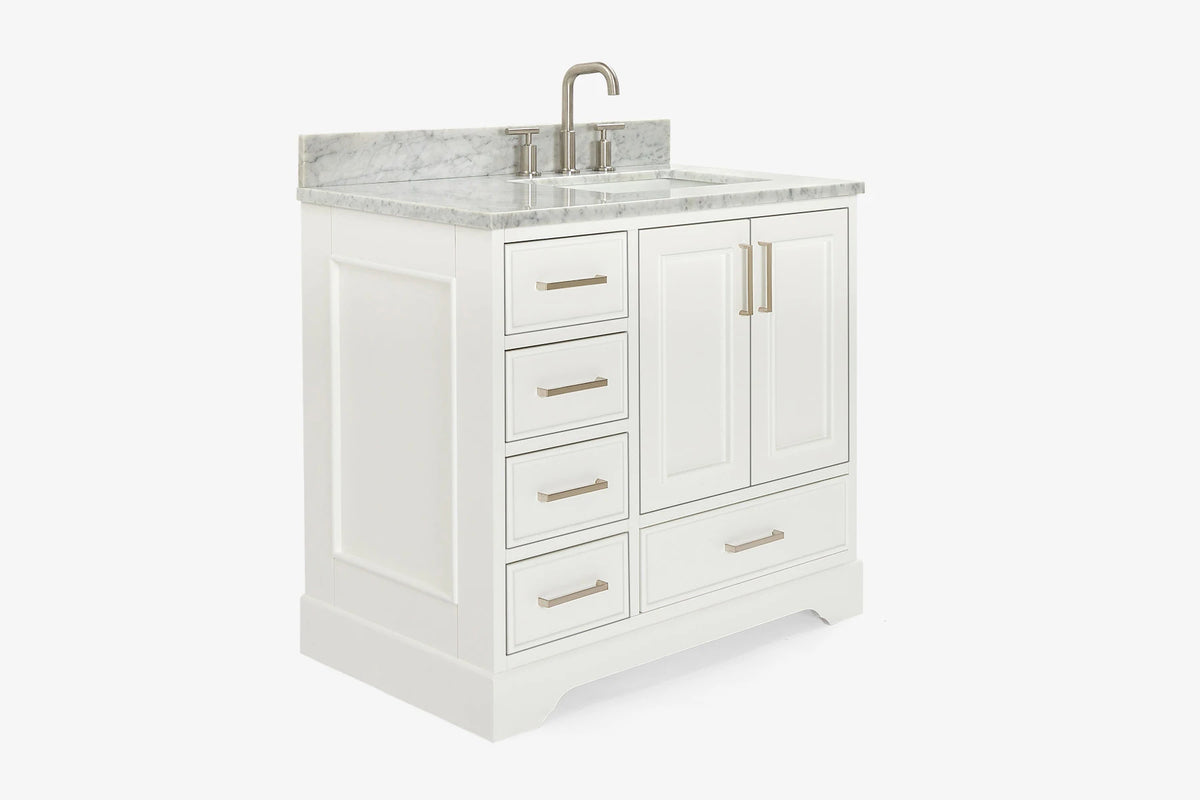 Skip to the beginning of the images gallery Ariel stafford 37 inch single right offset rectangle sink vanity with carrara white marble countertop w/0.75" edge in white