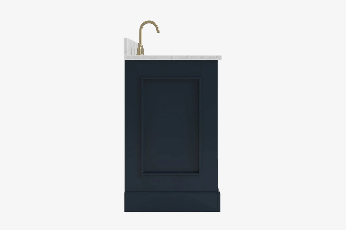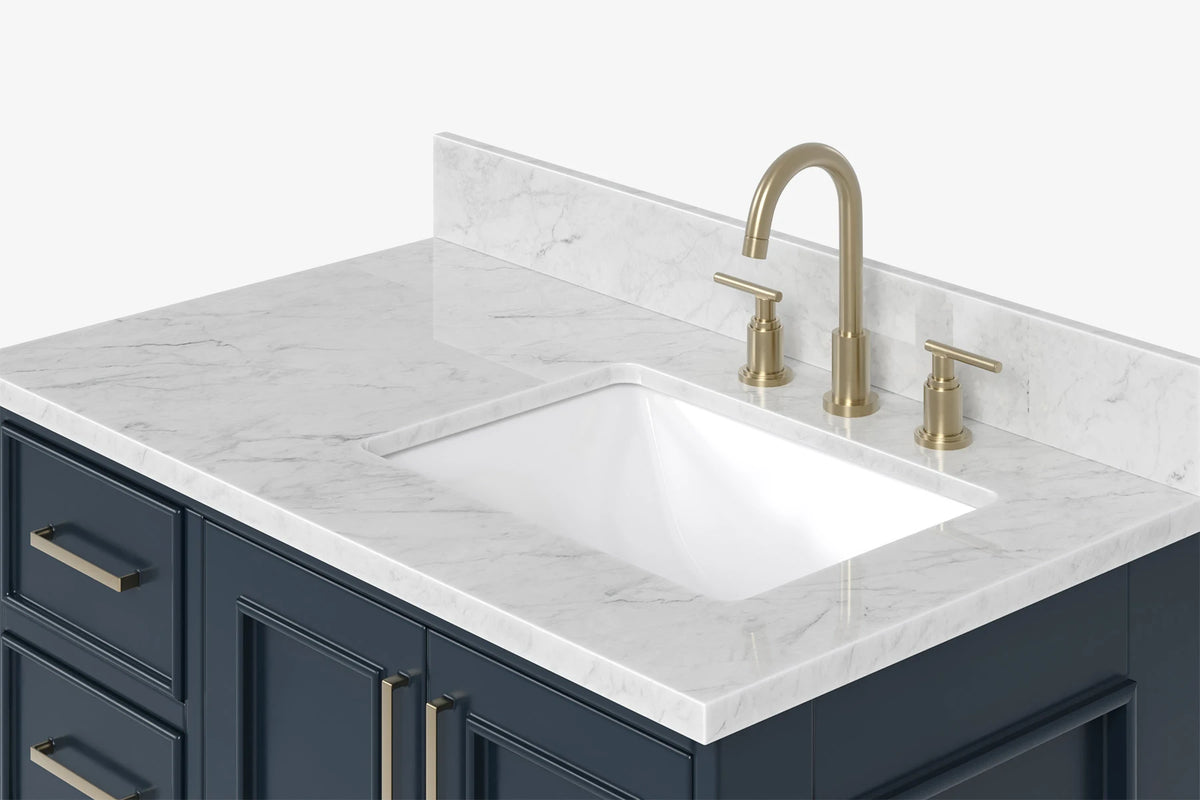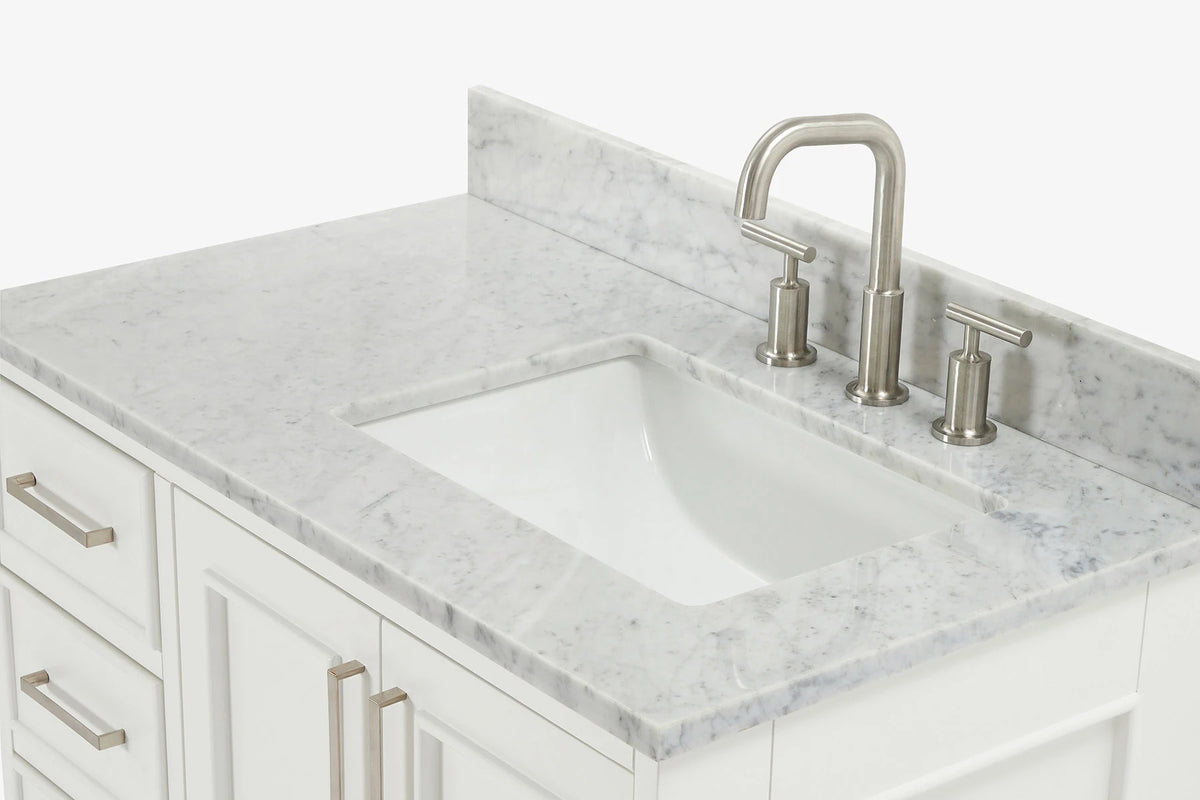 - Italian Carrara White Marble countertop with 0.75" thick miter edge. 4" backsplash included